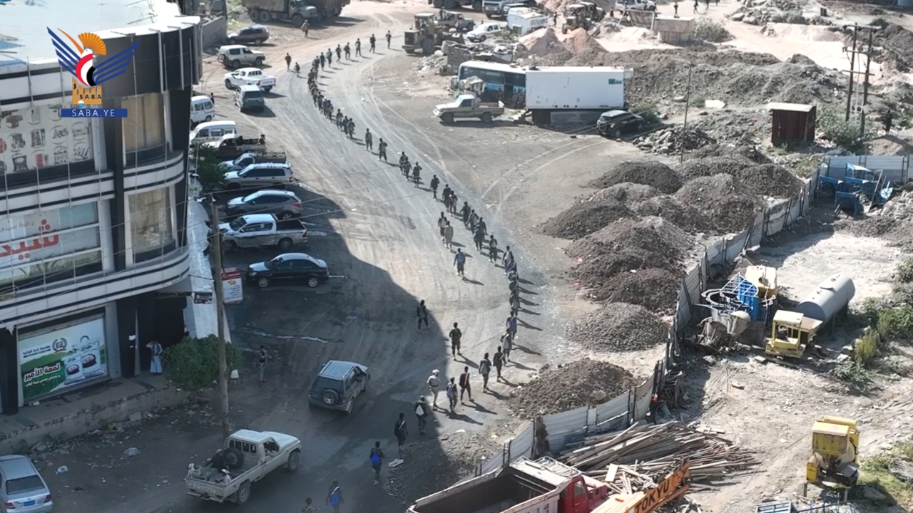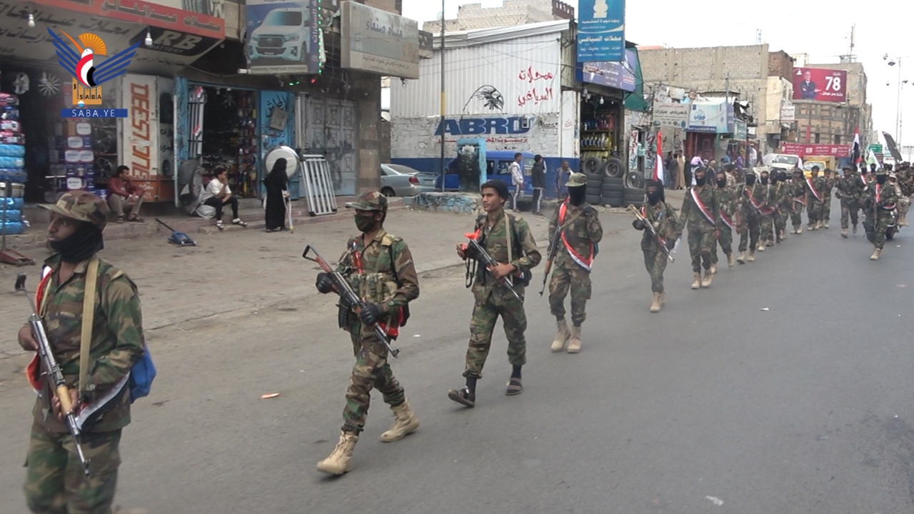 وجاب المسير الذي شارك فيه الفين و 800 فرد من هذه القوات والوحدات منطقة صرف إلى شارع فلسطين إلى الروضة وإلى جولة آية ثم شارع النصر مروراً بشيرتون وموفمبيك إلى نقم ثم شارع خولان إلى السبعين وضريح الرئيس الشهيد الصماد.