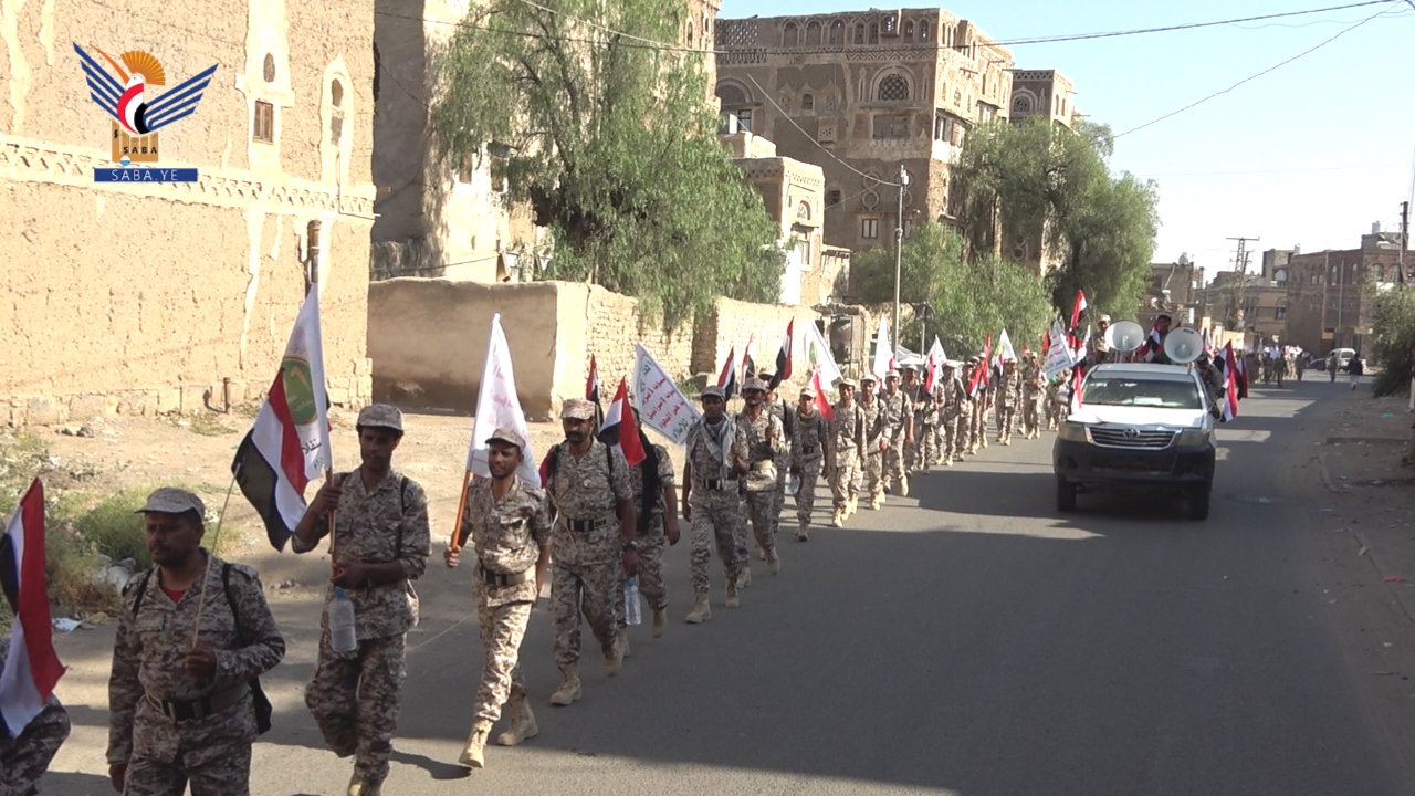 وجدد المشاركون في المسير تأييدهم وتفويضهم المطلق لقرارات قائد الثورة السيد عبدالملك بدر الدين الحوثي، في مواجهة قوى الاجرام والشر العالمي وعلى رأسهم أمريكا وإسرائيل وبريطانياً، ونصرة أبناء غزة والشعب الفلسطيني المظلوم.