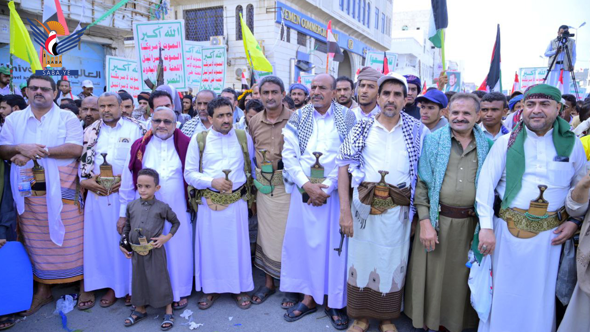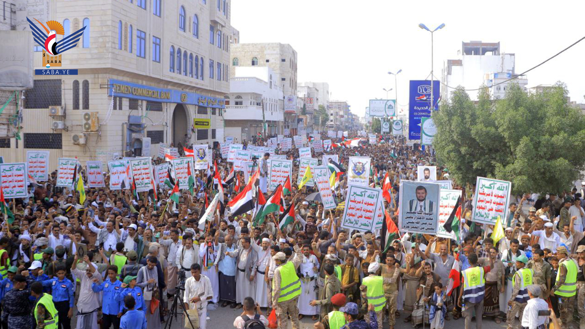وحذرت المسيرات الجماهيرية من مغبة السلوك الإجرامي البربري الذي يمارسه الكيان الصهيوني لما له من تداعيات خطيرة وكارثية على الأمن والسلم الإقليمي والدولي.. داعية دول وشعوب المنطقة والعالم إلى اتخاذ مواقف جادة وصريحة ورادعة أمام الصلف الصهيوني الذي لن يسلم من شره أحد.