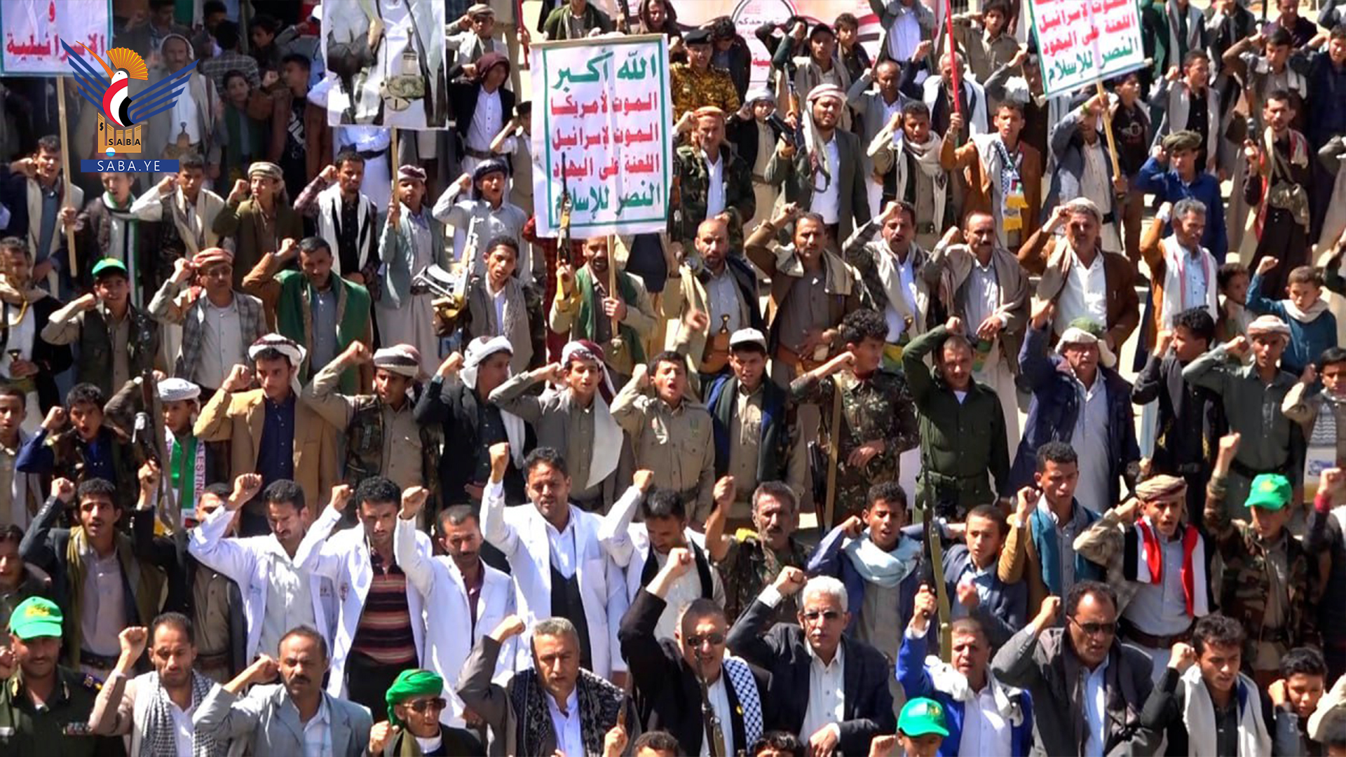 وندد بيان صادر عن المسيرات باستمرار الجرائم الوحشية التي يرتكبها كيان العدو الصهيوني بحق الأشقاء في غزة بالقتل والتدمير والتجويع والإبادة الجماعية والتهجير للشهر الـ 12 على التوالي والتي امتدت إلى الضفة الغربية، وإلى لبنان مؤخراً بمشاركة ودعم أمريكي وبريطاني وغربي لا محدود، وتخاذل عربي غير مسبوق، وصمت عالمي مخزي ومهين.