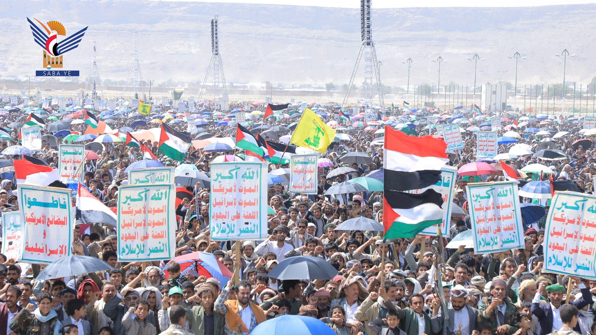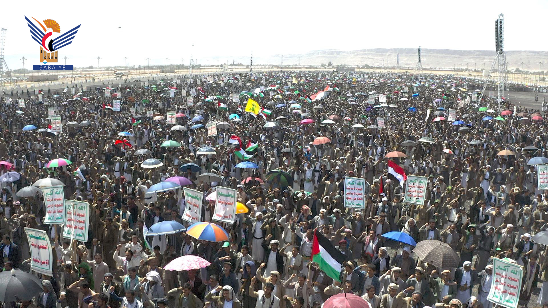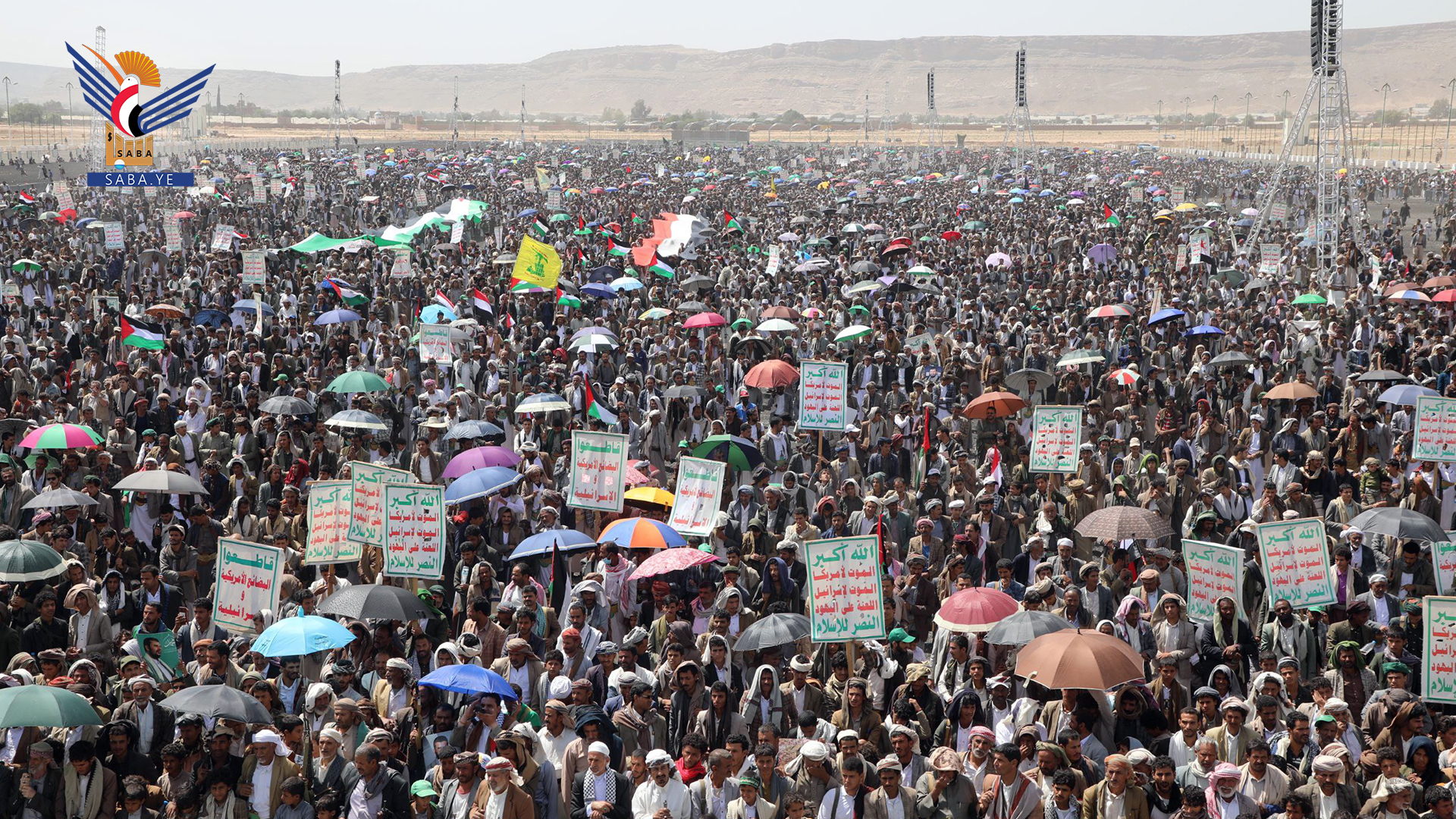 وفي المسيرات الجماهيرية بساحة المولد النبوي الشريف بمركز المحافظة وساحات الشهيد القائد بخولان عامر ومديريات غمر وقطابر وآل سالم ومنبه وشداء وكتاف والحشوة وباقم، وعرو وجمعة بني بحر، والعين والقهرة في الظاهر، وشعار والحجلة وبني صياح في رازح، وربوع الحدود ومدينة جاوي وبني عباد في مجز، وفي ذويب بحيدان وفي حنبة وآل ثابت بمديرية قطابر، أكد المشاركون ثباتهم على الموقف المساند والمناصر للشعبين الفلسطيني واللبناني.