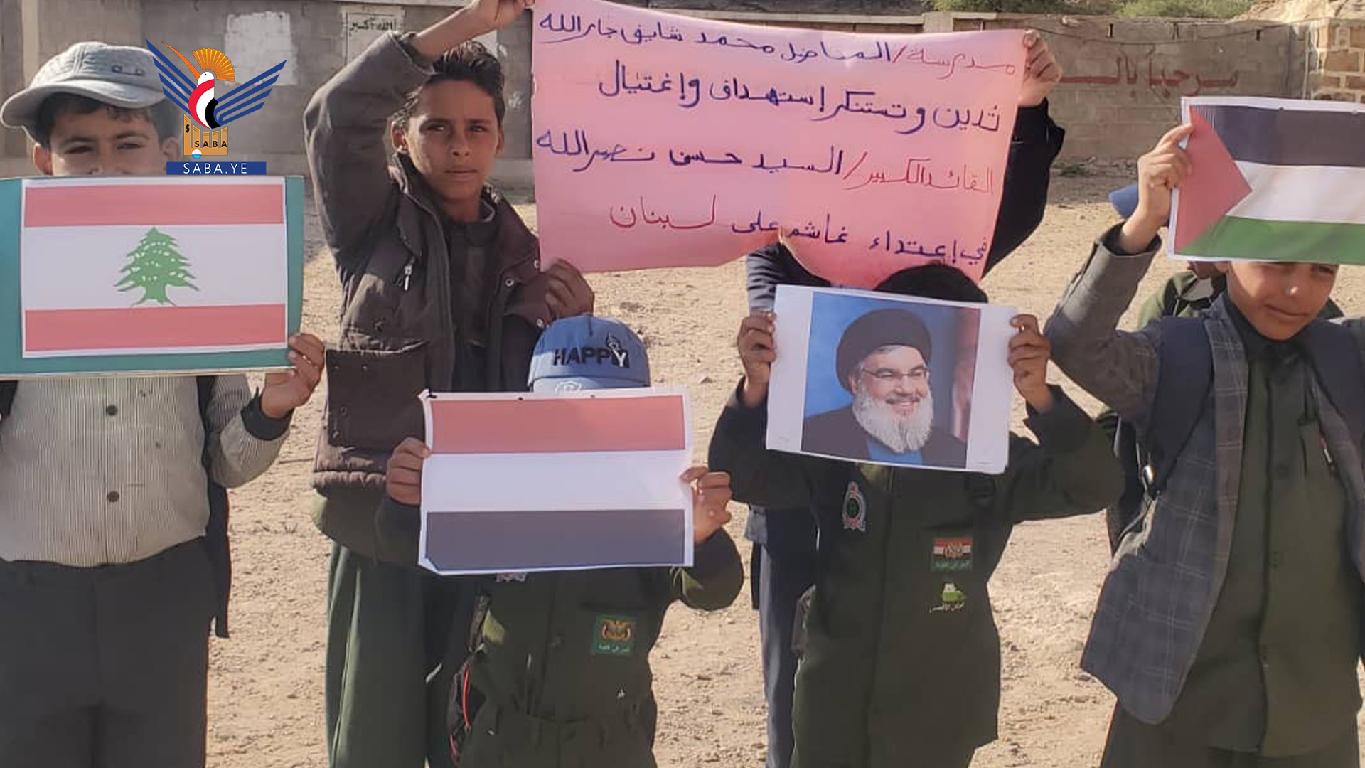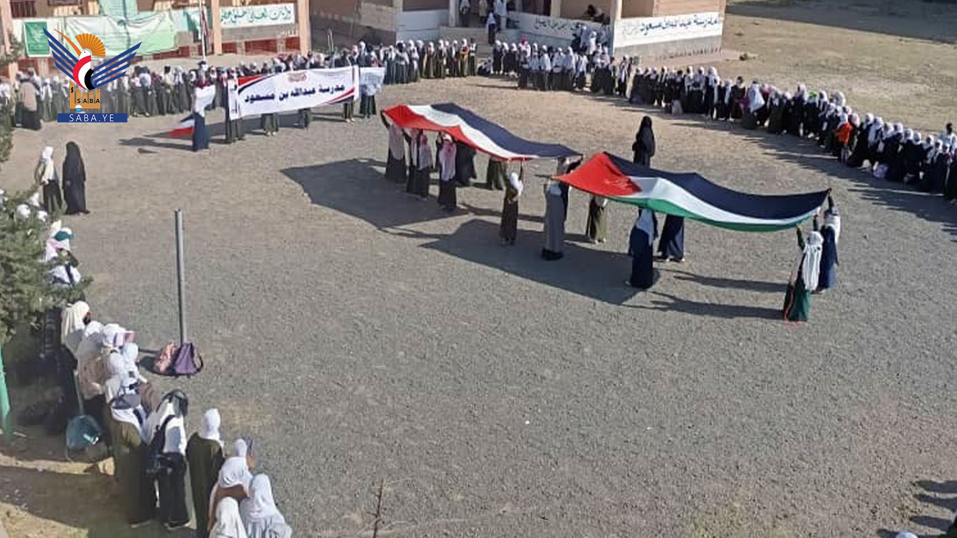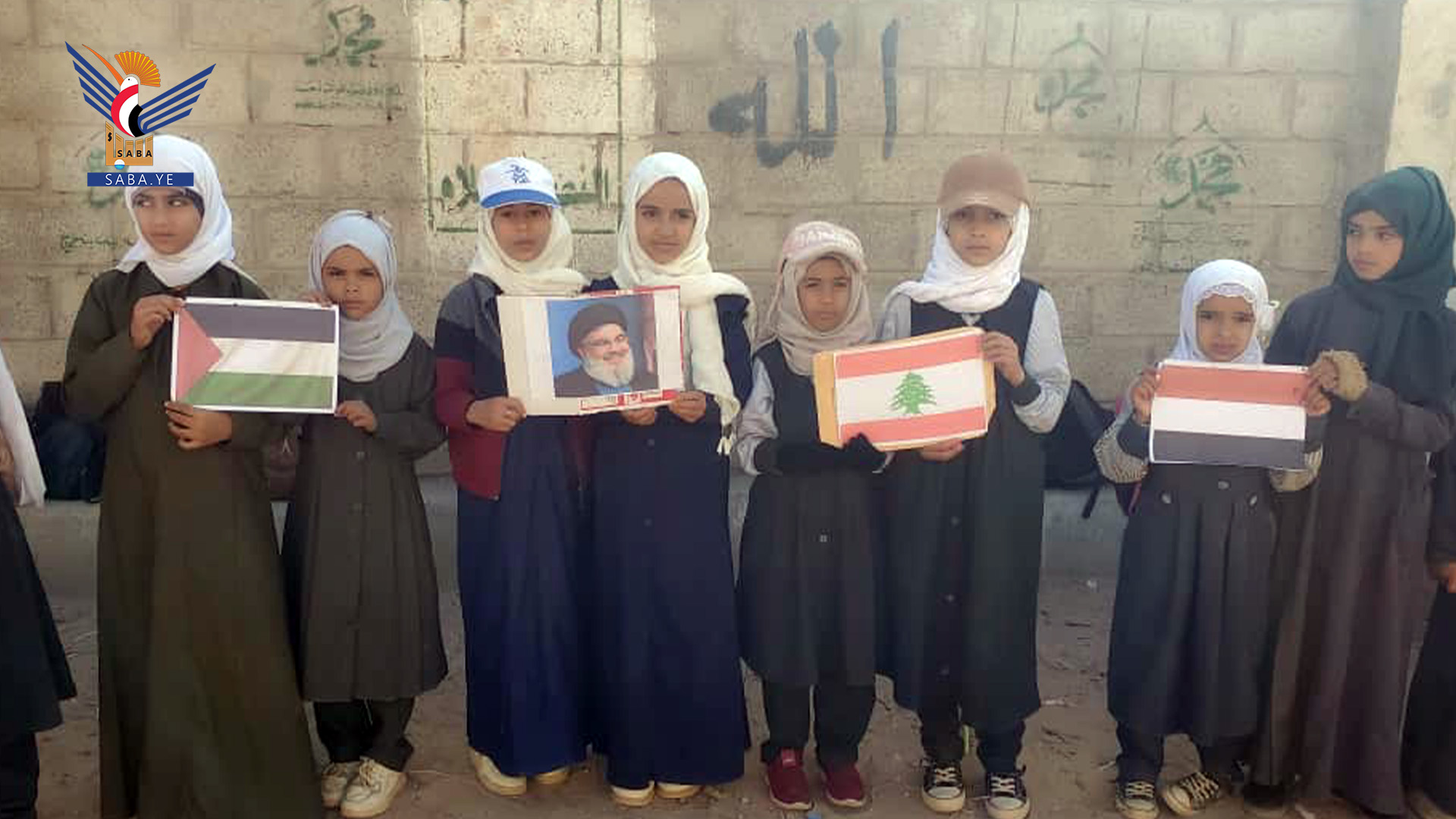 وردد المشاركون في الوقفات التي أقيمت بمدارس مديريات جحانة والطيال والحصن وخولان وبني ضبيان، وصنعاء الجديدة وسنحان وبني بهلول وبلاد الروس وبني مطر والحيمتين الداخلية والخارجية ومناخة وصعفان، وأرحب ونهم وهمدان وبني حشيش، الهتافات المؤكدة على دعم الشعب الفلسطيني ومقاومته الباسلة، والتضامن مع الشعب اللبناني الشقيق في مواجهة العدوان الصهيوني المجرم.