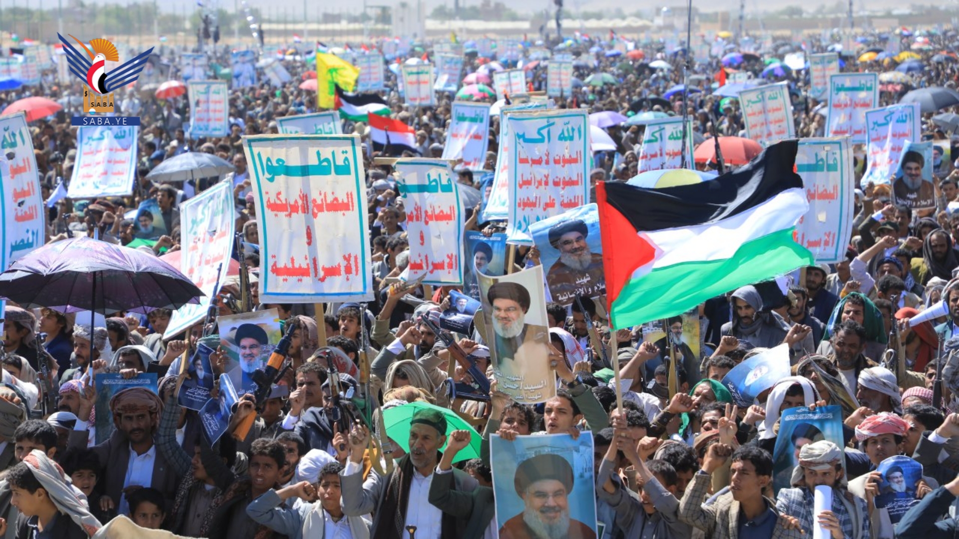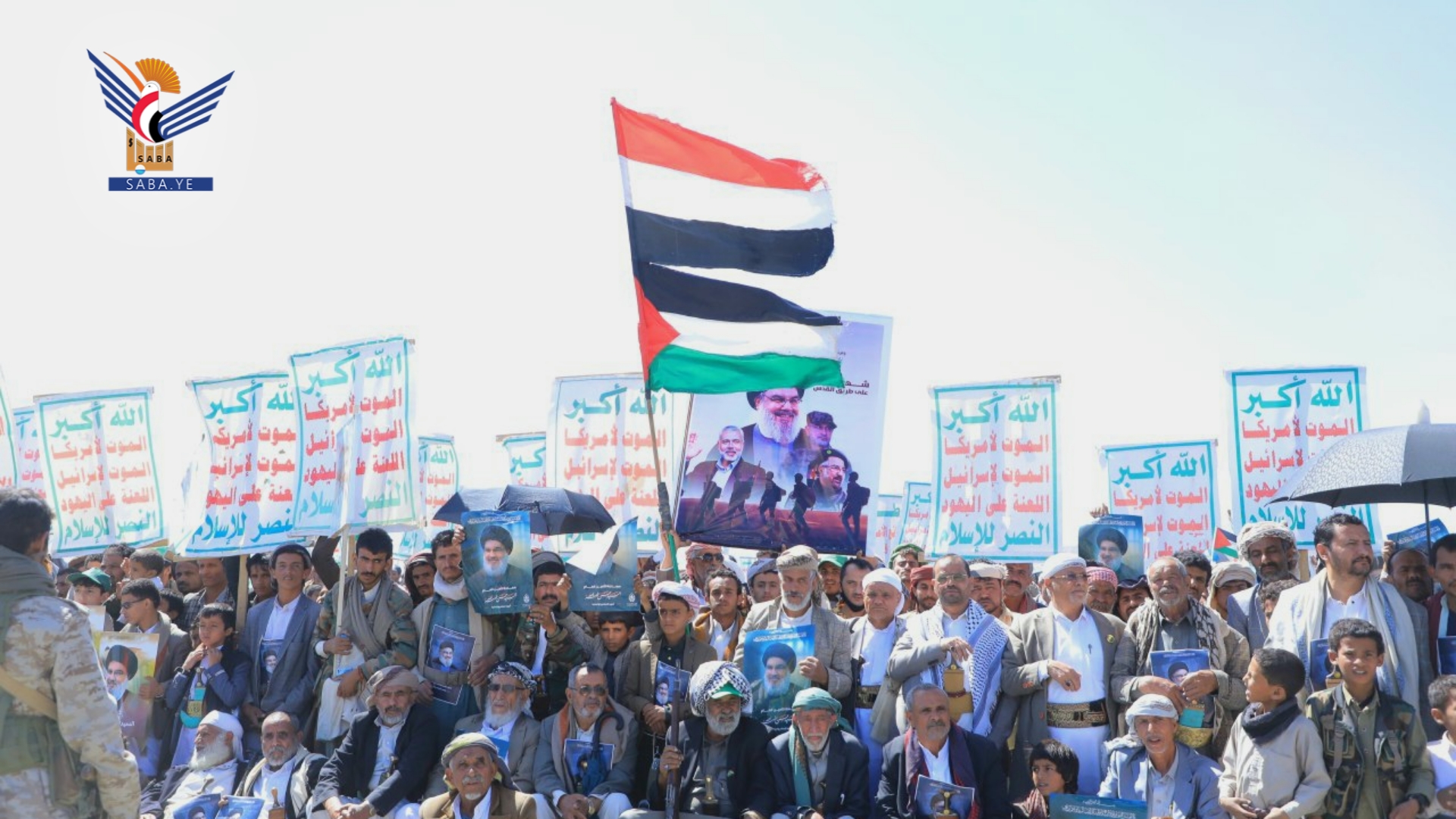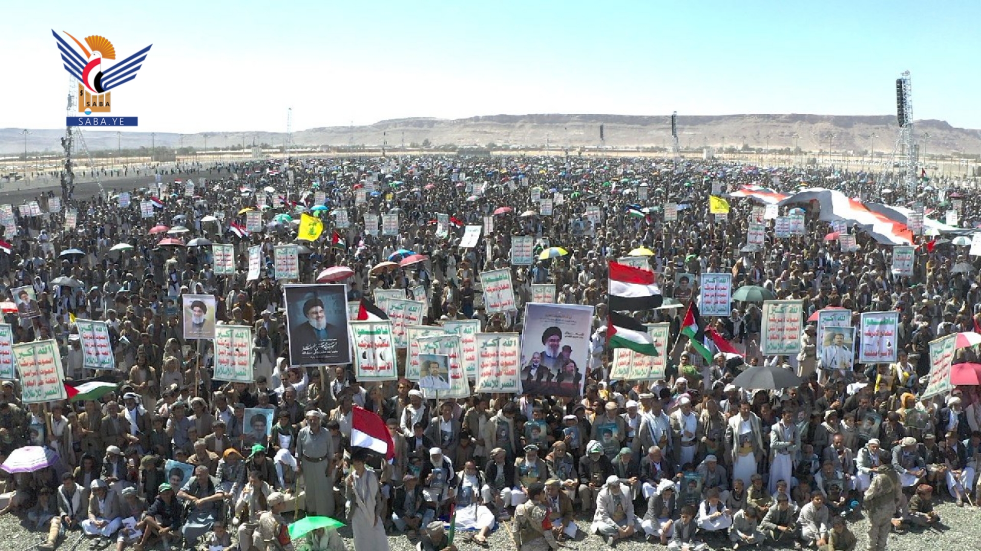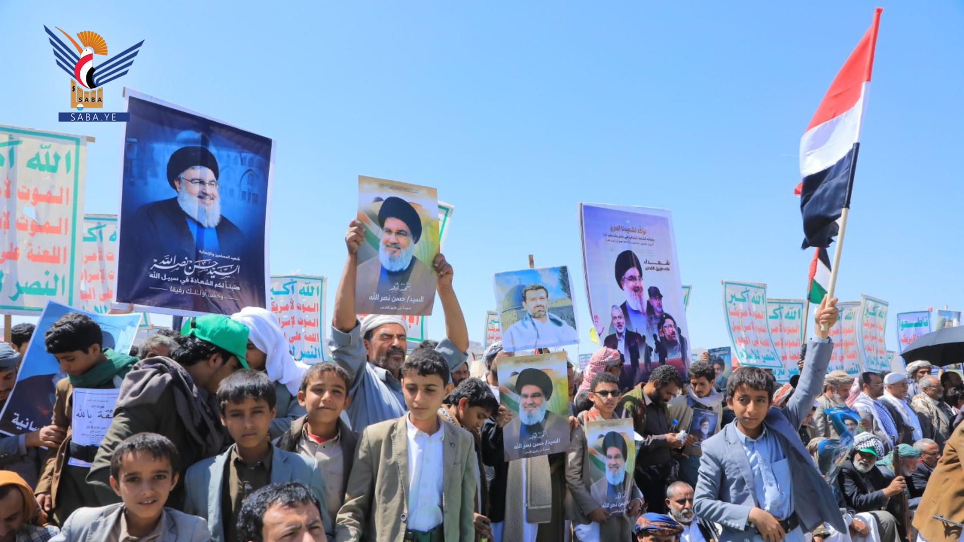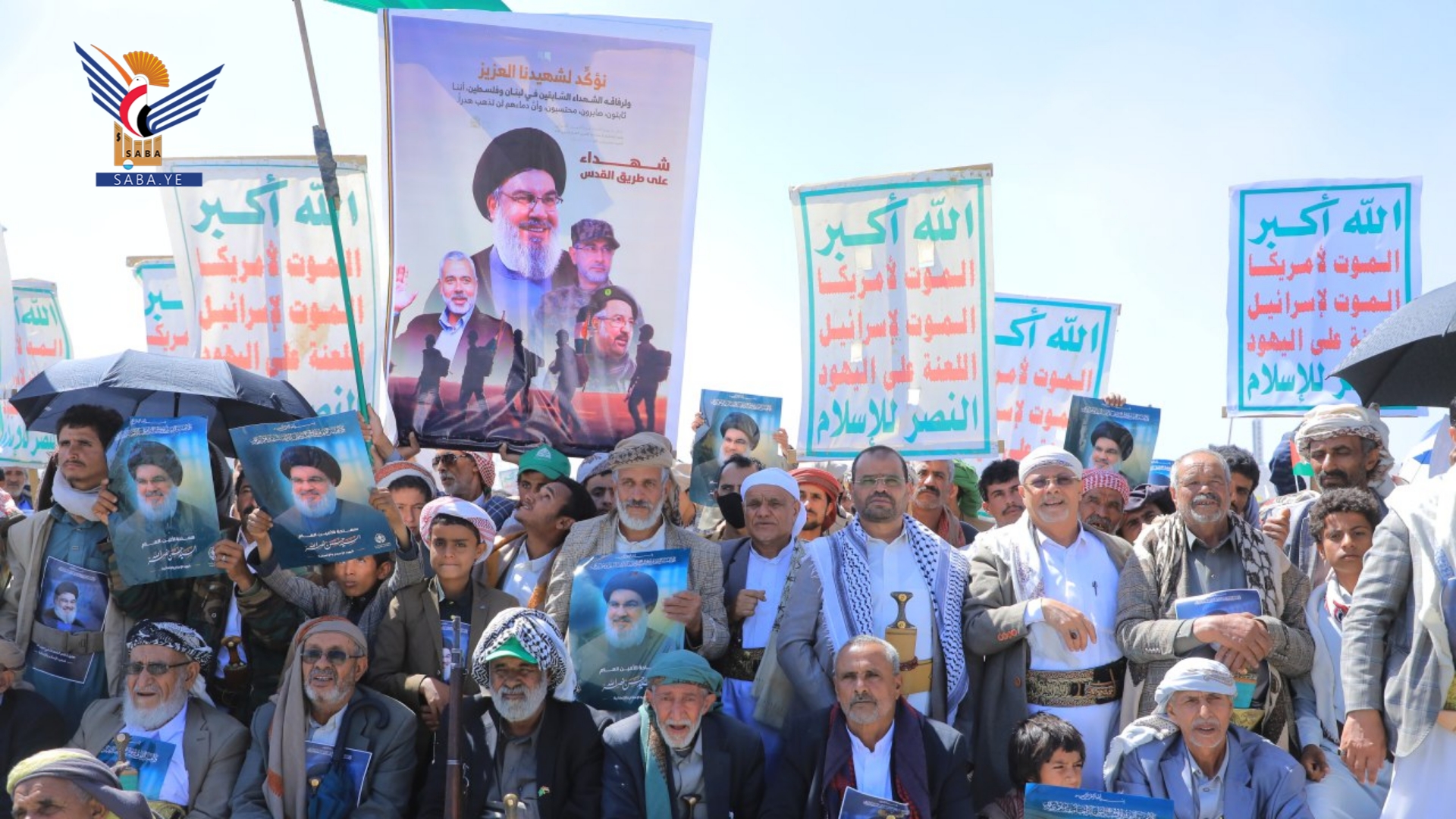 وفي المسيرات الجماهيرية، بساحة المولد النبوي الشريف بمركز المحافظة وساحات الشهيد القائد في خولان عامر ومديريات غمر وقطابر وآل سالم ومنبه وشداء وكتاف والحشوة وباقم، وساحتي عرو وجمعة بني بحر، والعين والقهرة في الظاهر، وشعار والحجلة وبني صياح في رازح، وربوع الحدود ومدينة جاوي وبني عباد في مجز، وفي ذويب بحيدان وفي حنبة وآل ثابت في مديرية قطابر، أكد المشاركون الوفاء لشهيد الإسلام والإنسانية السيد حسن نصر الله - رضوان الله عليه.