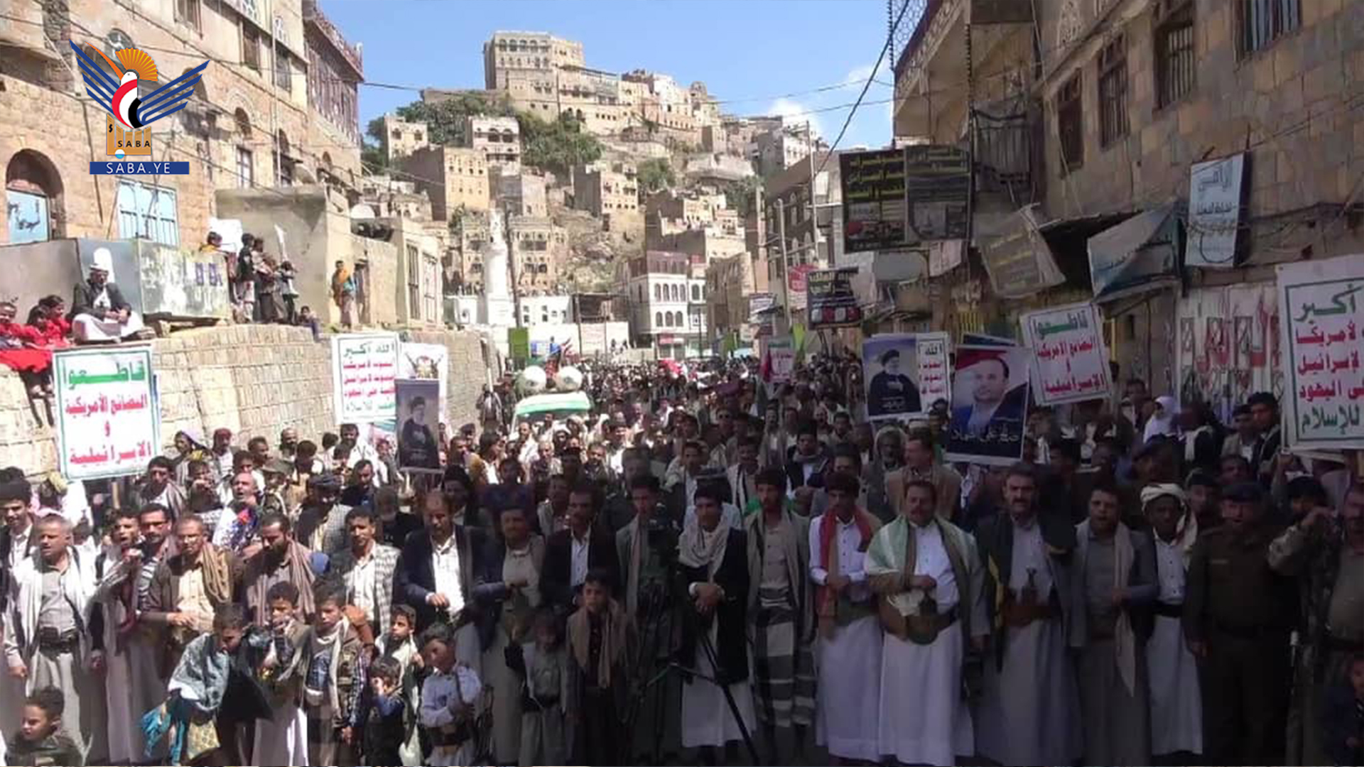 المحويت 38 مسيرة ووقفة حاشدة تحت شعار "مع غزة ولبنان.. صف واحد كالبنيان"