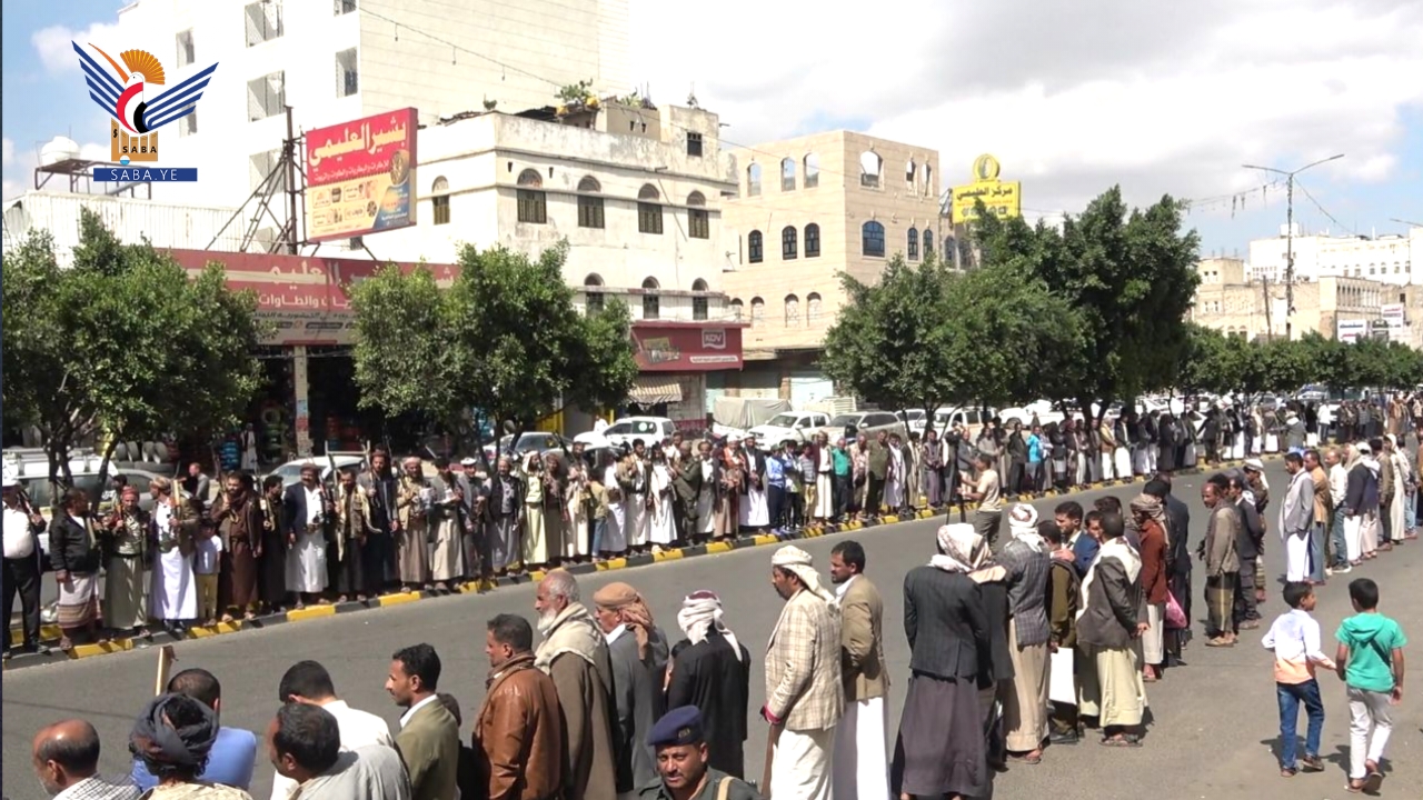 نظمت التعبئة العامة بمديرية الصافية في أمانة العاصمة اليوم، وقفة مسلحة حاشدة لأبناء حي أوسان، اسناداً ودعماً للشعبين الفلسطيني واللبناني تحت شعار "لستم وحدكم".