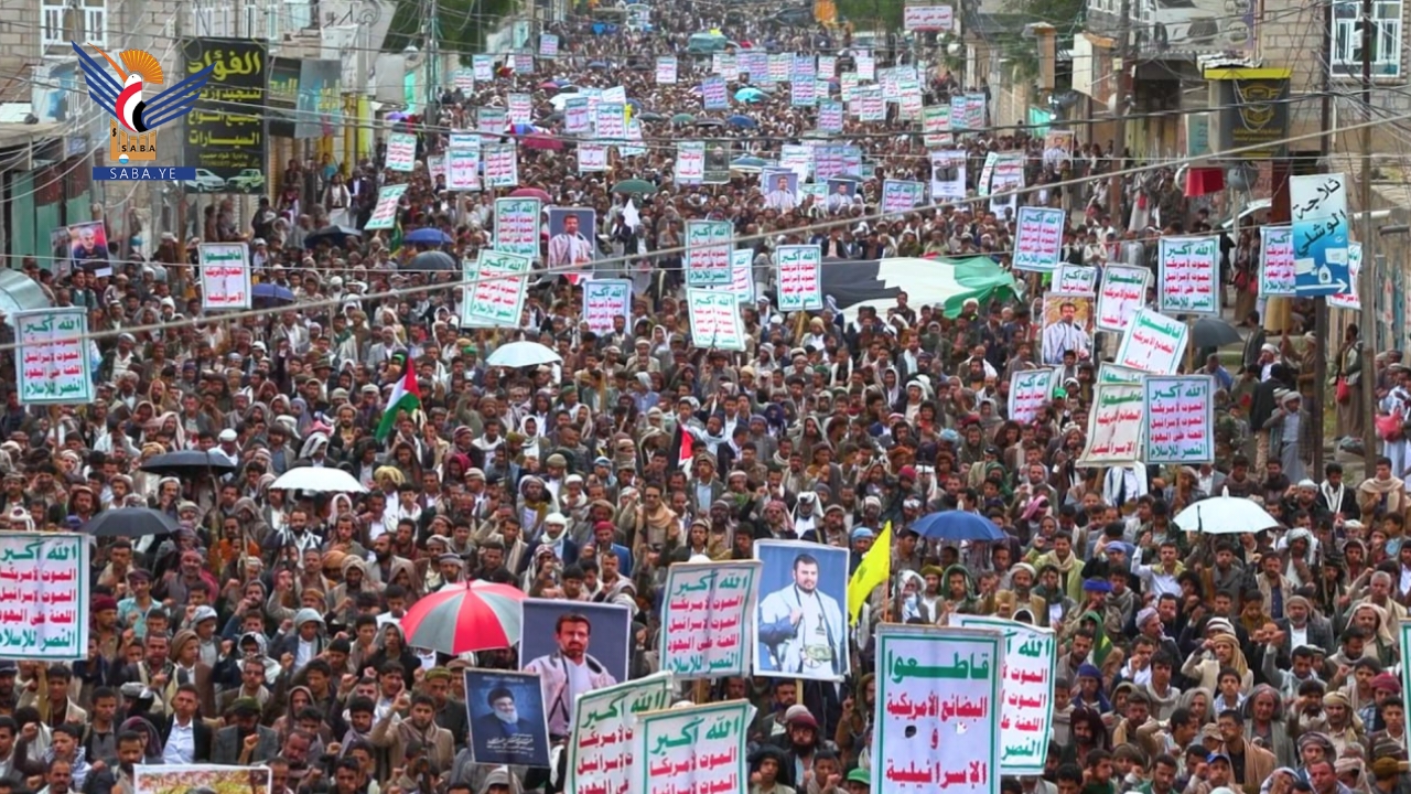 شهدت محافظة ذمار اليوم، 16 مسيرة جماهيرية حاشدة تحت شعار "وفاء للشهداء القادة.. مع غزة ولبنان حتى النصر".