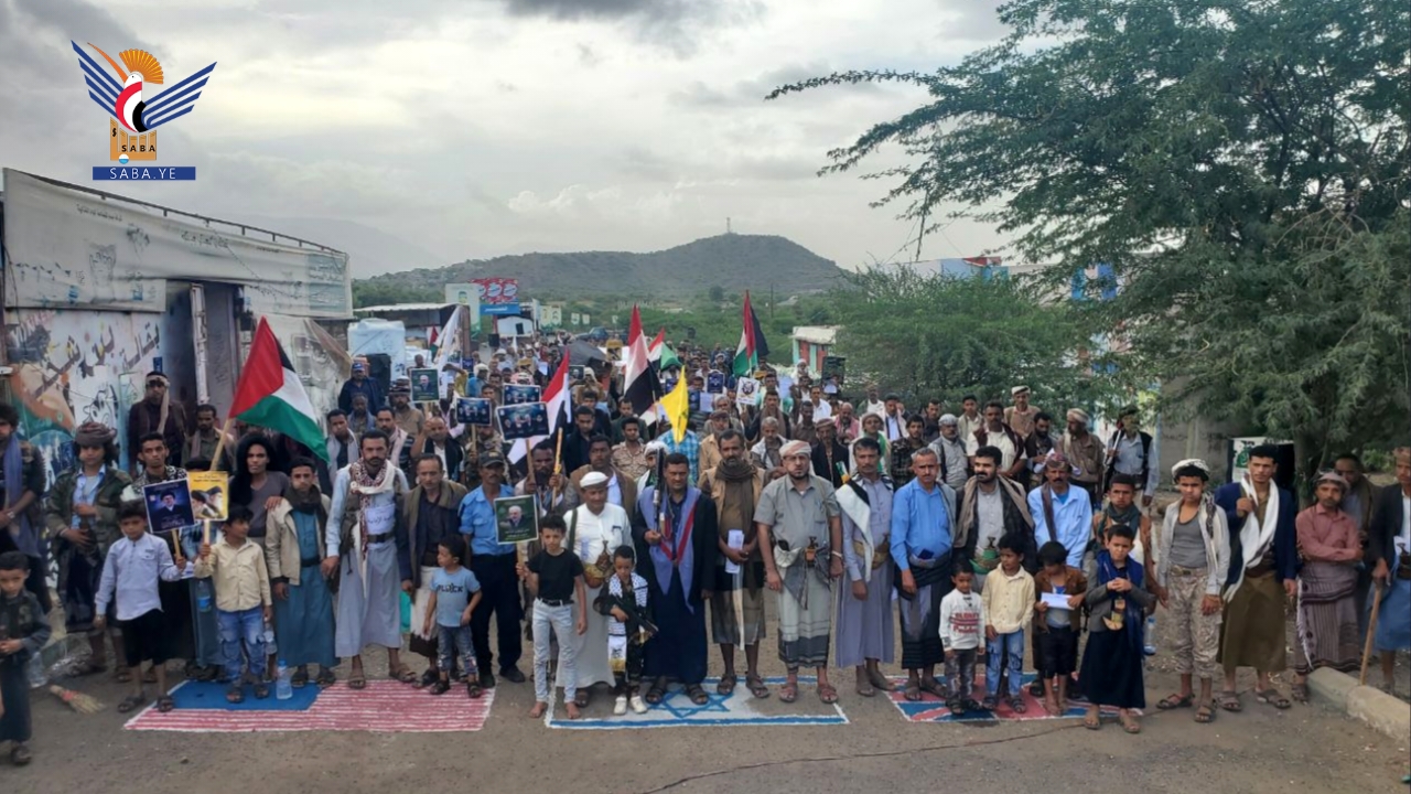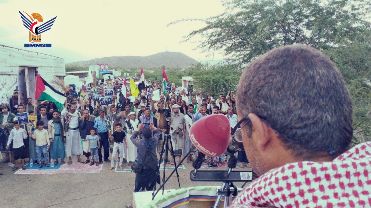 وفي المسيرة التي أقيمت في جولة الشهيد الصماد بحضور وكيل المحافظة فيصل الفقيه ومسؤول التعبئة جميل الصوفي ومدير أمن المحافظة محمد العطري ومدير المديرية وحيد الخضر، وقيادات عسكرية وأمنية وشخصيات اجتماعية، ندد المشاركون بالإجرام الإسرائيلي وجريمة الإبادة الجماعية التي يرتكبها بحق الفلسطينيين في قطاع غزة للأسبوع الخامس والخمسين برعاية ومشاركة أمريكية كاملة ودعم ومساندة من الأنظمة الغربية المتصهينة.