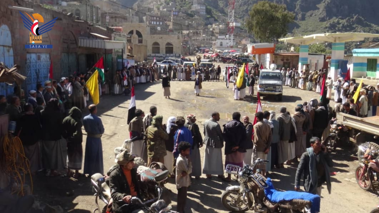 نظم أبناء مديرية مناخة بمحافظة صنعاء، اليوم، وقفة ومسيرة جماهيريتين، نصرة للشعبين الفلسطيني واللبناني تحت شعار "مع غزة ولبنان.. جاهزون لأي تصعيد أمريكي صهيوني".