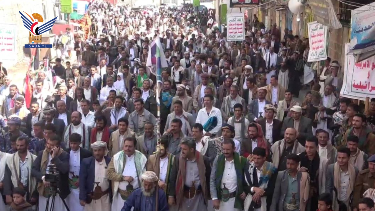 أبناء المحويت يحتشدون في 35 مسيرة تأكيدا على الثبات مع غزة ولبنان