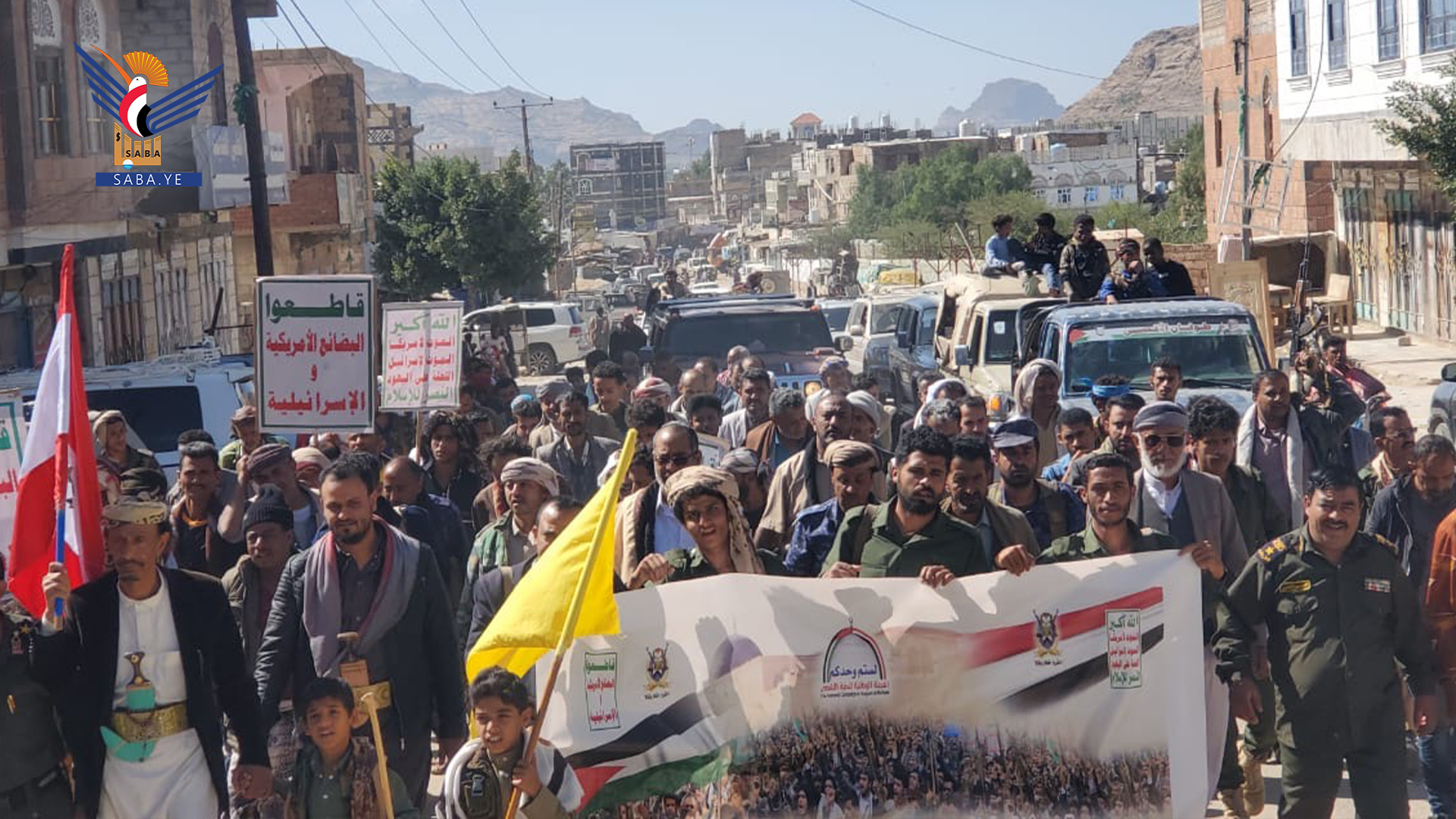 مسيرات ووقفات حاشدة بالضالع إسنادًا للشعبين الفلسطيني واللبناني