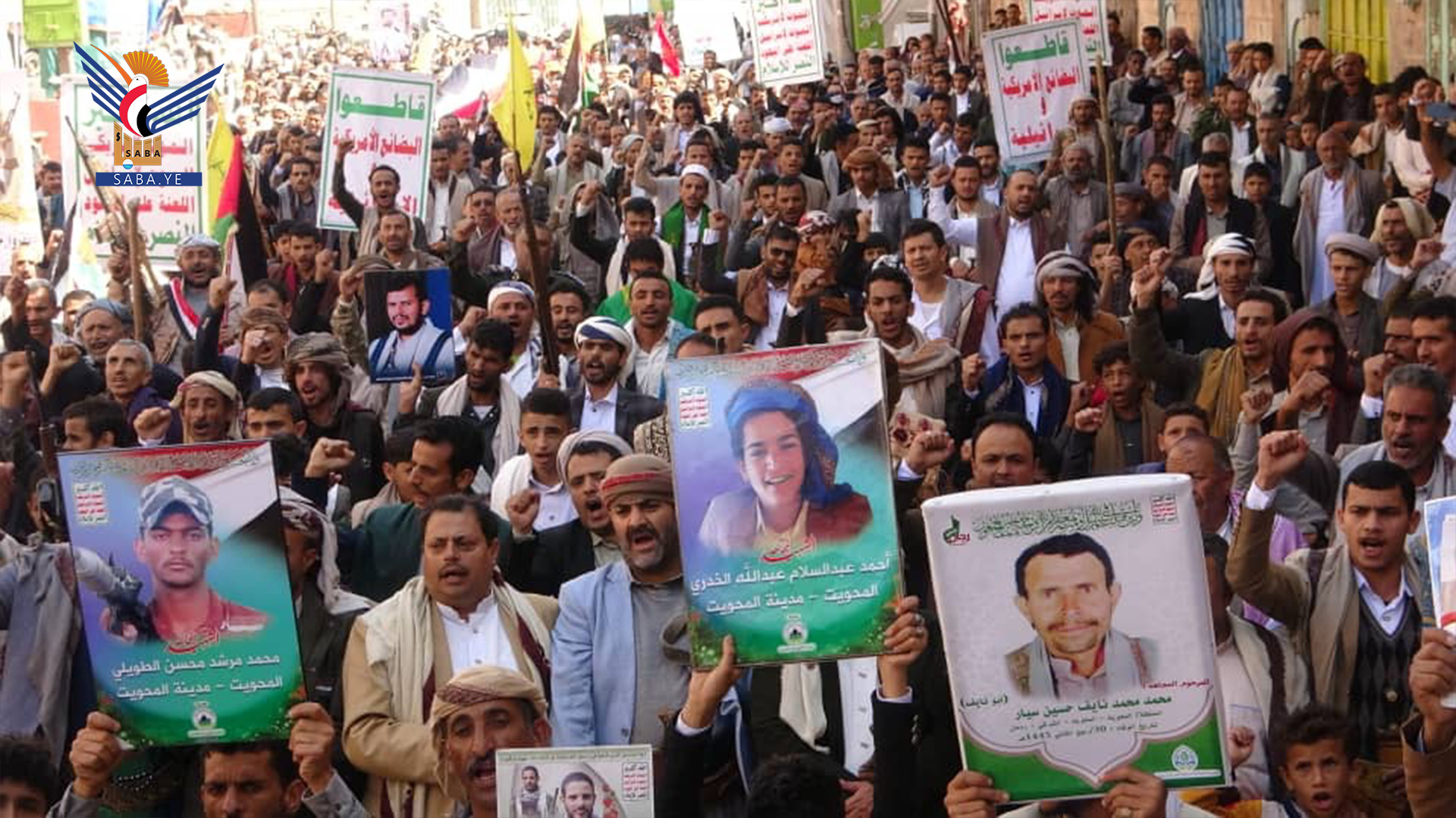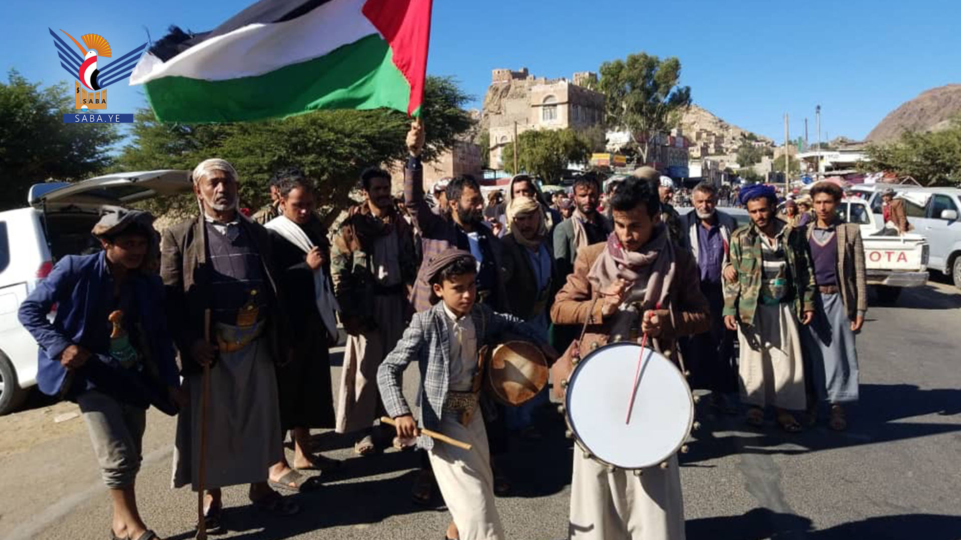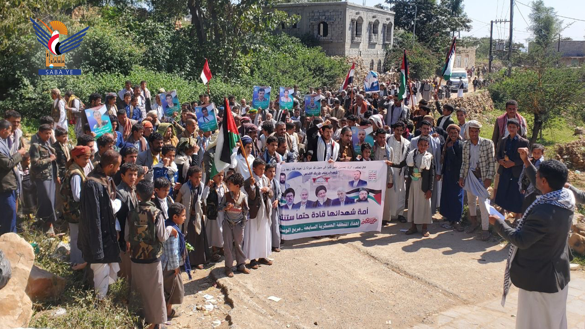 المحويت .. 33 مسيرة ووقفة تحت شعار "مع غزة ولبنان على درب الشهداء حتى النصر"
