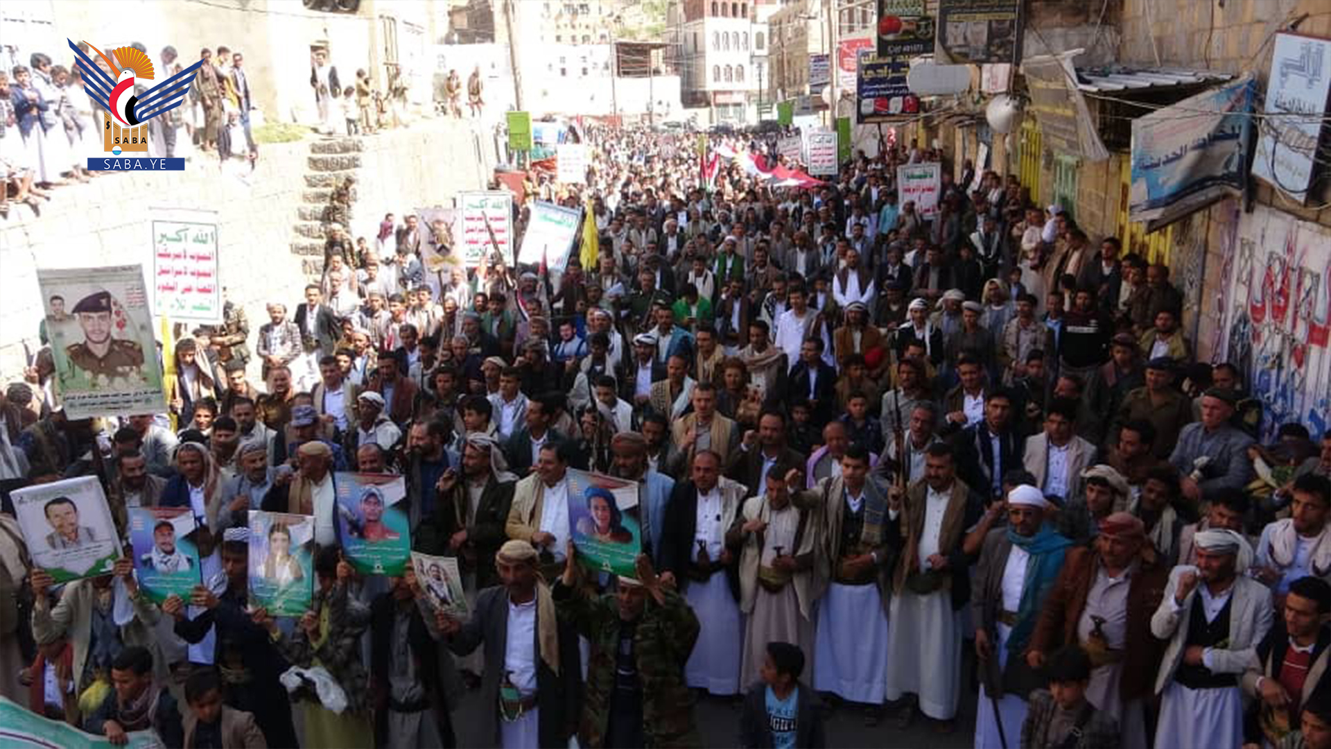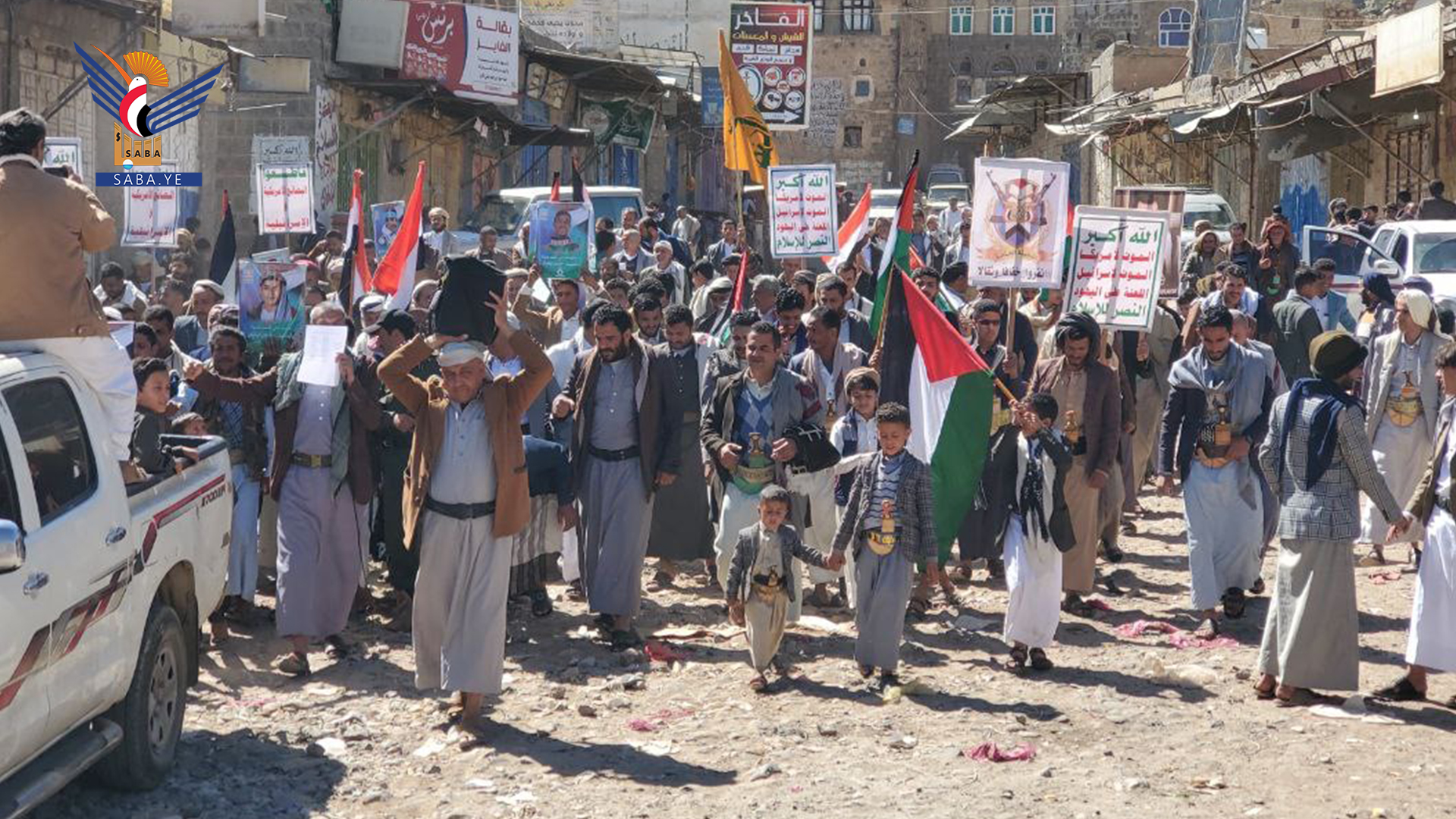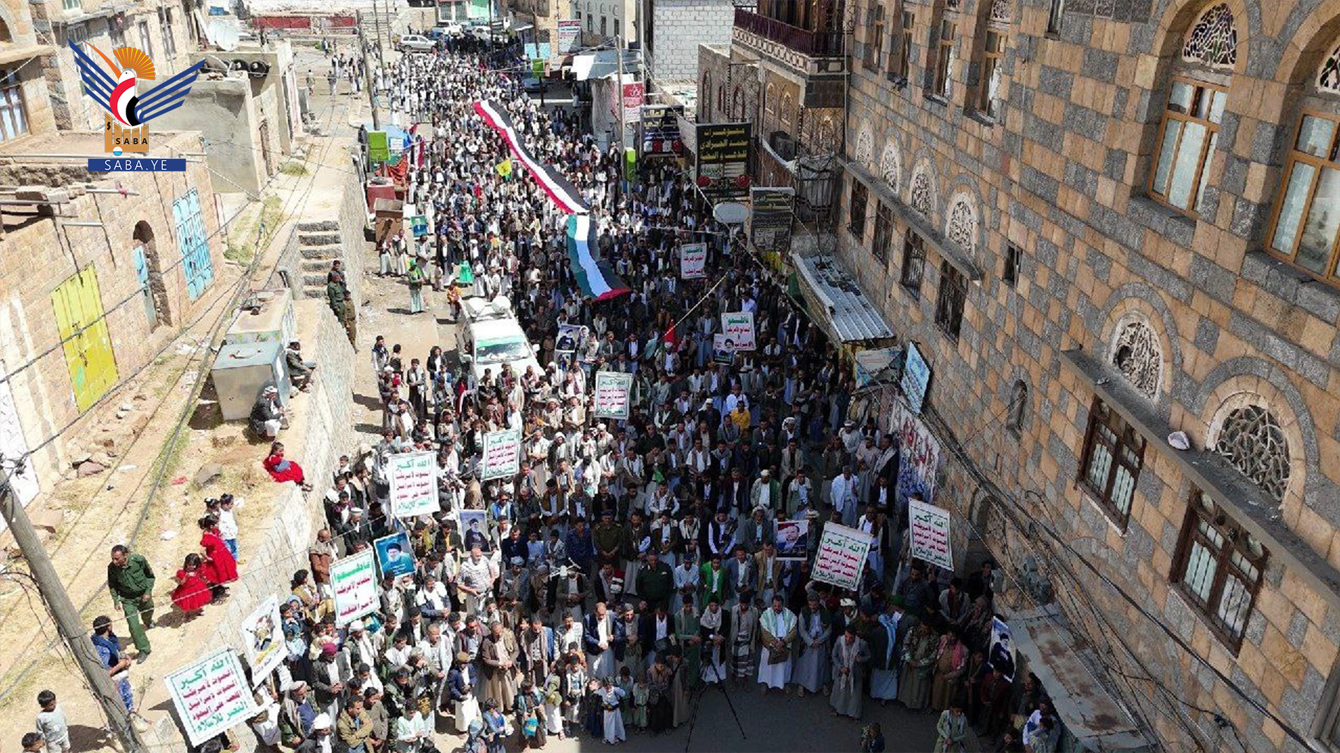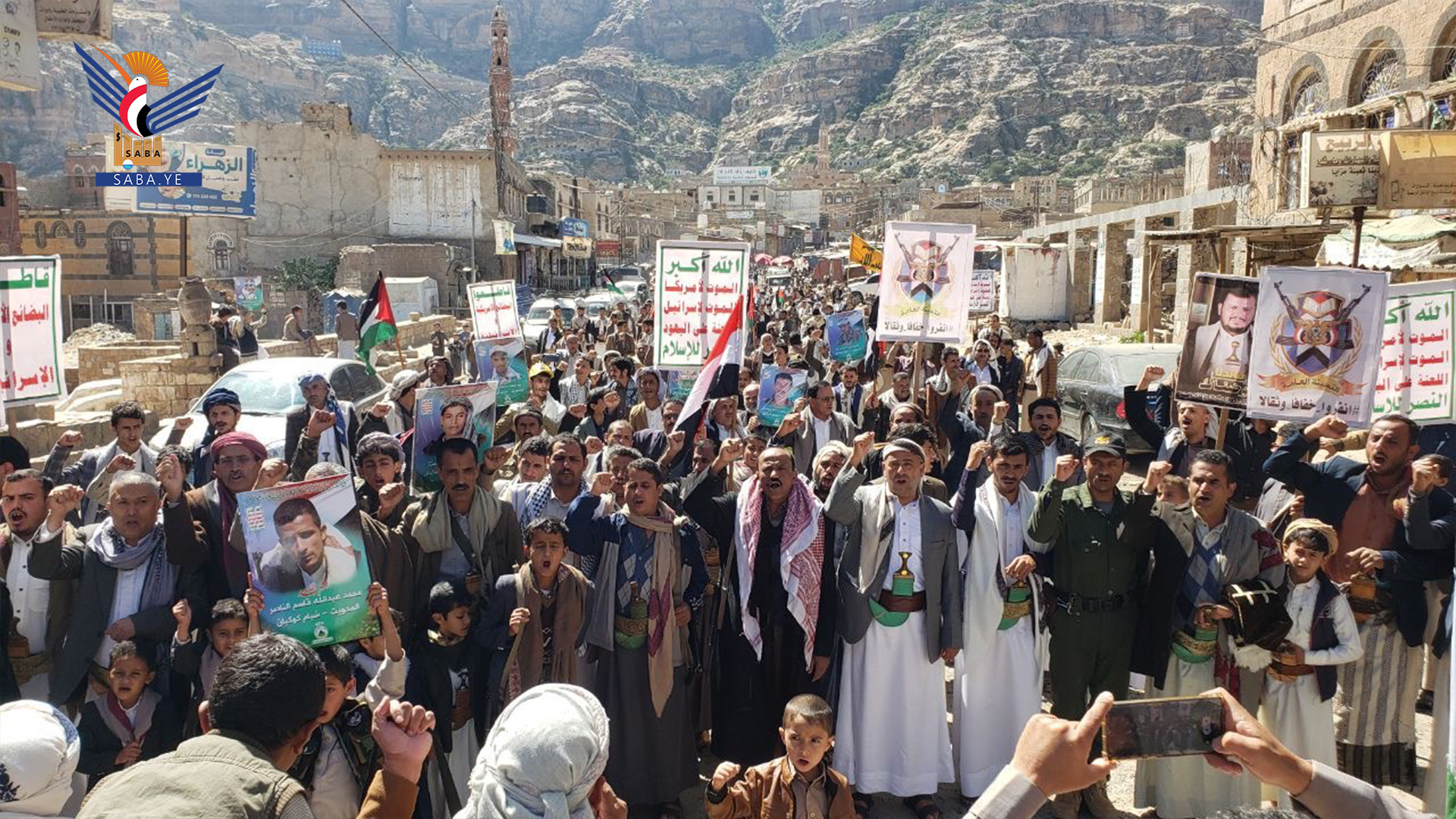 المحويت .. 33 مسيرة ووقفة تحت شعار "مع غزة ولبنان على درب الشهداء حتى النصر"
