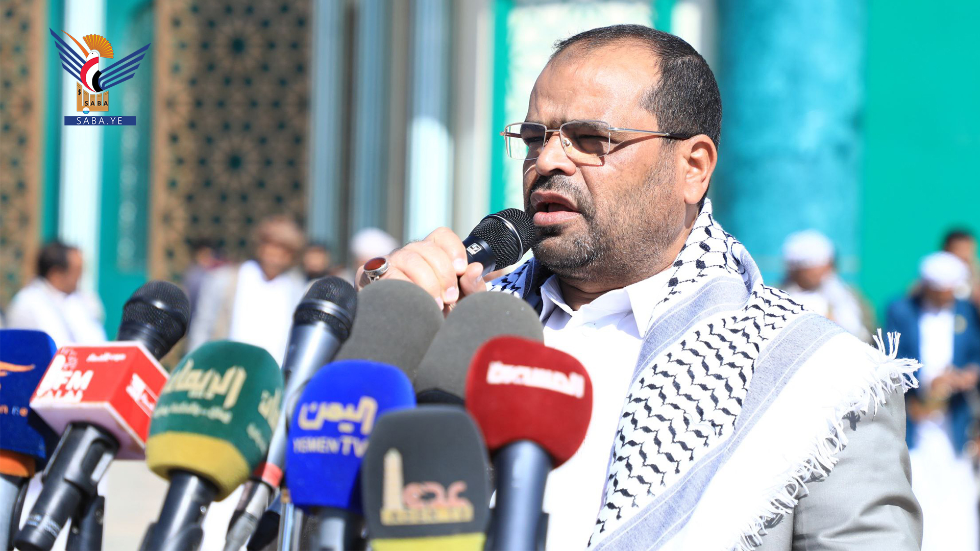 وأشاد محافظ صعدة محمد جابر عوض بالخروج الجماهيري الحاشد والمستمر تلبية لنداء الله واستجابة لدعوة قائد الثورة وتضامناً مع الشعب الفلسطيني المظلوم .