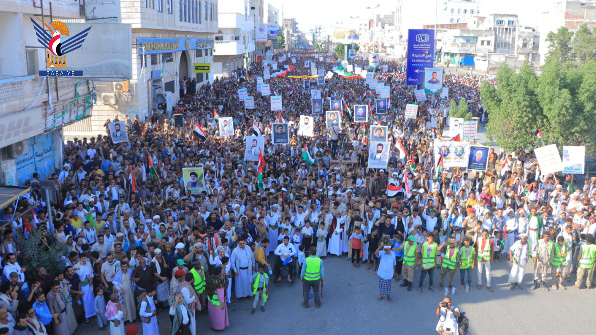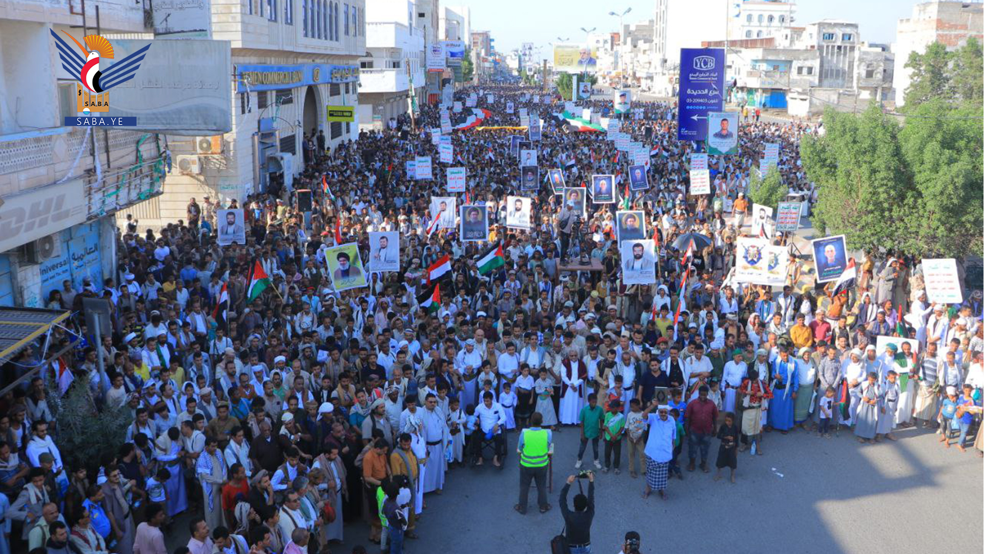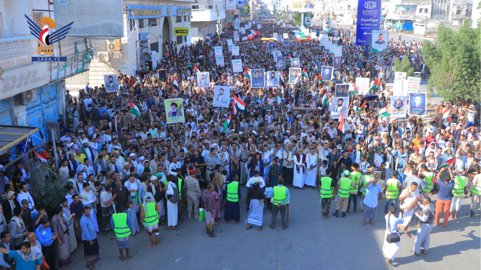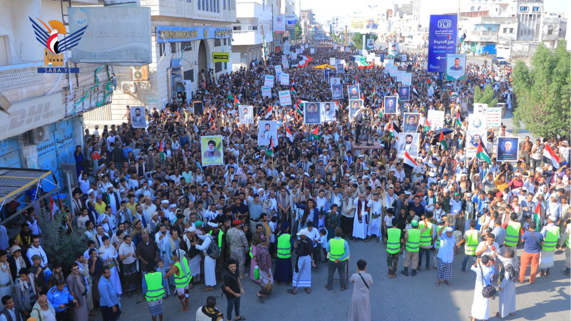 أبناء الحديدة يحتشدون في 101 ساحة بمسيرات "مع غزة ولبنان على درب الشهداء حتى النصر"