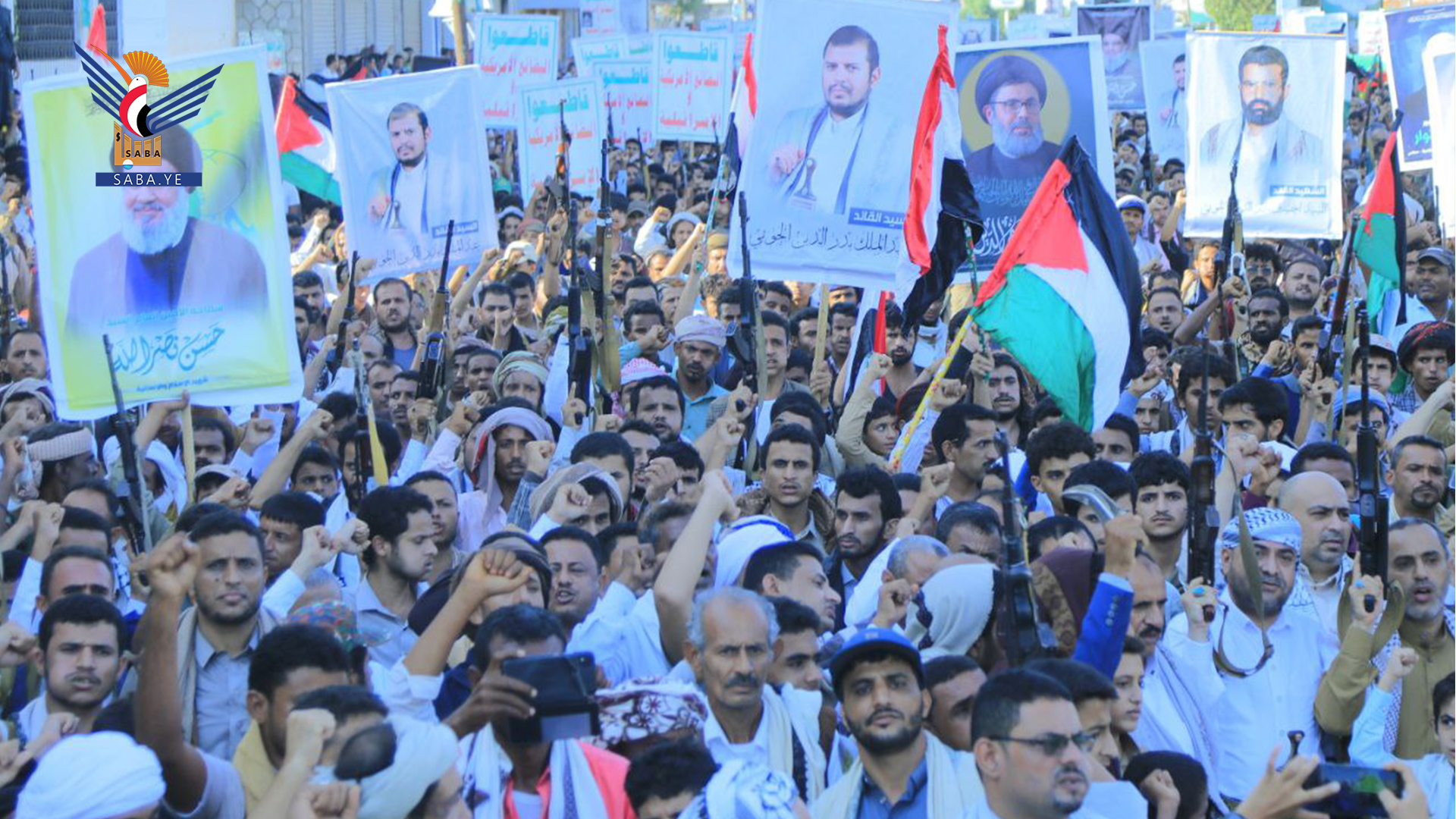 وعبرت الحشود، عن الفخر والاعتزاز بما تنفذه القوات المسلحة اليمنية من عمليات نوعية لنصرة الاشقاء الفلسطينيين، وآخرها استهداف حاملة الطائرات الأمريكية "أبراهام" في البحر العربي، ومدمرتين أمريكيتين في البحر الأحمر.