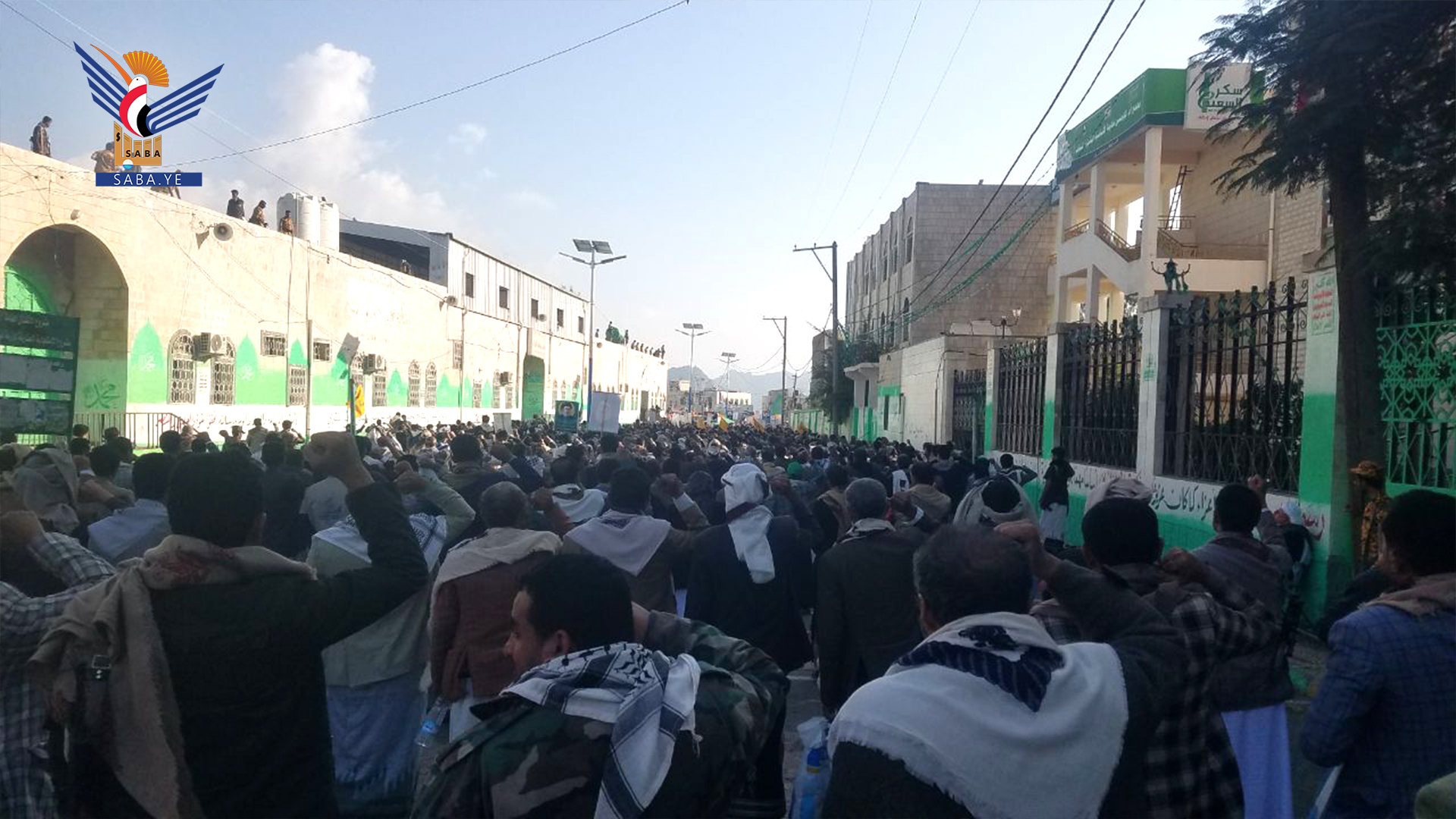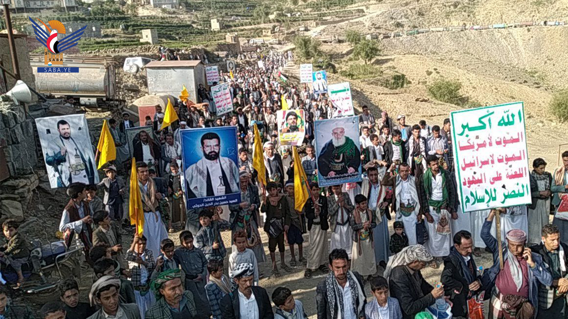 وردد المشاركون في المسيرات والوقفات التي تقدمها بمركز المحافظة والمديريات المحافظ هلال الصوفي وأمين عام المجلس المحلي بالمحافظة إسماعيل المهيم والوكلاء ومنتسبو الأجهزة الإدارية والتعبئة هتافات وشعارات البراءة من أعداء الإسلام وطغاة وجلاوزة العصر.