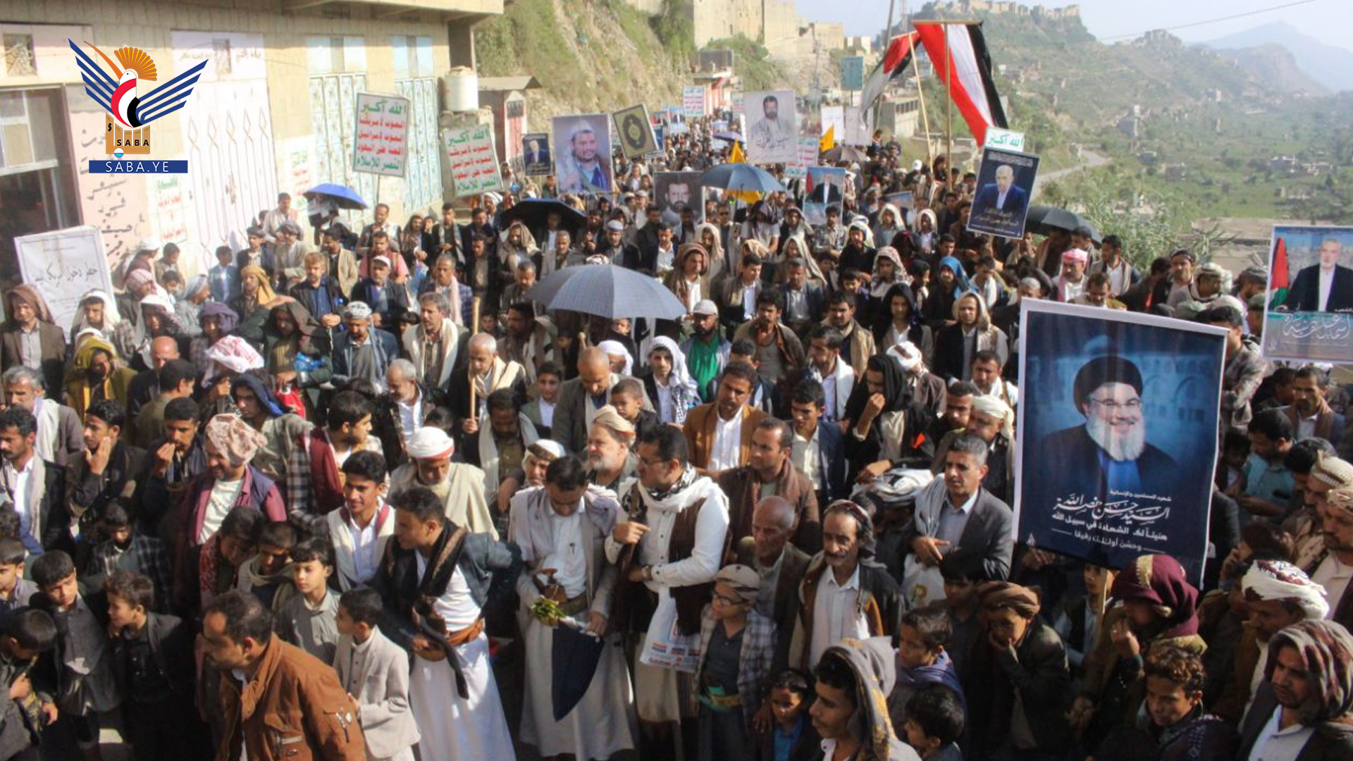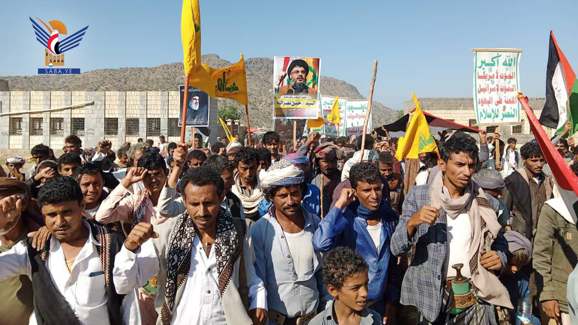 شهدت محافظة حجة اليوم مسيرات كبرى ووقفات تضامنية مع الشعبين الفلسطيني واللبناني تحت شعار "مع غزة ولبنان .. على درب الشهداء حتى النصر".