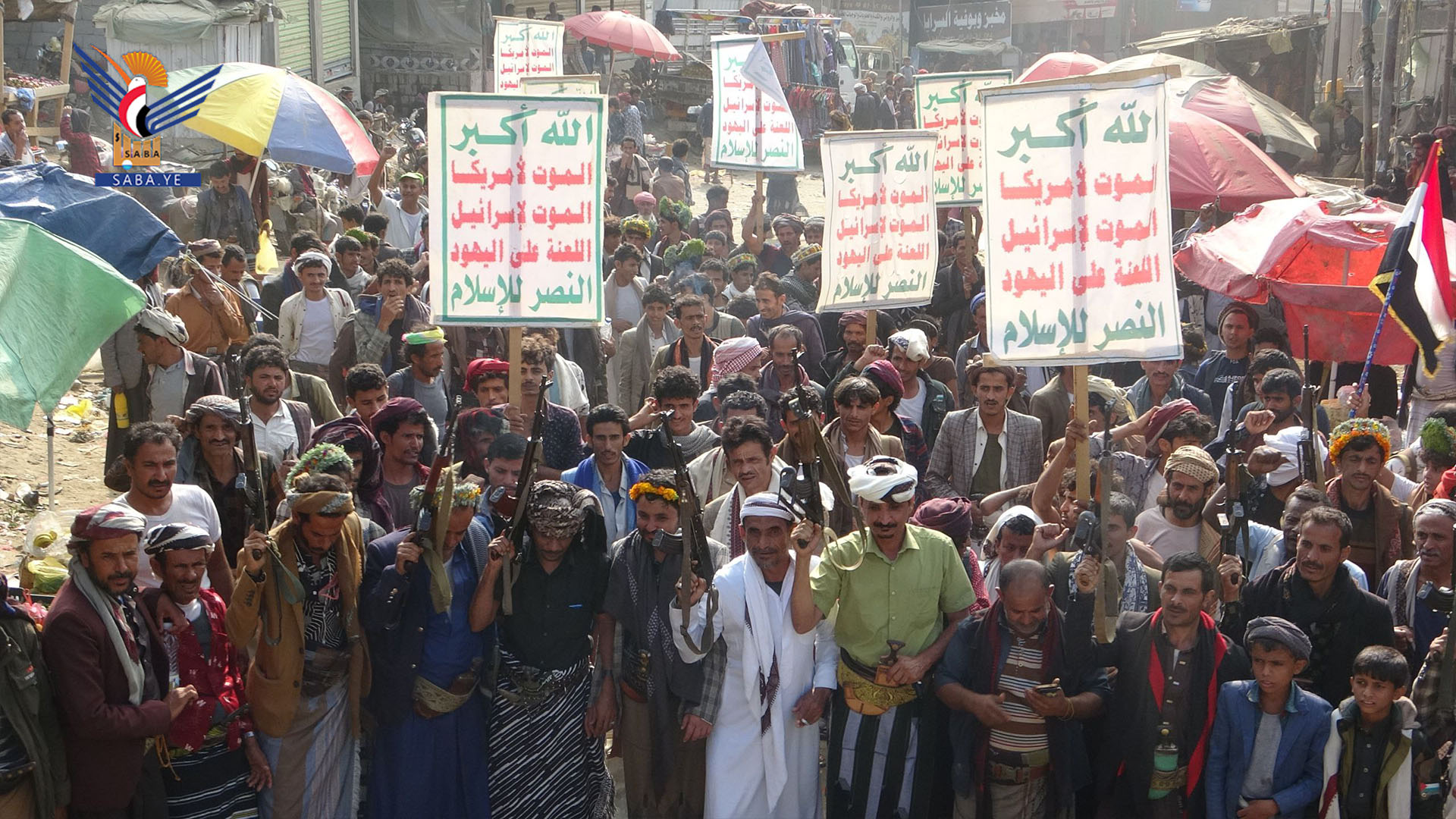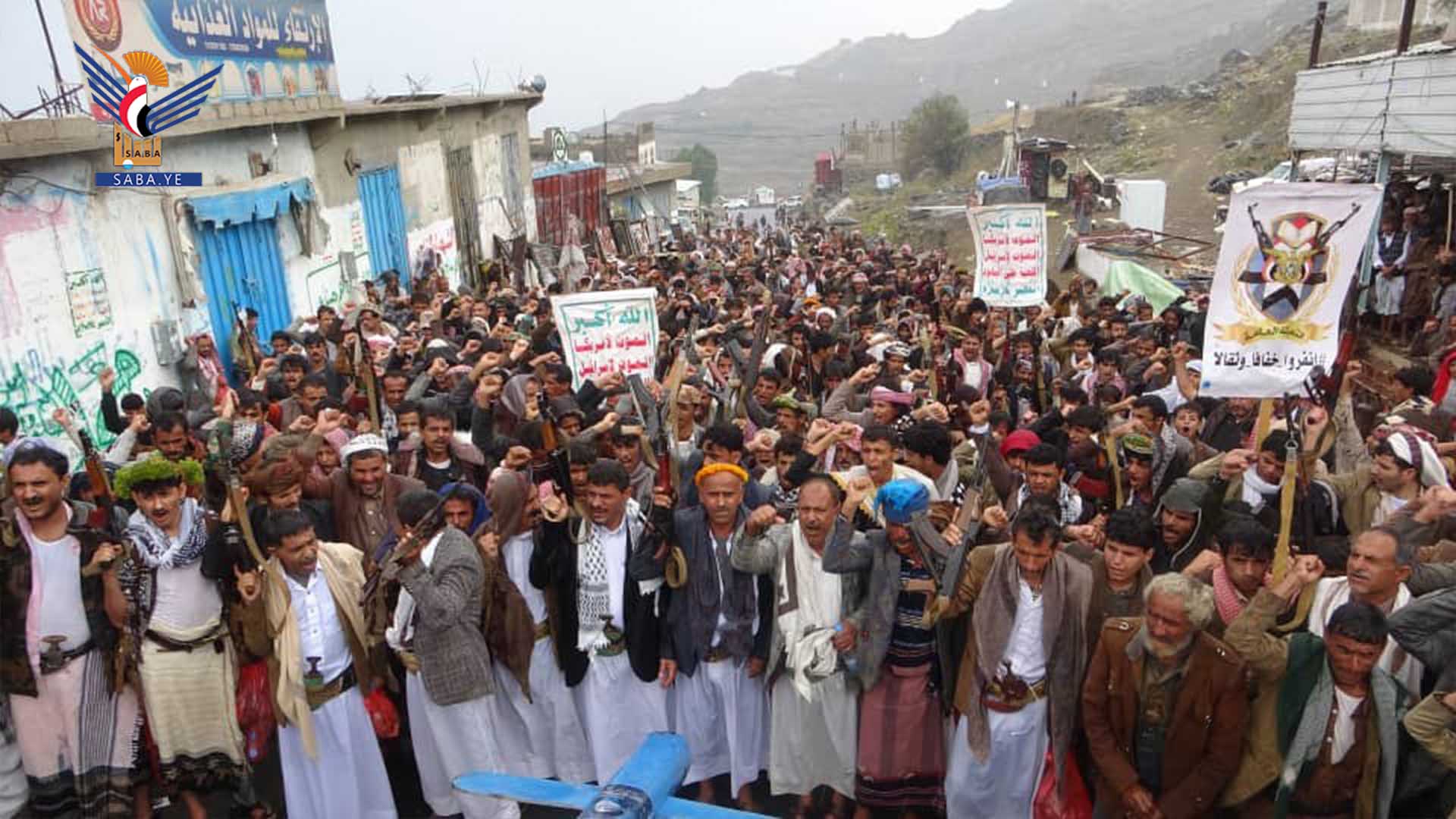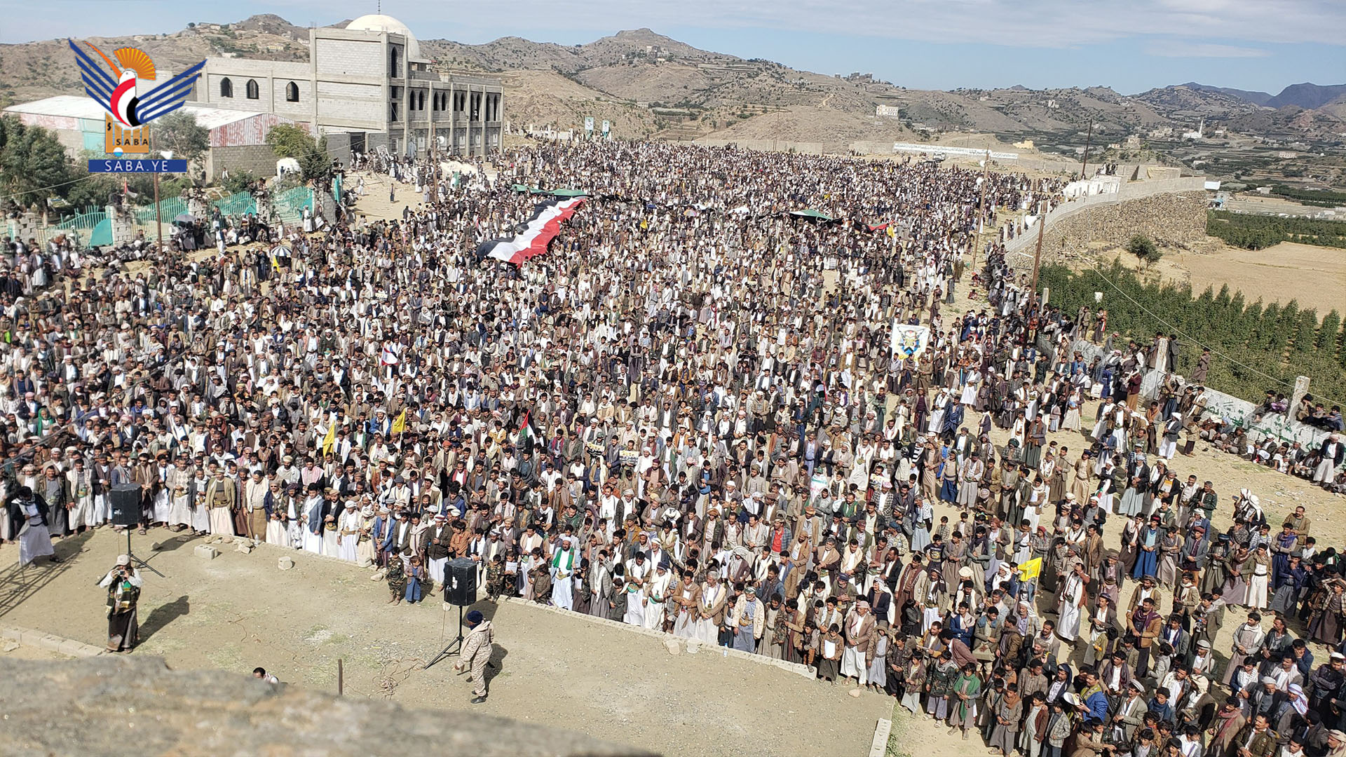 وفي المسيرات الجماهيرية الكبرى التي شهدتها ساحة المولد النبوي الشريف بمركز المحافظة ، وساحة الشهيد القائد بخولان عامر ، وساحات عرو وجمعة بني بحر ، وذويب بحيدان ، وشعارة والحجلة وبني صياح برازح ، وربوع الحدود ومدينة جاوي وبني عباد وولد عمر في مجز ، والجرشة بغمر ، ومركز مديرية قطابر ، والسهلين في آل سالم ، والخميس وآل مقنع في منبه ، وساحة شدا ، ومركز مديرية كتاف وأملح ، ويسنم في باقم ، و عزلتي الرحمانين وبقامة في غمر ، وثلاث ساحات في مديرية الظاهر، أكد المشاركون استمرار النفير العام والجاهزية لمواجهة كل التحديات في إطار موقف اليمن الثابت المساند لغزة ولبنان .