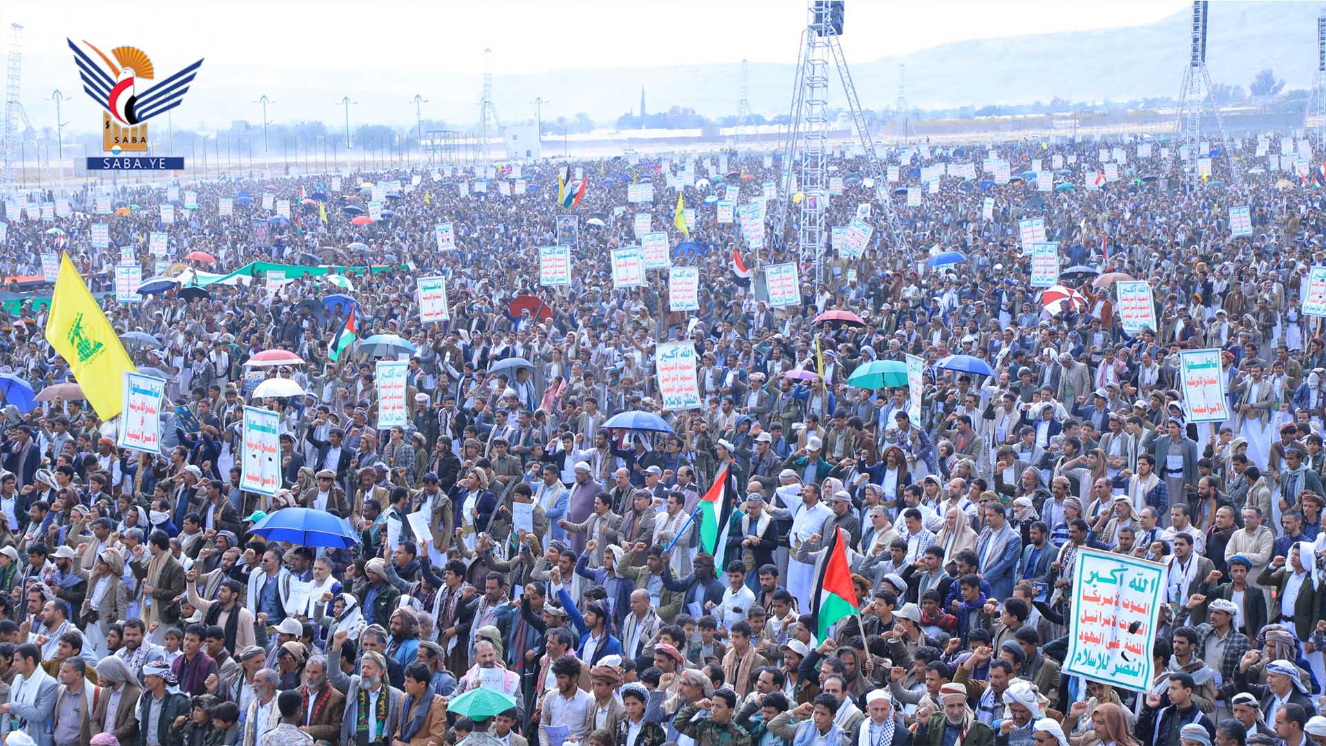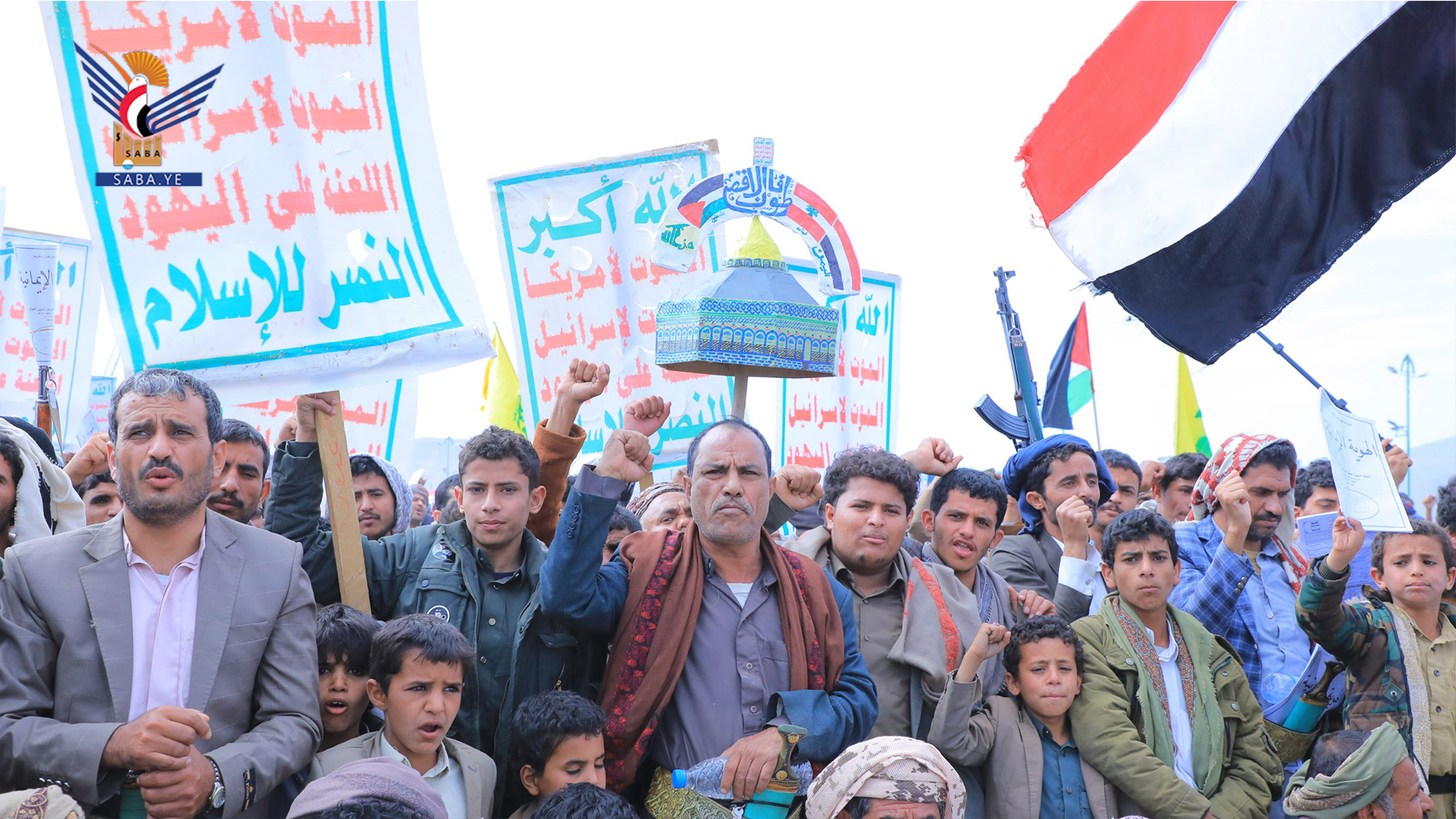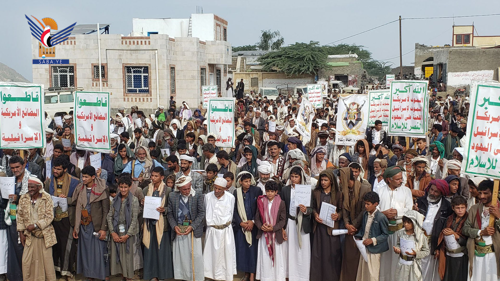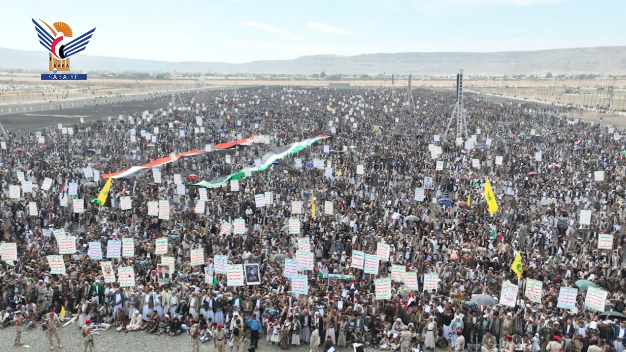 وفي المسيرات الجماهيرية الكبرى التي شهدتها ساحة المولد النبوي الشريف بمركز المحافظة ، وساحة الشهيد القائد بخولان عامر ، وساحات عرو وجمعة بني بحر ، وذويب بحيدان ، وشعارة والحجلة وبني صياح برازح ، وربوع الحدود ومدينة جاوي وبني عباد وولد عمر في مجز ، والجرشة بغمر ، ومركز مديرية قطابر ، والسهلين في آل سالم ، والخميس وآل مقنع في منبه ، وساحة شدا ، ومركز مديرية كتاف وأملح ، ويسنم في باقم ، و عزلتي الرحمانين وبقامة في غمر ، وثلاث ساحات في مديرية الظاهر، أكد المشاركون استمرار النفير العام والجاهزية لمواجهة كل التحديات في إطار موقف اليمن الثابت المساند لغزة ولبنان .