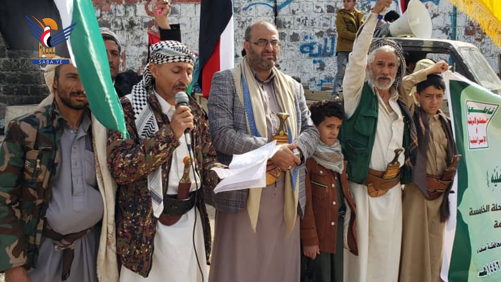 وأكد بيان صادر عن المسيرات الاستمرار في رفع راية الجهاد في سبيل الله، والتمسك بكتابه العظيم، وإعلاء كلمته، تحت راية الأعلام الهداة إلى دينه، دون تردد أو تراجع، وبكل قوة حتى لو اجتمع عليهم كل أشرار العالم.