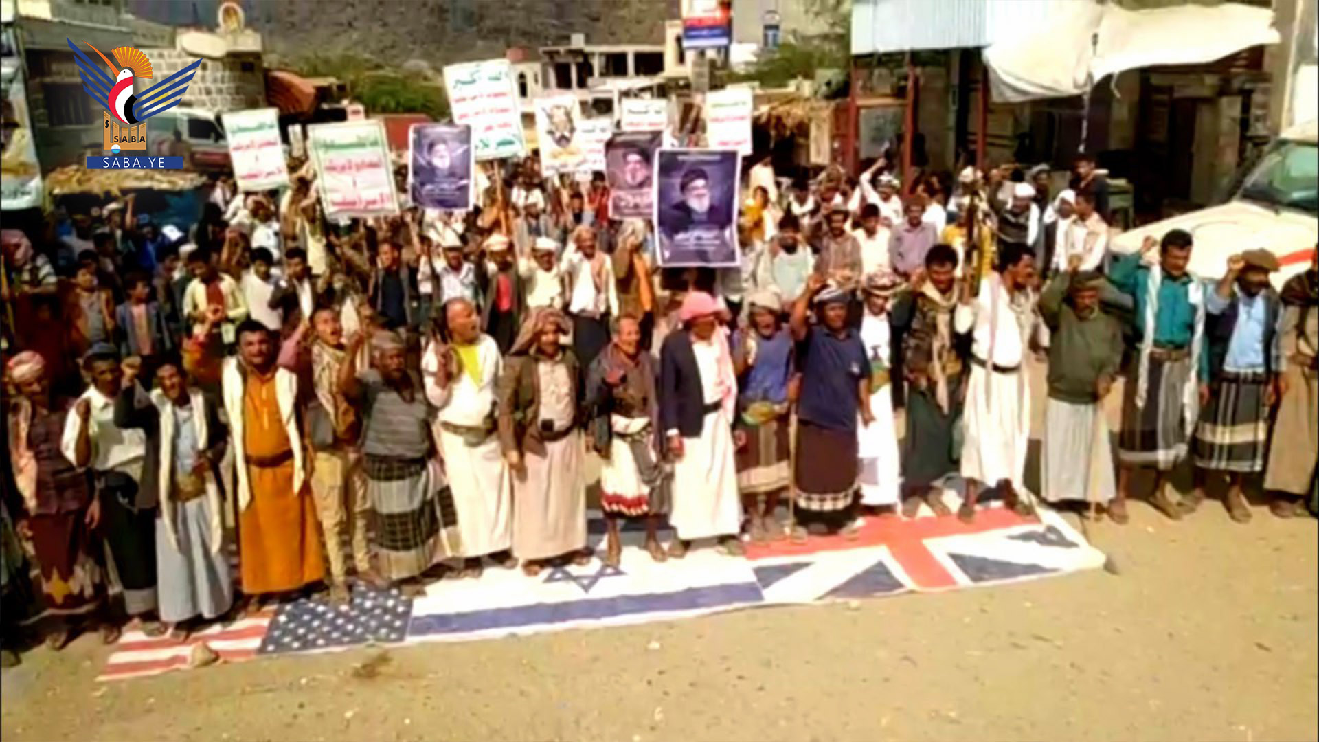 وأكد أبناء ريمة جاهزيتهم للتصدي لأي تصعيد للعدو الأمريكي البريطاني ضد الشعب اليمني.. محذرين العدو الأمريكي، من استمرار دعمه لجرائم الكيان الصهيوني.