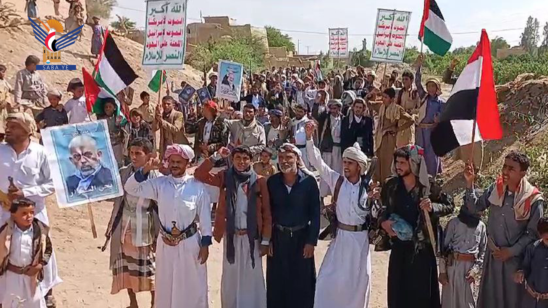 وأدان المشاركون في المسيرات التي أقيمت في مديريات الحزم والعنان وبرط العنان والحميدات والمتون والغيل والزاهر والمراشي والمصلوب والمطمة ورجوزة والمصلوب وخب والشعف، المجازر الوحشية التي يرتكبها العدو الصهيوني ضد المدنيين في غزة ولبنان.