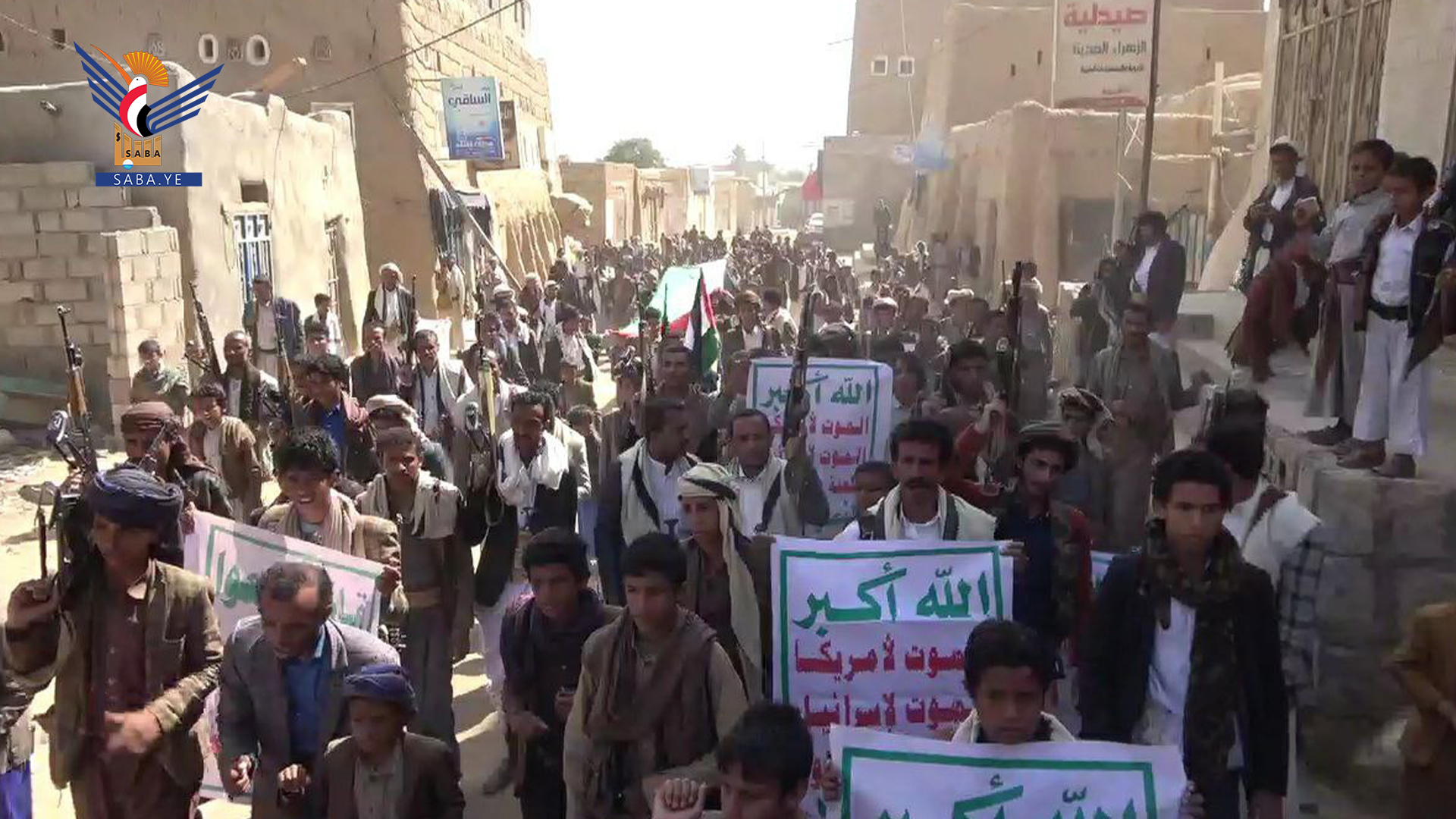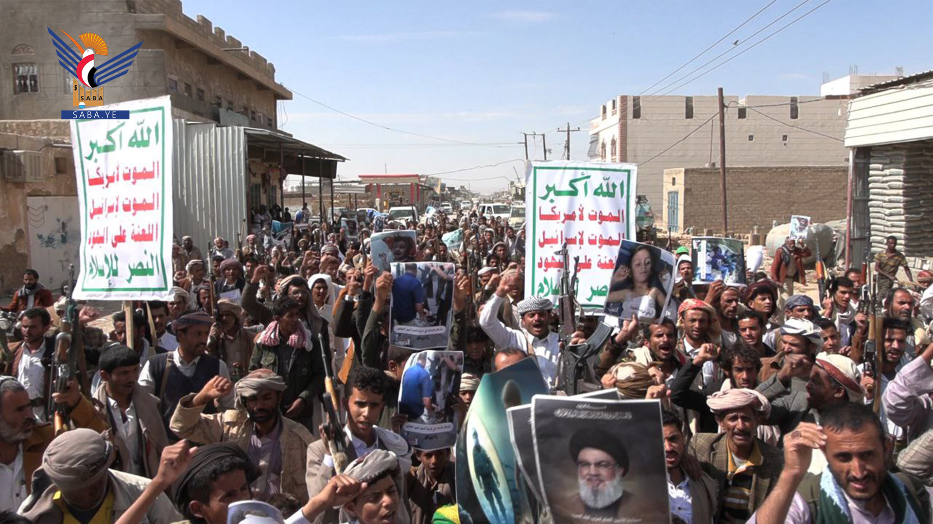 وأشار بيان صادر عن المسيرات إلى أن العدو الصهيوني يواصل حرب الإبادة الجماعية في قطاع غزة، بمشاركة ودعم أمريكي كامل ومساندة من بعض الدول الأوروبية والغربية، ومازال يمارس إجرامه في الضفة الغربية ولبنان، في ظل تخاذل عربي وإسلامي وأممي مخزٍ ومهين.