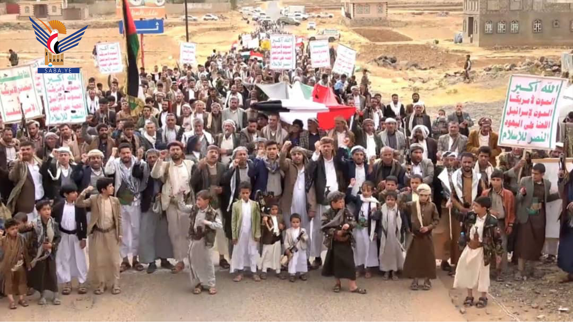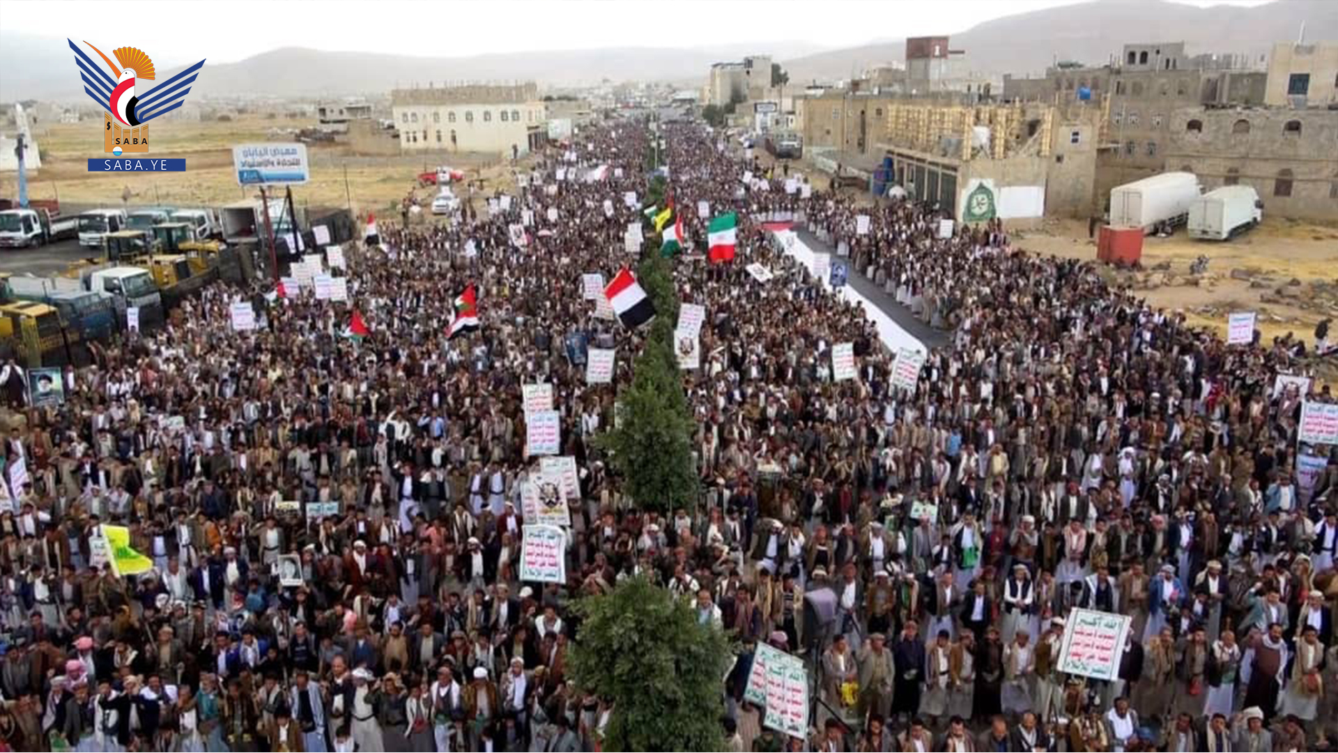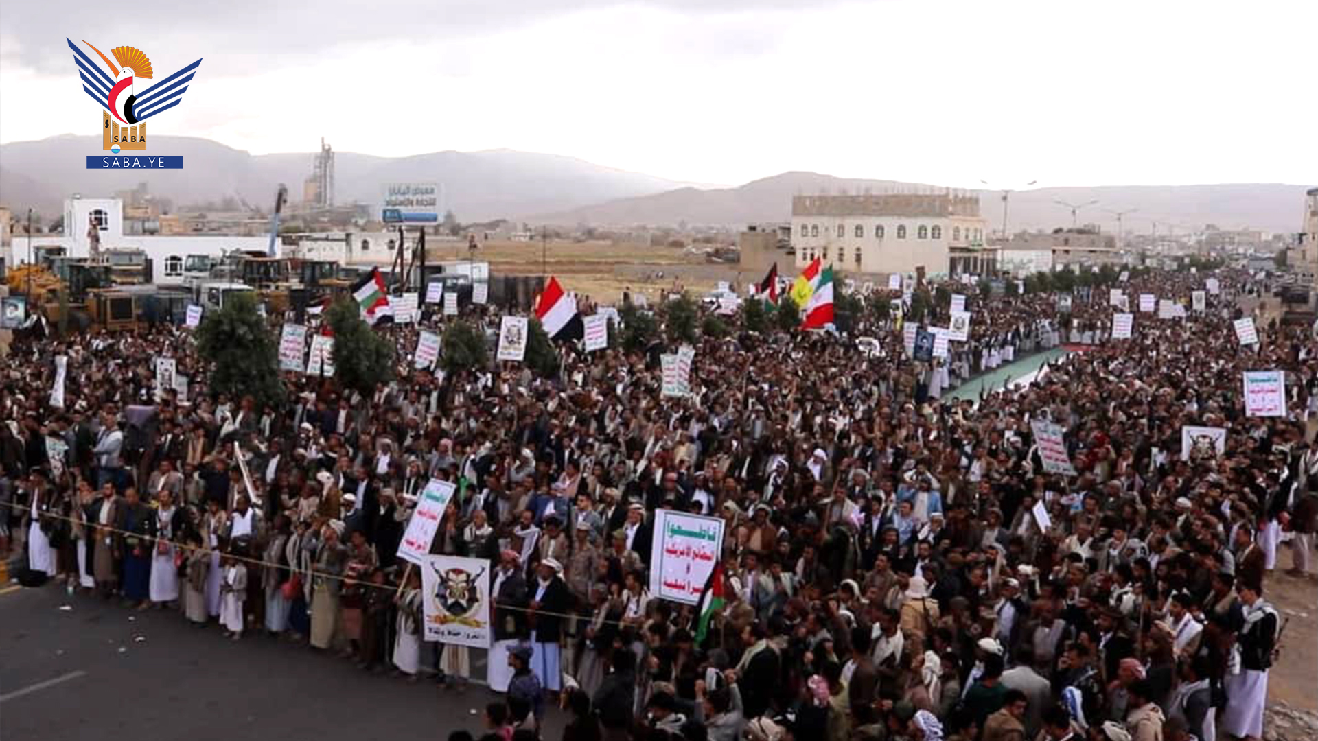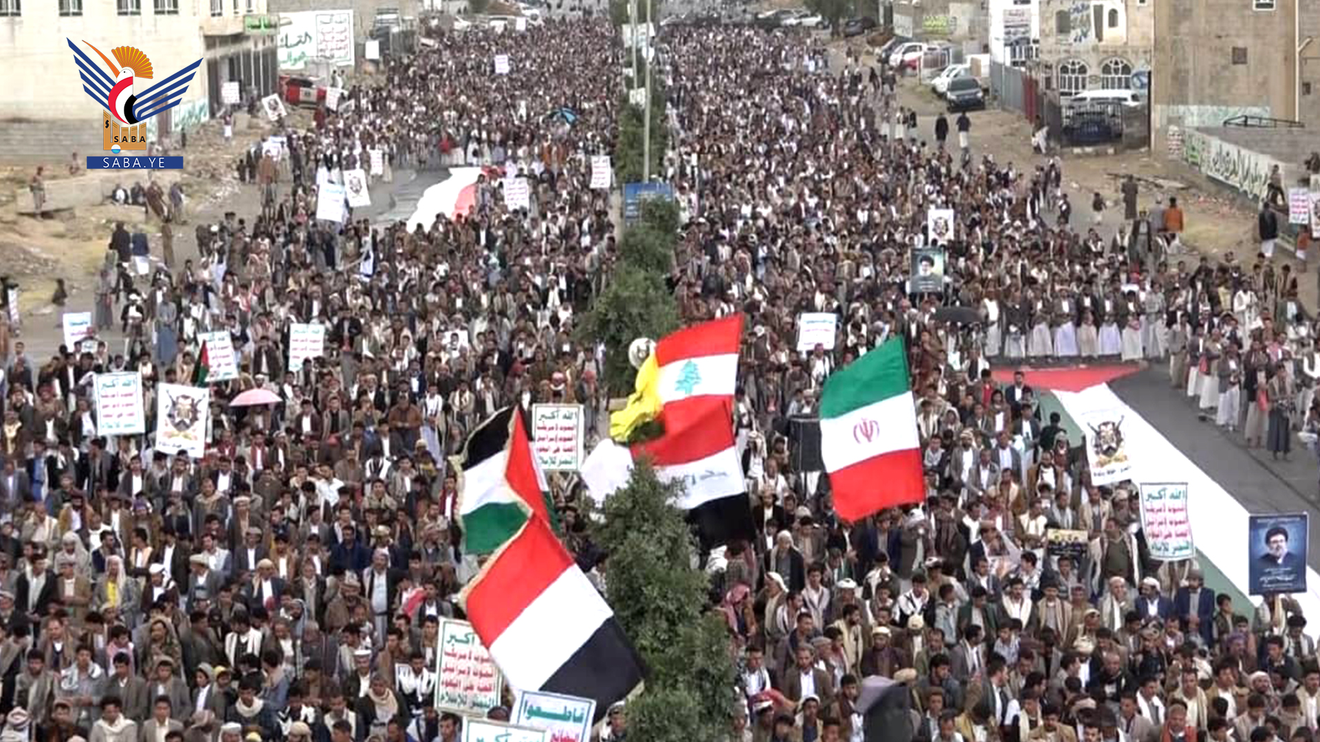 وفي المسيرات التي تقدمها محافظ المحافظة الدكتور فيصل جعمان ومسؤول التعبئة العامة سجاد حمزة ووكلاء المحافظة وقيادات أمنية وعسكرية ومشايخ وشخصيات اجتماعية، رفعت الجماهير أعلام اليمن وفلسطين ولبنان والشعارات والهتافات المنددة بجرائم حرب الإبادة الجماعية التي يرتكبها العدو الإسرائيلي المجرم في قطاع غزة بمشاركة ودعم أمريكي كامل ومساندة بعض الدول الاوروبية والغربية وكذا العدوان على الضفة الغربية ولبنان في ظل تخاذل وصمت عربي وإسلامي وأممي مخز ومهين.