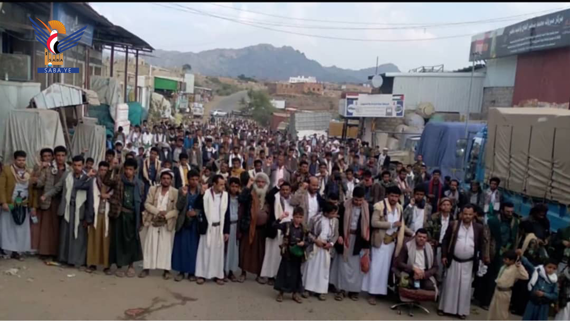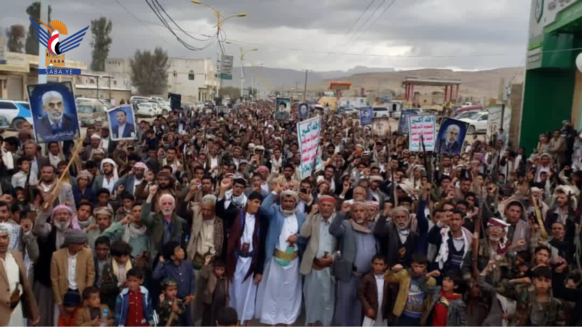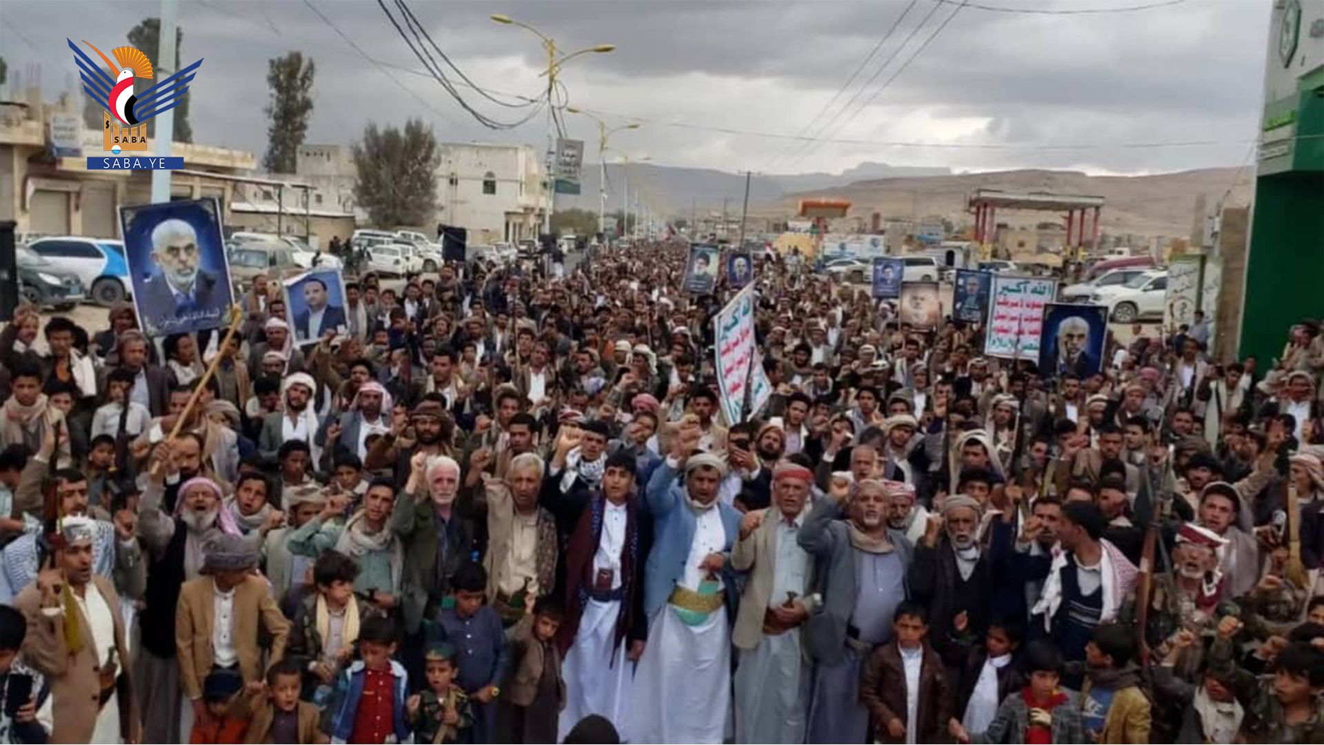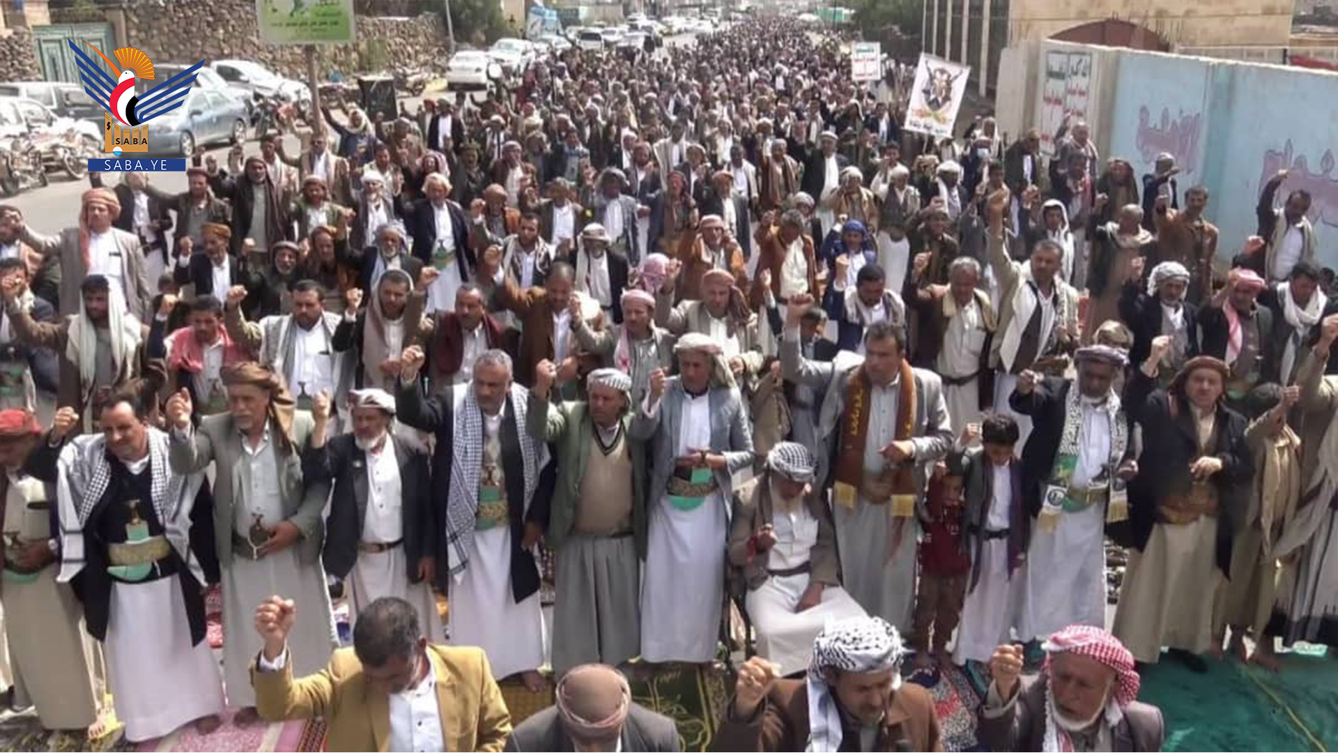 وفي المسيرات التي تقدمها محافظ المحافظة الدكتور فيصل جعمان ومسؤول التعبئة العامة سجاد حمزة ووكلاء المحافظة وقيادات أمنية وعسكرية ومشايخ وشخصيات اجتماعية، رفعت الجماهير أعلام اليمن وفلسطين ولبنان والشعارات والهتافات المنددة بجرائم حرب الإبادة الجماعية التي يرتكبها العدو الإسرائيلي المجرم في قطاع غزة بمشاركة ودعم أمريكي كامل ومساندة بعض الدول الاوروبية والغربية وكذا العدوان على الضفة الغربية ولبنان في ظل تخاذل وصمت عربي وإسلامي وأممي مخز ومهين.