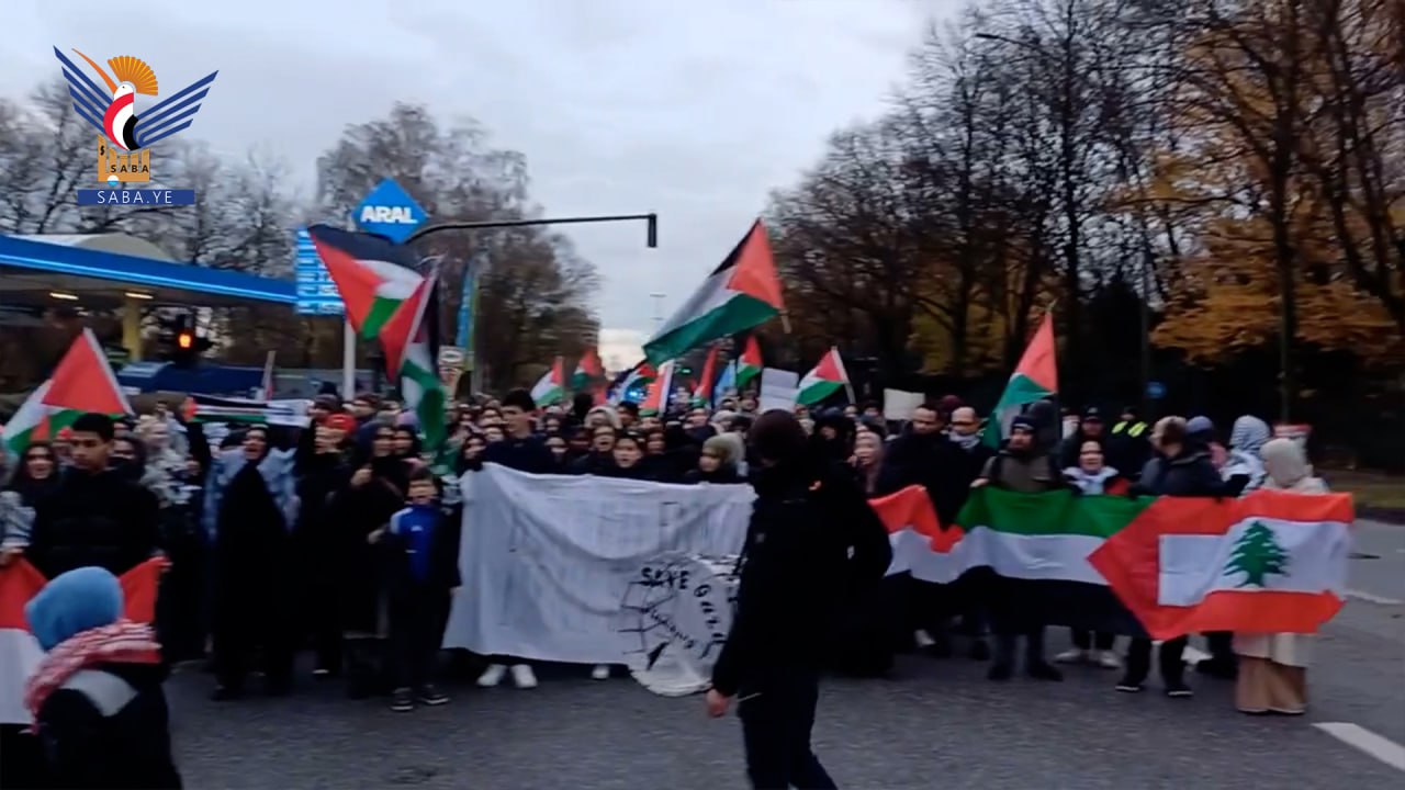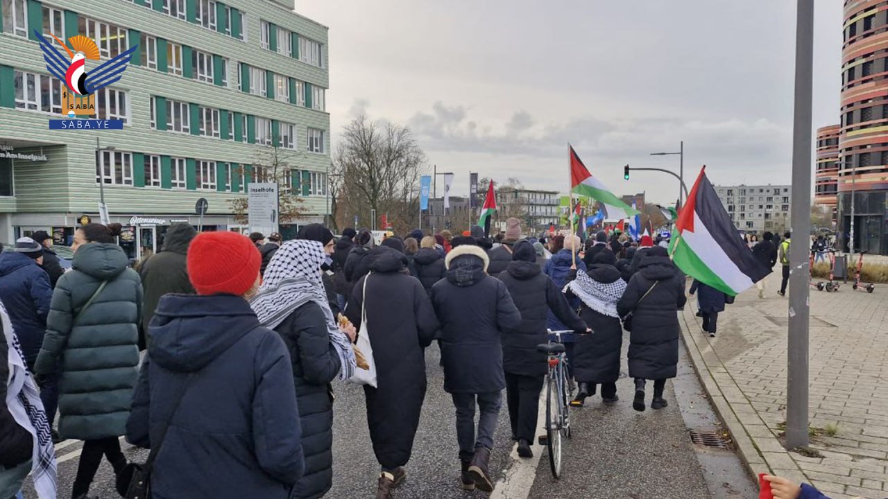 مسيرة حاشدة في مدينة هامبورغ الألمانية بمشاركة الجاليات اليمنية والفلسطينية واللبنانية