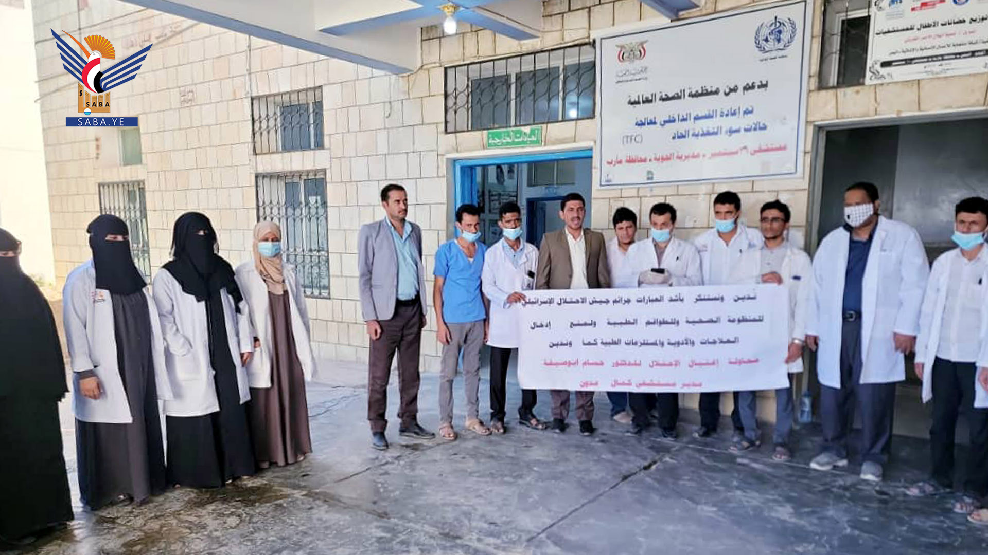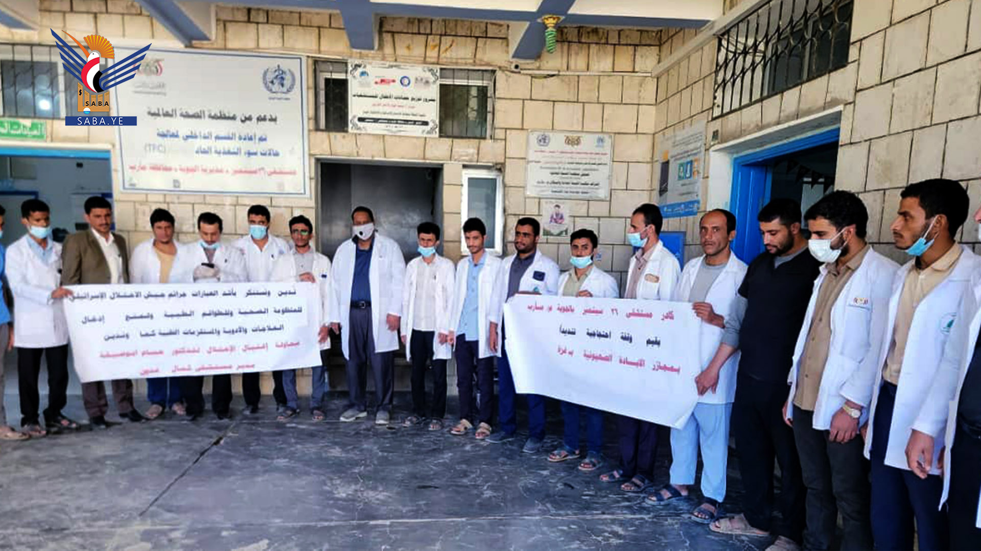 نظمّت قيادة وكوادر مستشفى 26 سبتمبر بمديرية الجوبة بمحافظة مأرب اليوم، وقفة احتجاجية تنديدًا بجرائم الكيان الصهيوني، المدعوم أمريكيًا وأوروبيًا.
