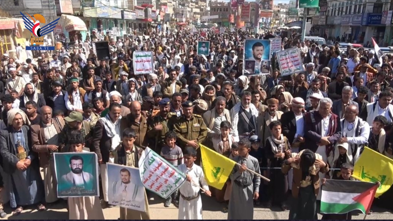 وندد المشاركون في المسيرات والوقفات التي تقدمها محافظ البيضاء عبدالله إدريس و قيادات السلطة المحلية والتنفيذية والعلماء ومسؤولو التعبئة والشخصيات الاجتماعية، بالجرائم التي يرتكبها الكيان الصهيوني في قطاع غزة ولبنان .