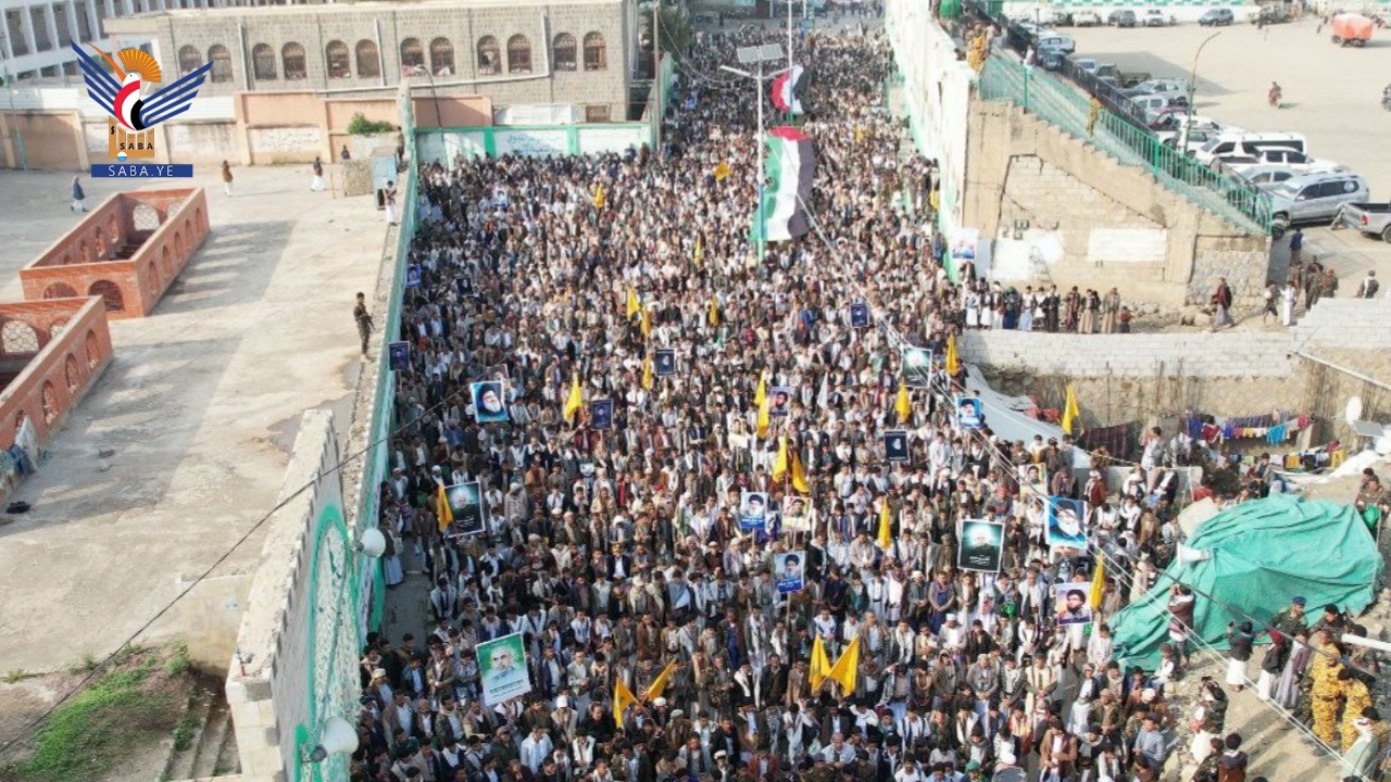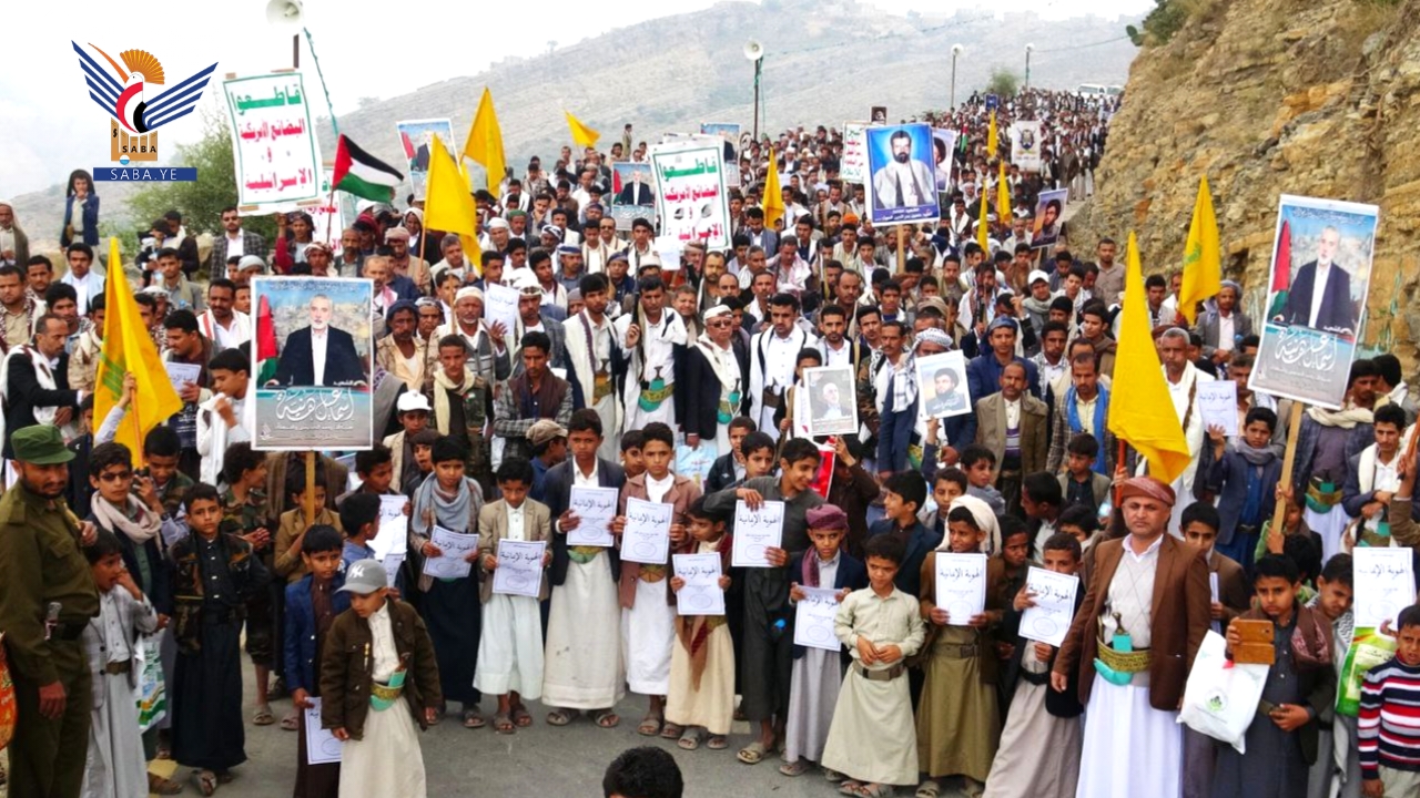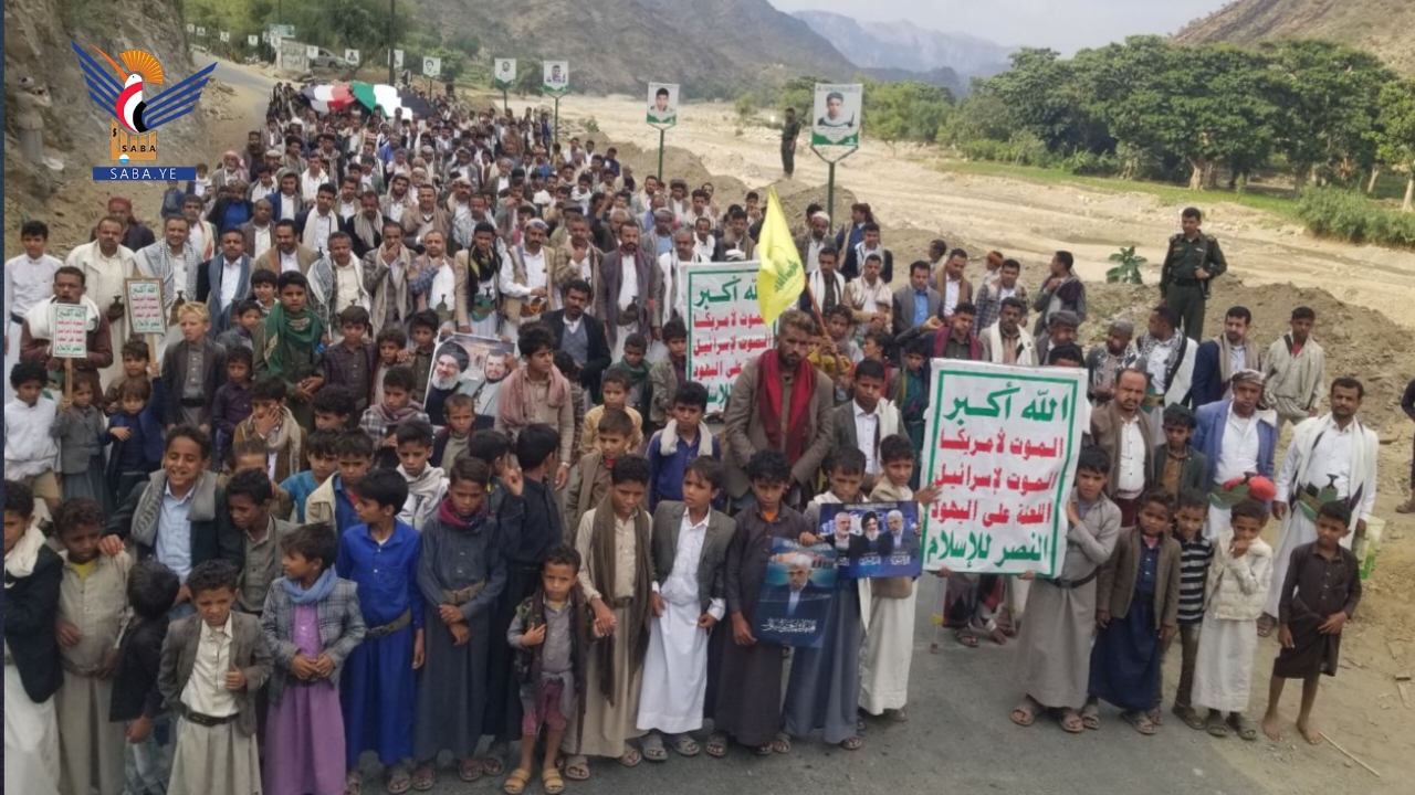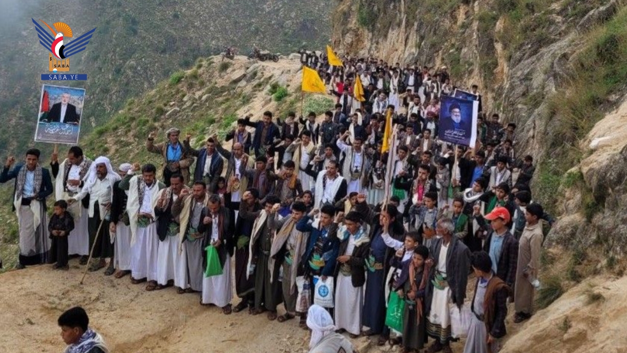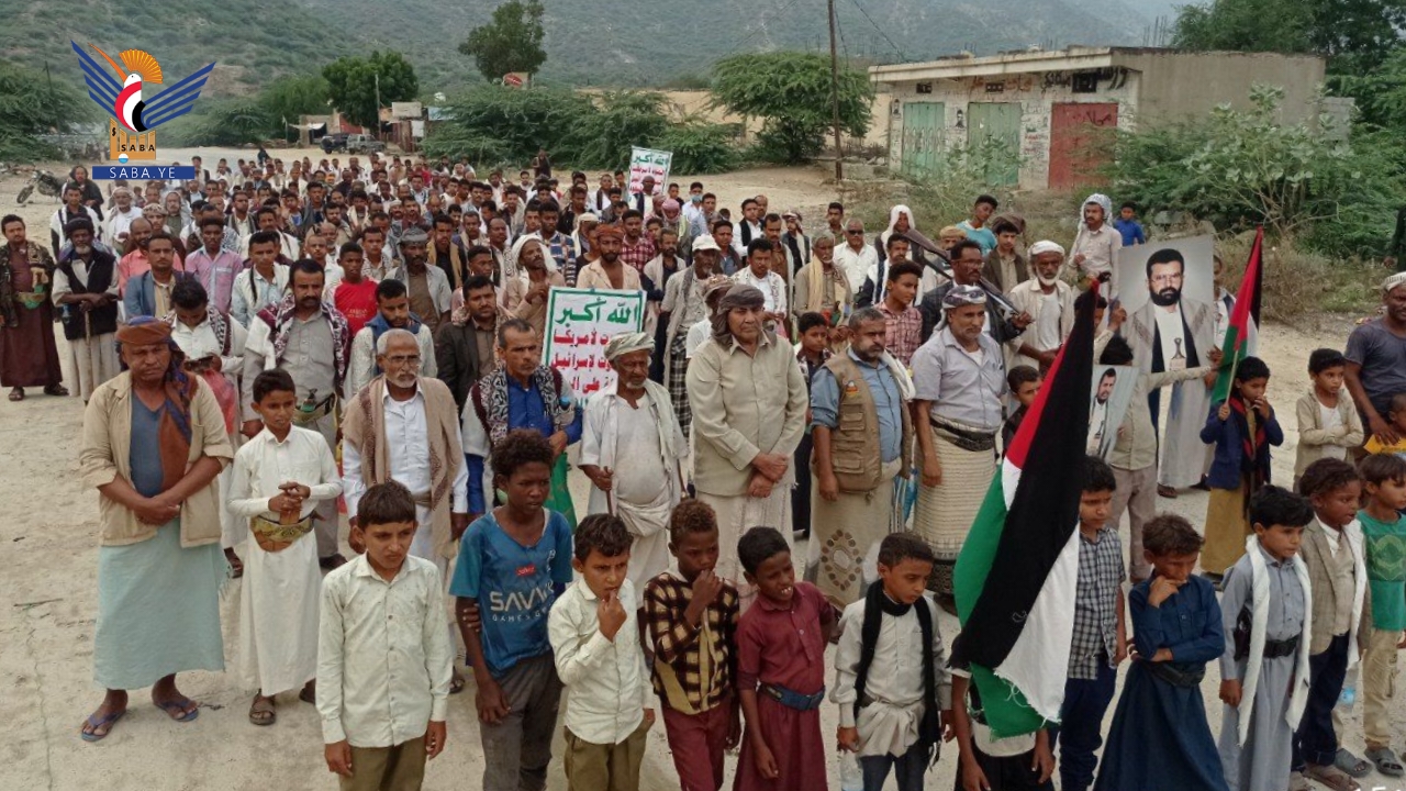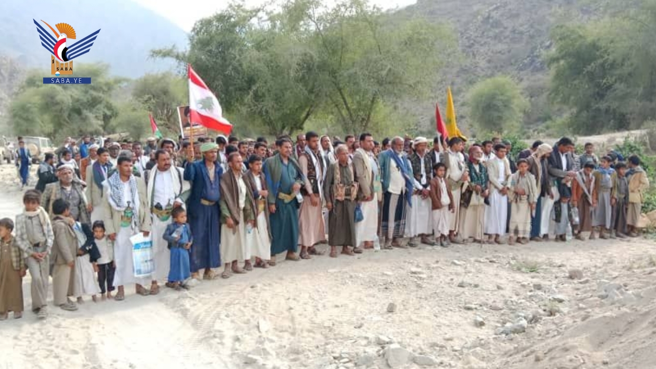 خرج أبناء محافظة حجة اليوم في 93 ساحة في مسيرات تضامنية مع الشعبين الفلسطيني واللبناني بعنوان "مباركة للبنان ومع غزة حتى النصر والاحتلال إلى زوال".