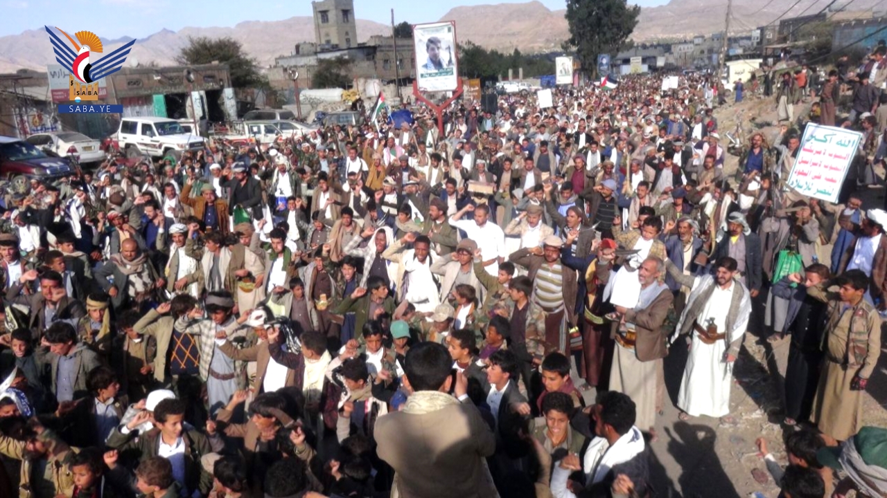مسيرات في 18 ساحة بذمار مباركة للبنان وتأكيدًا على استمرار التضامن مع غزة