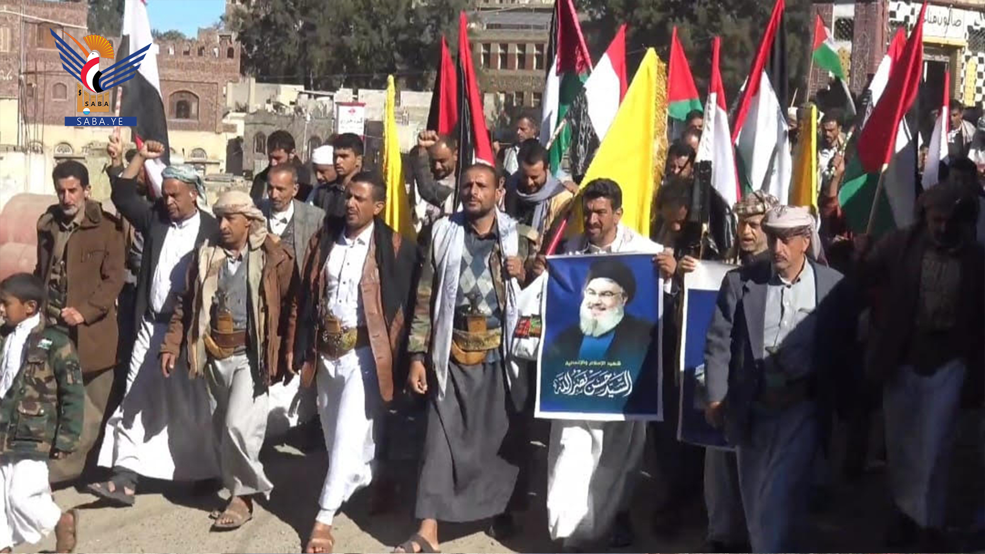 وأدان المشاركون في 27 مسيرة ووقفة نُظمت في مديريات مناخة والحيمة الداخلية والحيمة الخارجية وصعفان، المجازر الوحشية التي يرتكبها العدو الصهيوني ضد المدنيين في غزة والضفة الغربية وكل الأراضي الفلسطينية المحتلة.