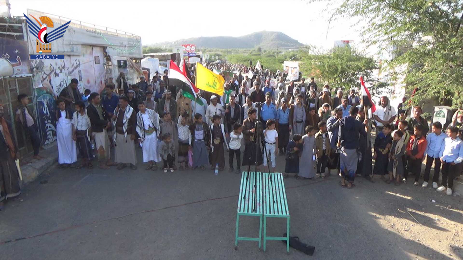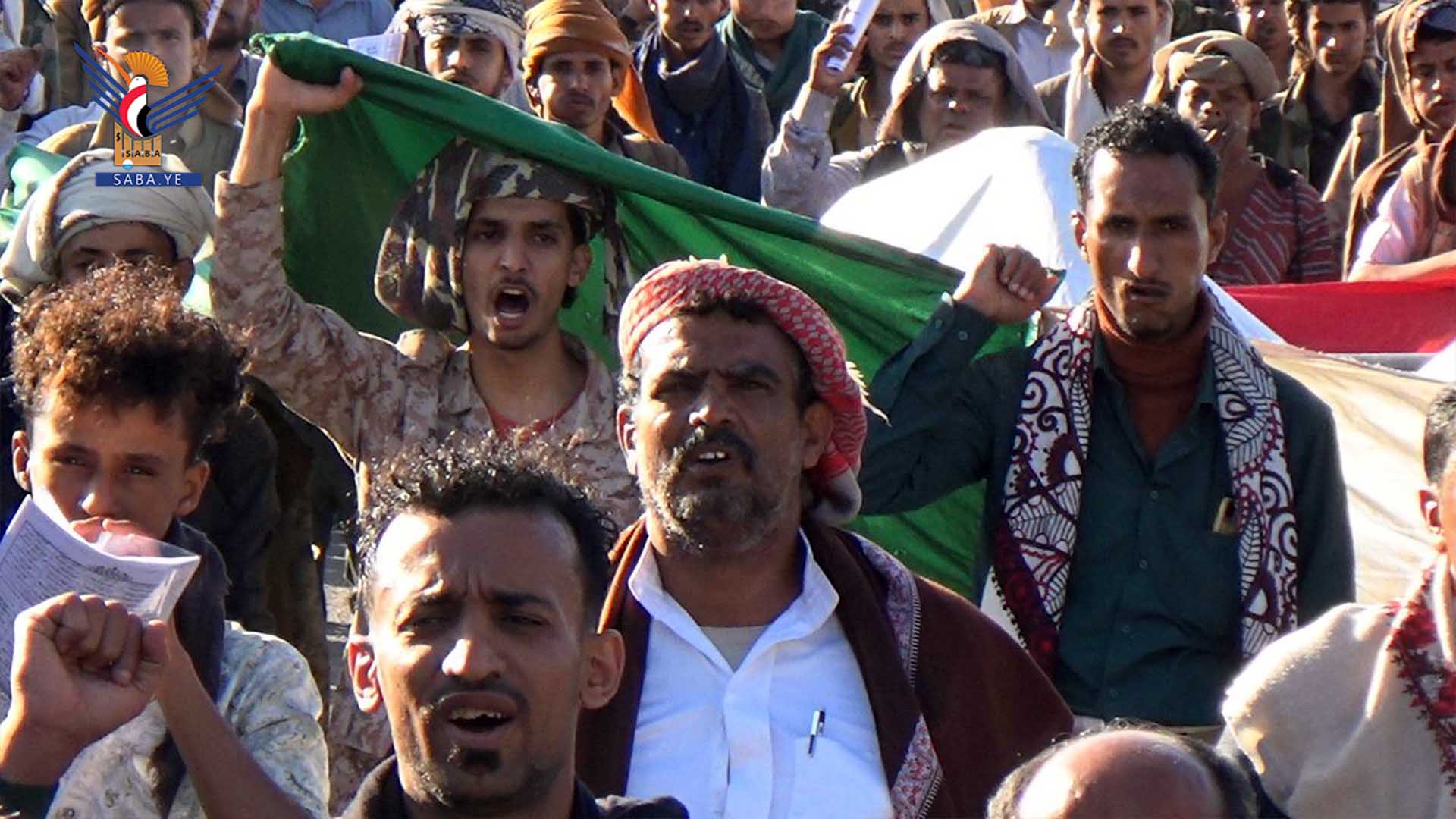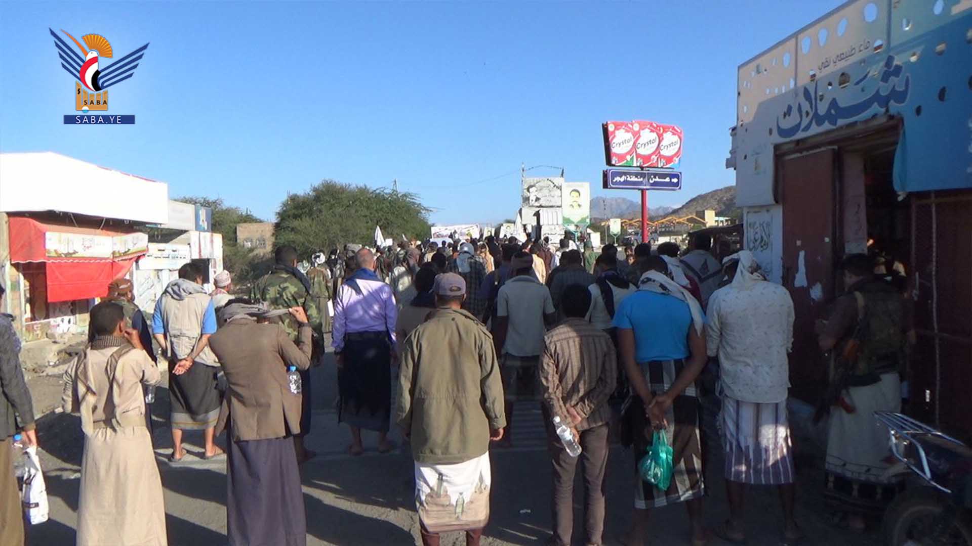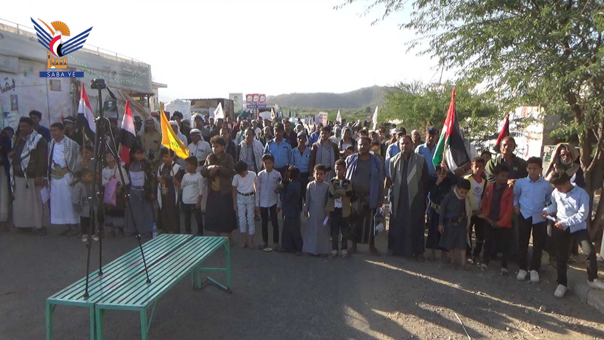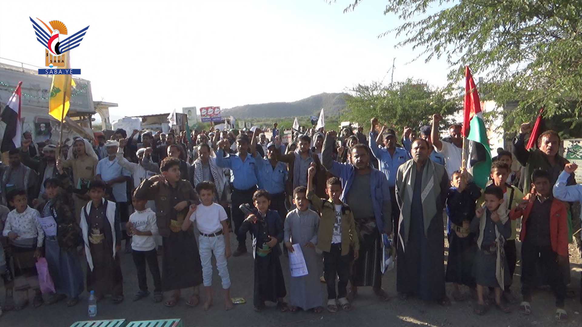 وأكد المشاركون في المسيرة التي تقدمها وكيل المحافظة فيصل الفقيه، ومسؤول التعبئة العامة جميل الصوفي، وقيادات عسكرية وأمنية وشخصيات اجتماعية، أن موقف الشعب اليمني المناصر والمساند لغزة أخذ بعدا أكبر ضد إسرائيل وأمريكا وبريطانيا، إسنادا ونصرة لغزة.