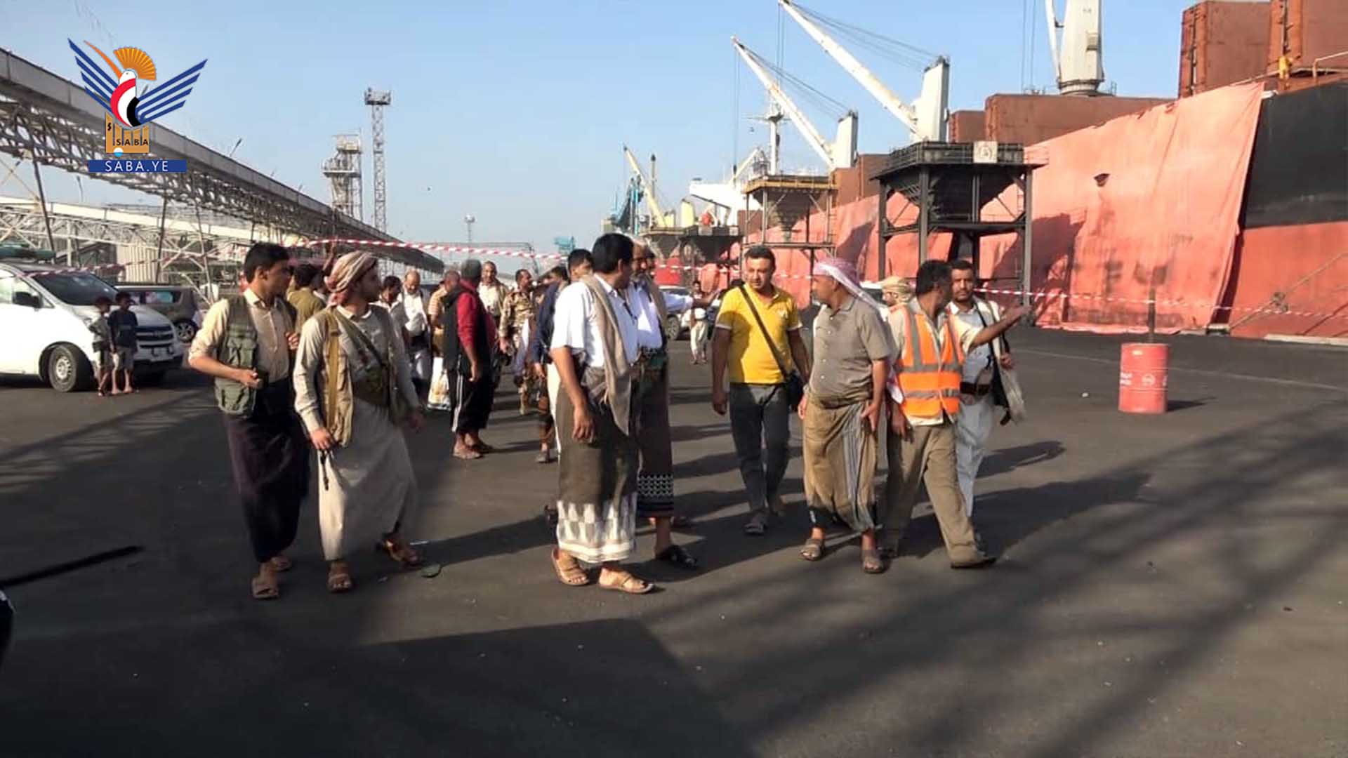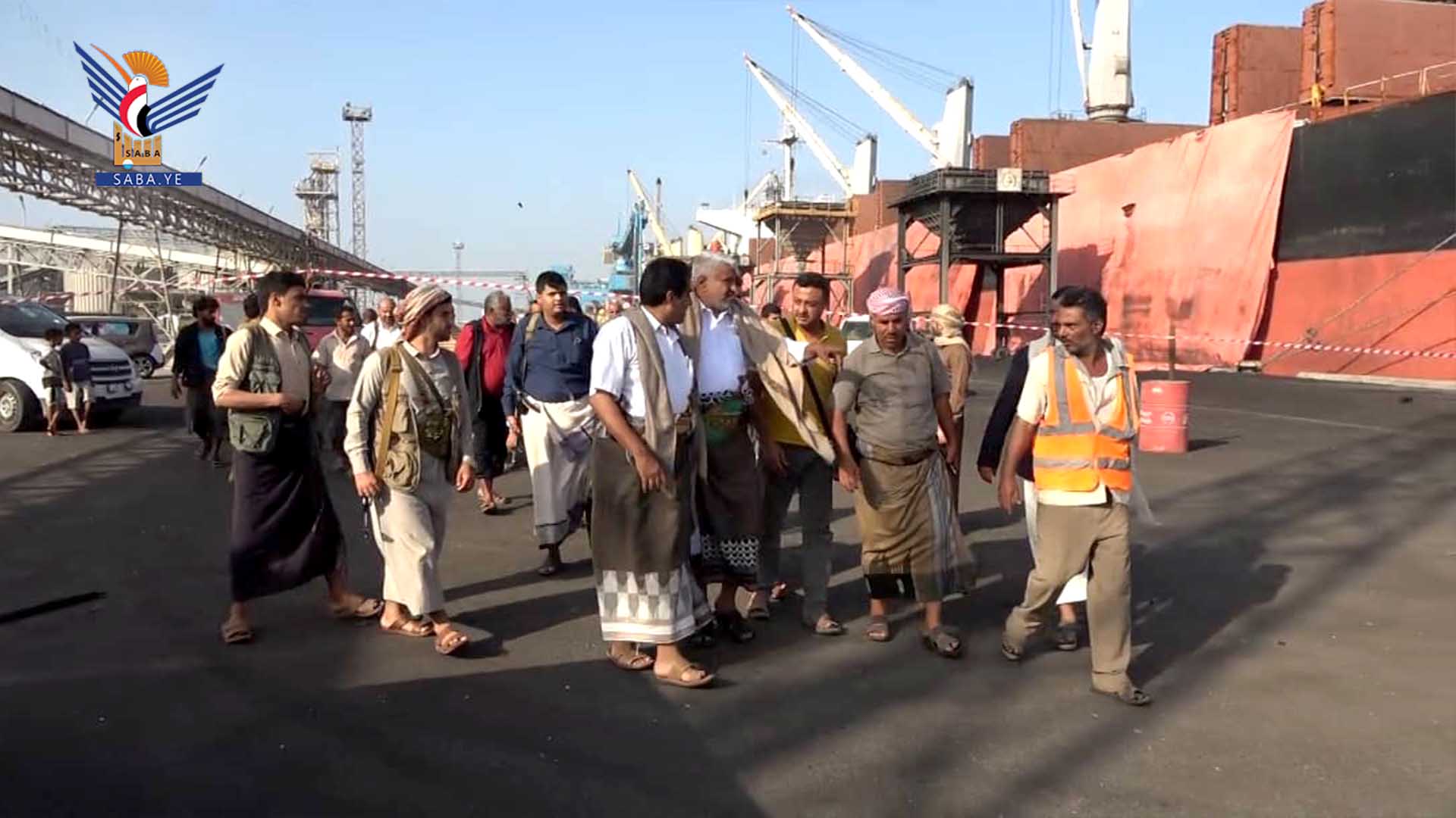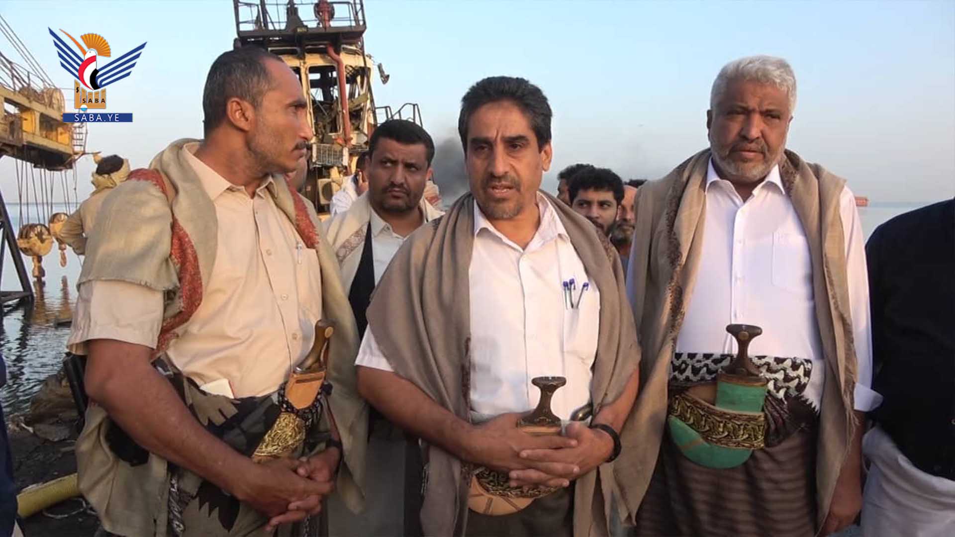 قحيم وعطيفي والبشري يطلعون على أضرار استهداف العدوان الصهيوني لموانئ الحديدة