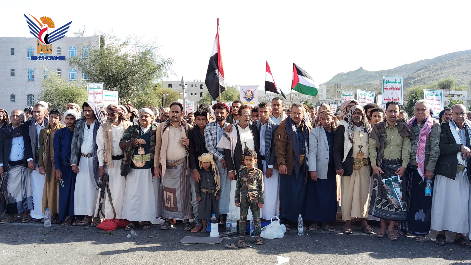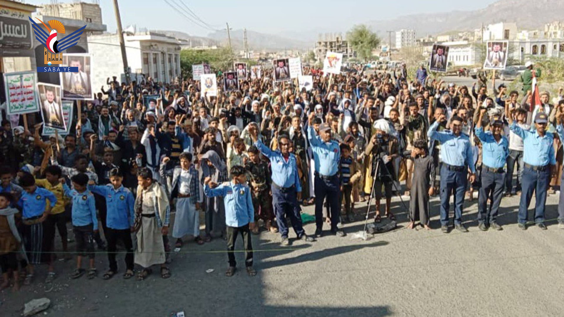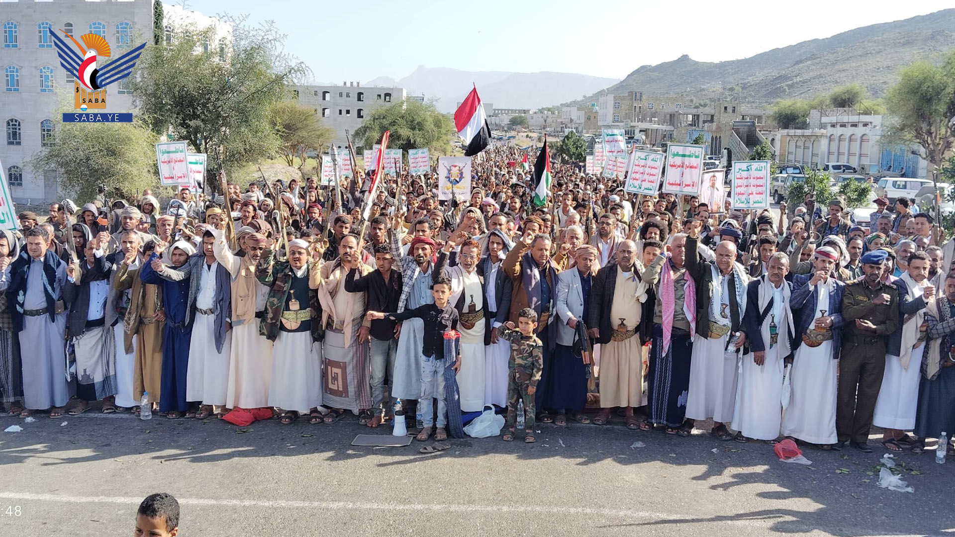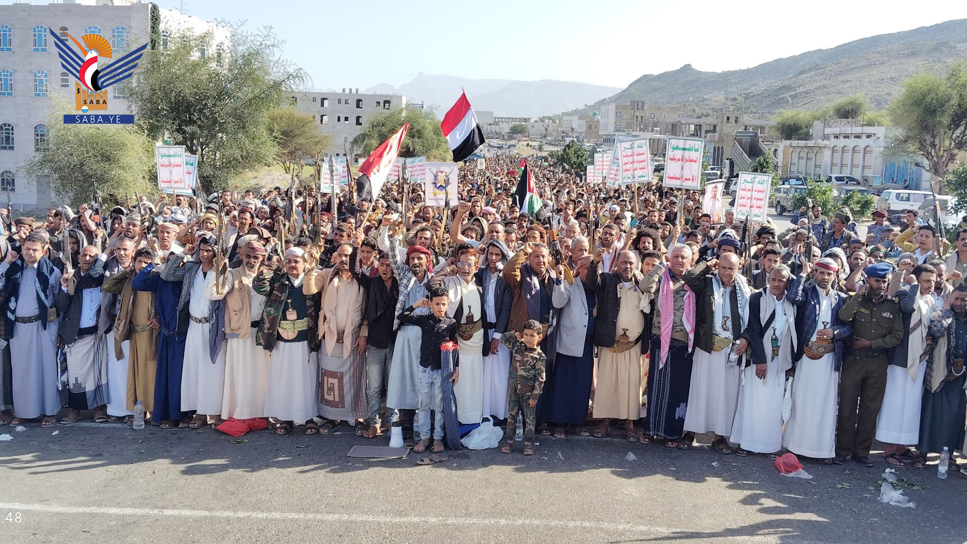 إلى ذلك نُظمت بساحة الرسول الأعظم في الجند، وساحات المربع الأوسط في المشارب شارع 40، والمربع الغربي في الربيعي مقابل مصنع الرنج، والمربع الشمالي في الحيمة والزواقر سوق وادي عريق، والمربع الأوسط في عزلتي قياض والجعدي بمفرق قياض - بمديرية التعزية، مسيرات حاشدة تنديدًا باستمرار جرائم العدوان الصهيوني، الأمريكي في غزة.
