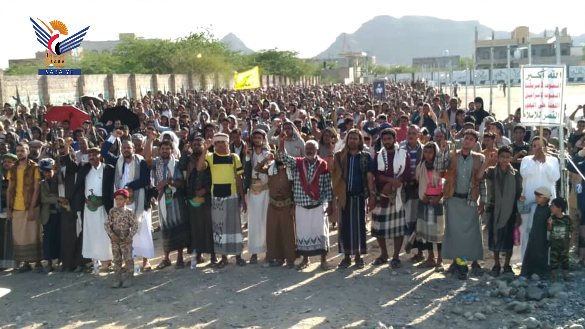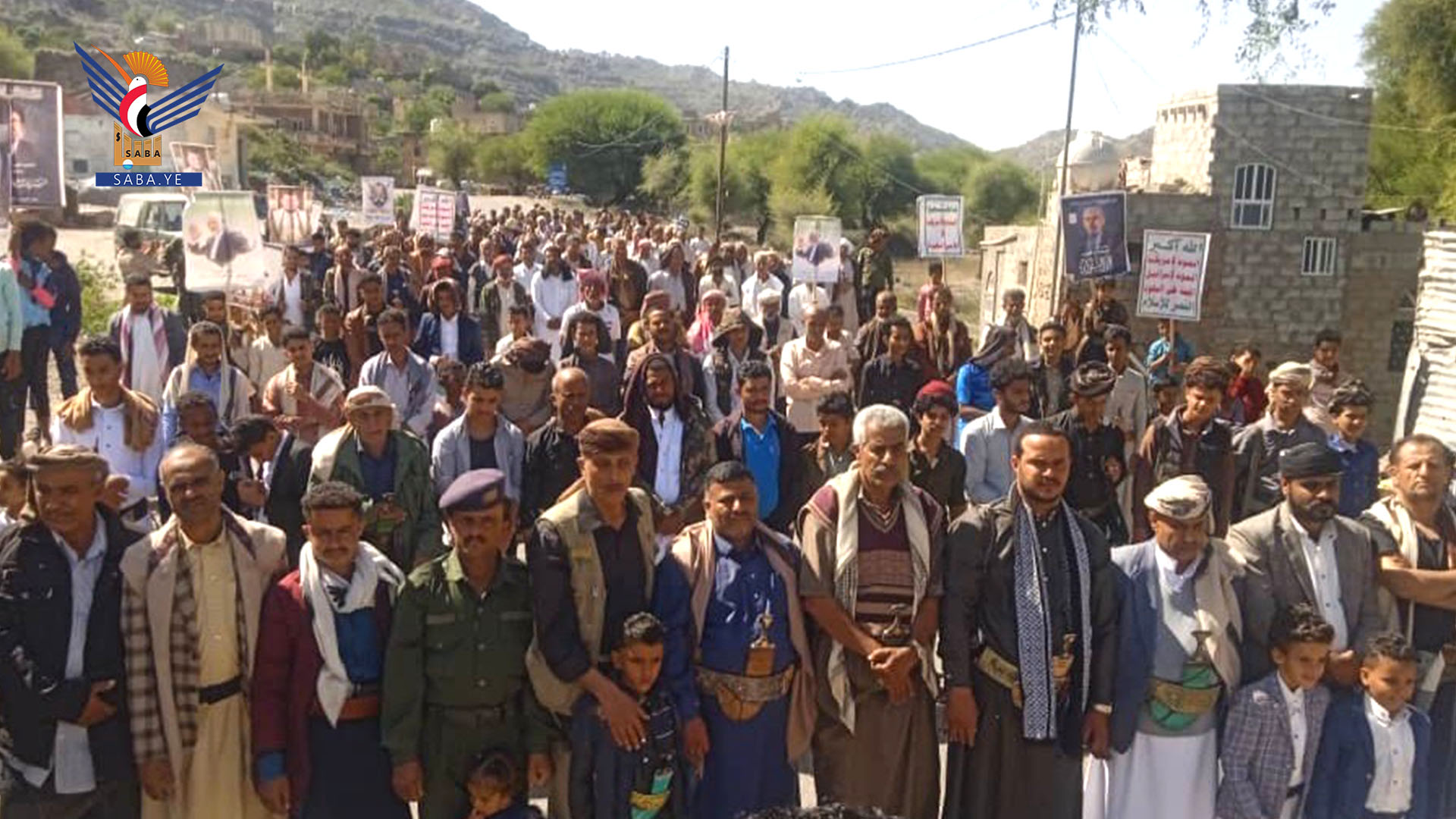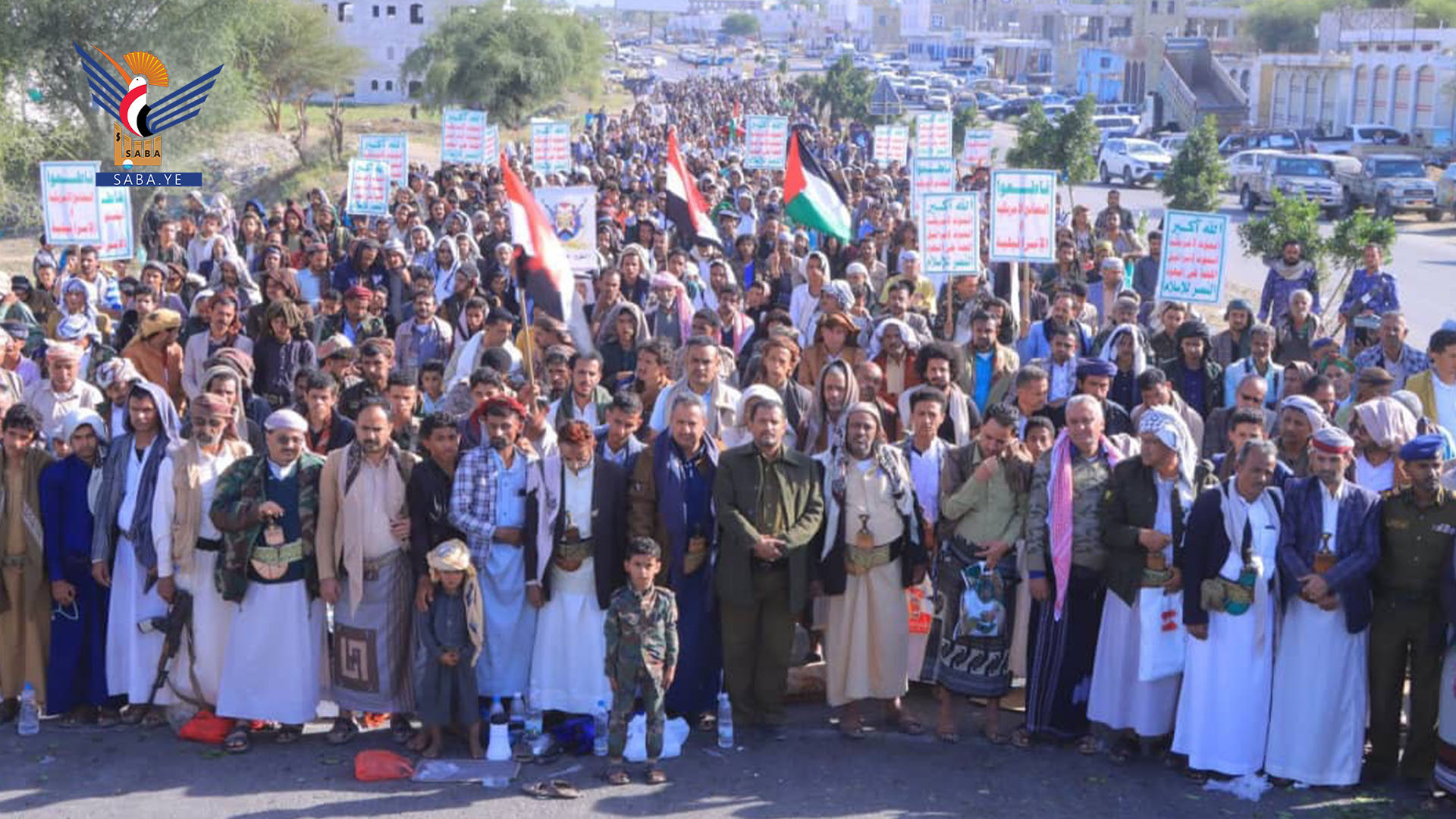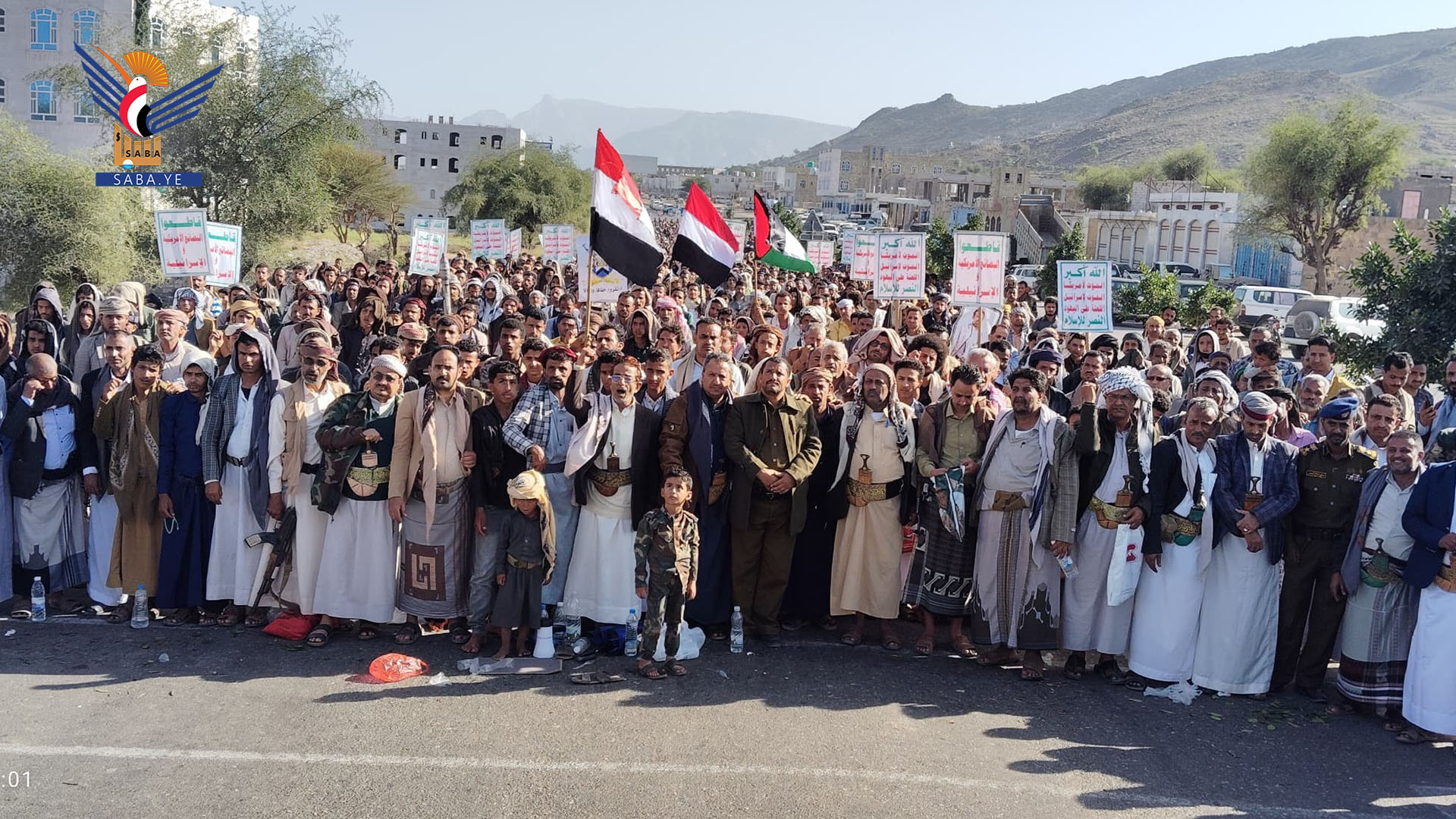 إلى ذلك نُظمت بساحة الرسول الأعظم في الجند، وساحات المربع الأوسط في المشارب شارع 40، والمربع الغربي في الربيعي مقابل مصنع الرنج، والمربع الشمالي في الحيمة والزواقر سوق وادي عريق، والمربع الأوسط في عزلتي قياض والجعدي بمفرق قياض - بمديرية التعزية، مسيرات حاشدة تنديدًا باستمرار جرائم العدوان الصهيوني، الأمريكي في غزة.