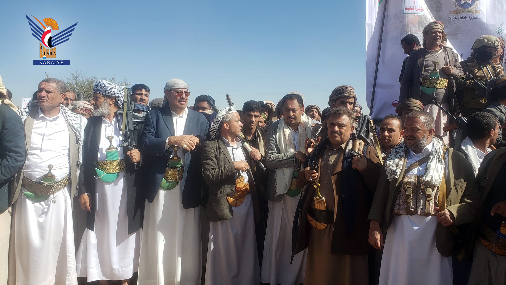 نظمت قبيلة بني الحارث في أمانة العاصمة اليوم، وقفة مسلحة حاشدة، نصرة لغزة وتحدياً للعدو الأمريكي الإسرائيلي، وتأكيدا على الجهوزية الكاملة لكل الخيارات.