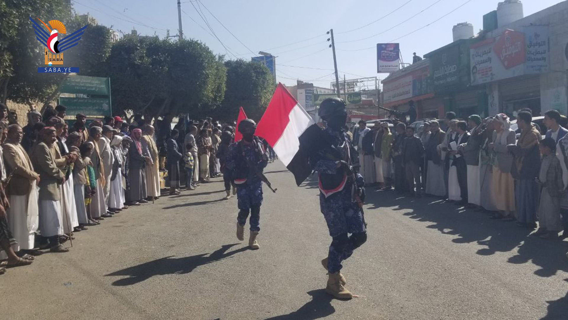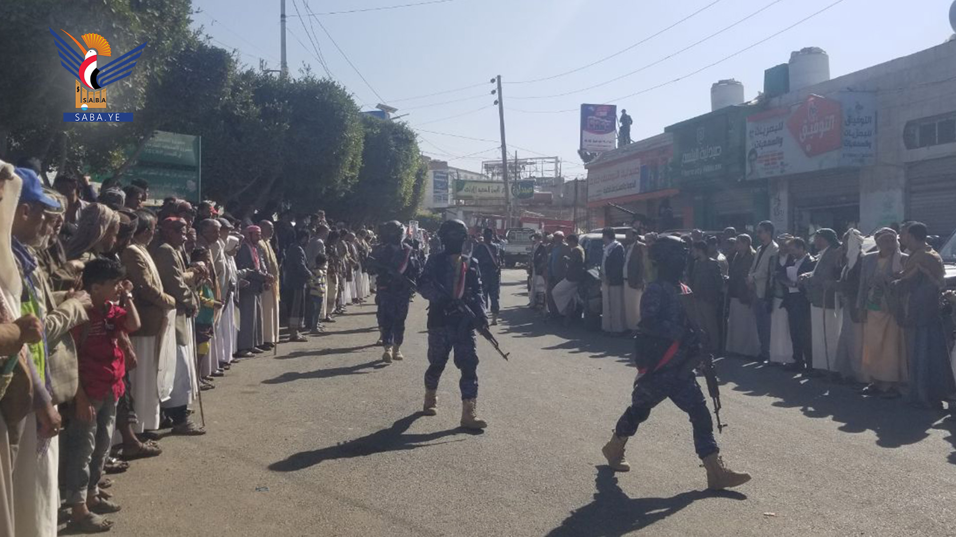 وفي المسير اشاد محافظ حجة هلال الصوفي بالحس الأمني لدى القوات الأمنية وتفاعلهم في نصرة قضايا الأمة واستعدادهم الدائم لمكافحة الجرائم والمجرمين والحفاظ على الممتلكات العامة والخاصة وإرساء السكينة العامة.