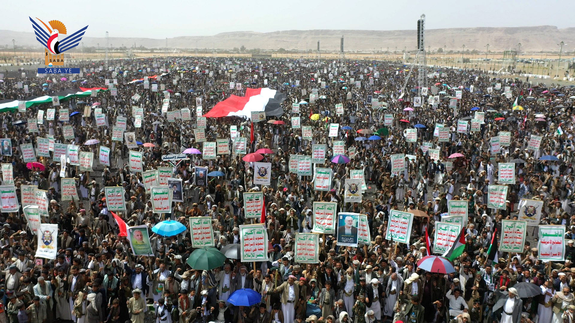 وخلال المسيرة في ساحة المولد النبوي، أشاد محافظ صعدة محمد عوض بالحضور الجماهيري الحاشد لأبناء صعدة في الساحة المركزية وساحات المديريات استجابة لدعوة قائد الثورة لإسناد الشعب الفلسطيني في غزة.