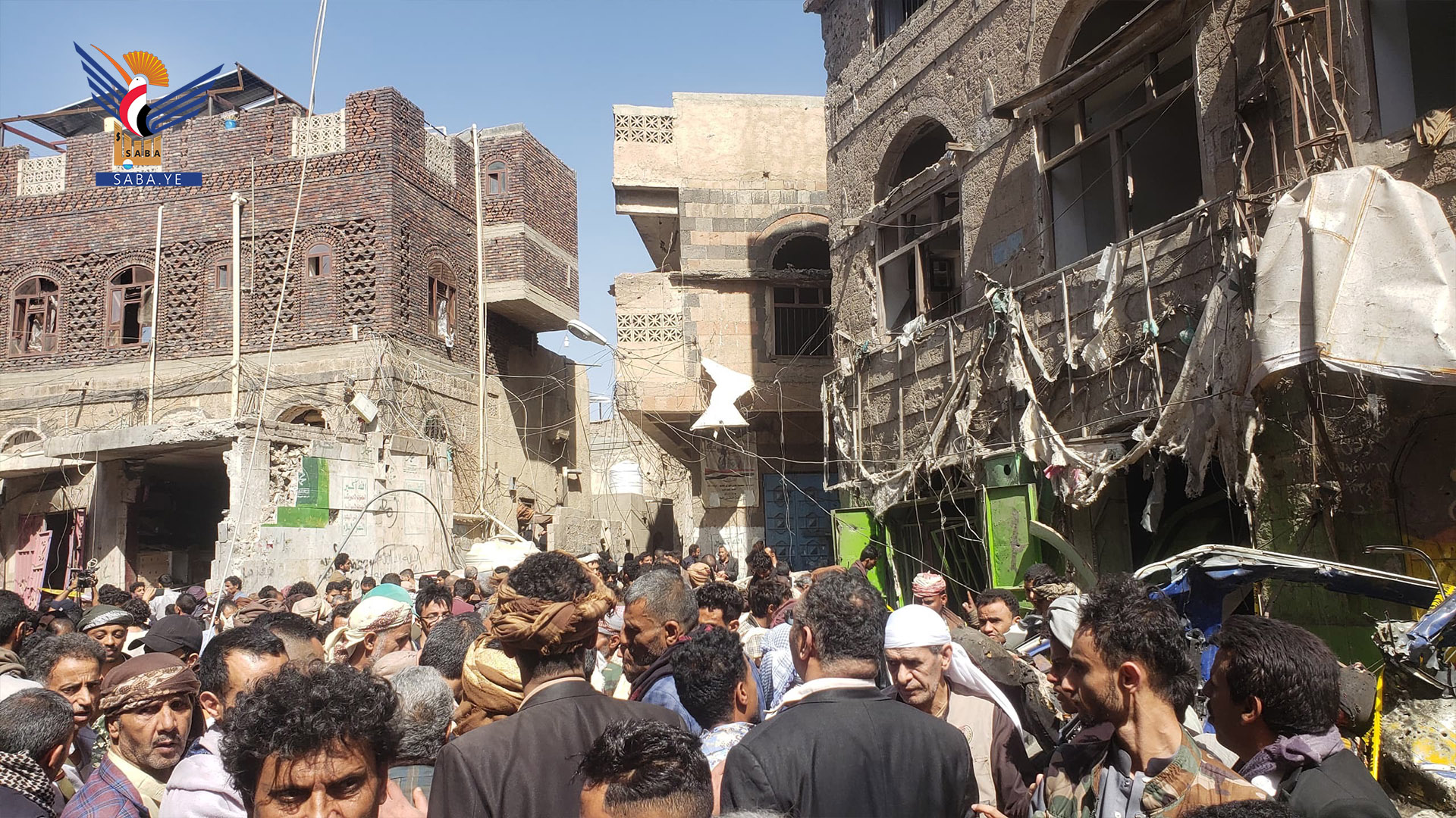أشلاء متناثرة ومتفحمة، دماء الشهداء والجرحى في كل مكان بما في ذلك سقوف المحلات، مواطنون تحت الأنقاض، دمار هائل في المنازل والممتلكات من محال تجارية وسيارات وغيرها، رعب في نفوس الأطفال والنساء، ناجون يبحثون عن أقربائهم وأحبائهم، في مشهد مروع وجريمة غير مبررة في حي وسوق شعبي مكتظ بالسكان.