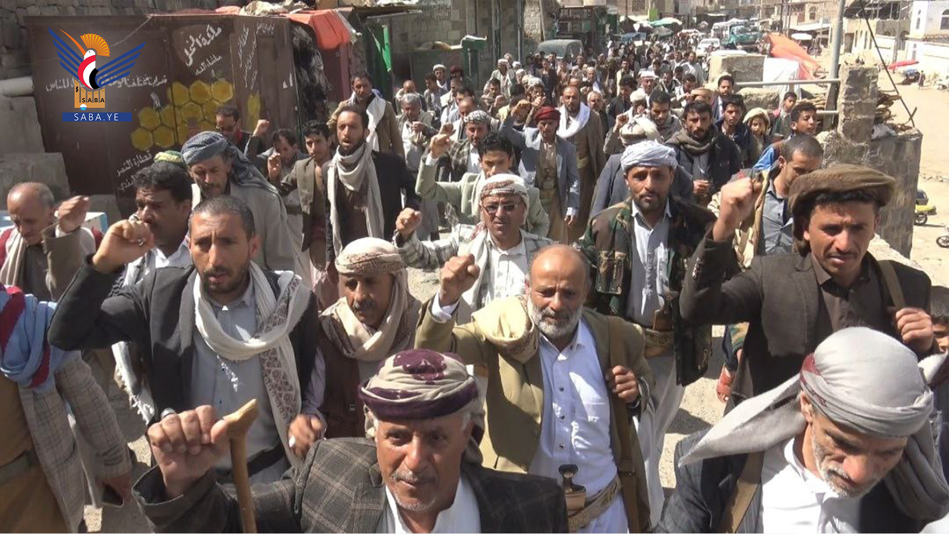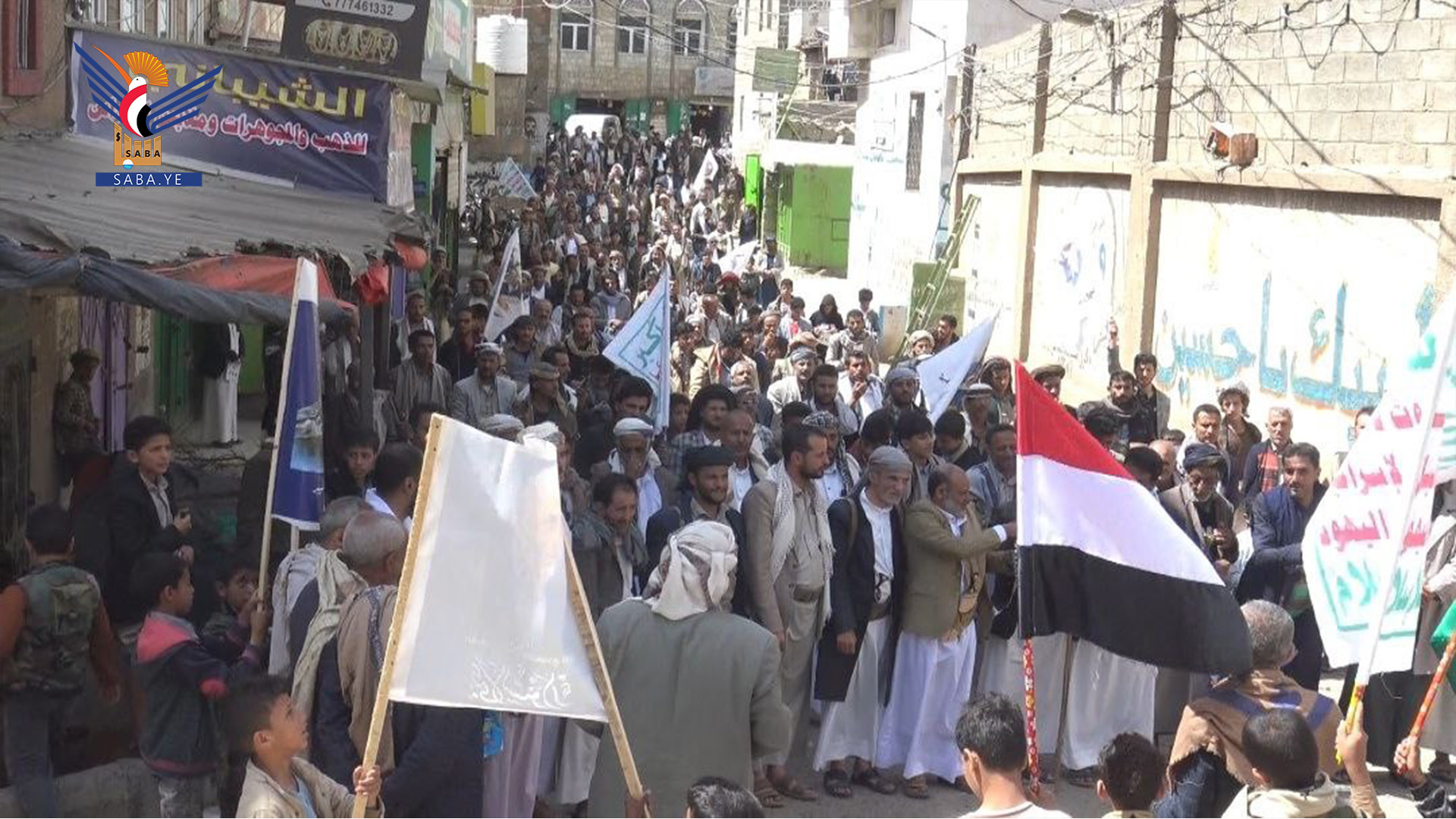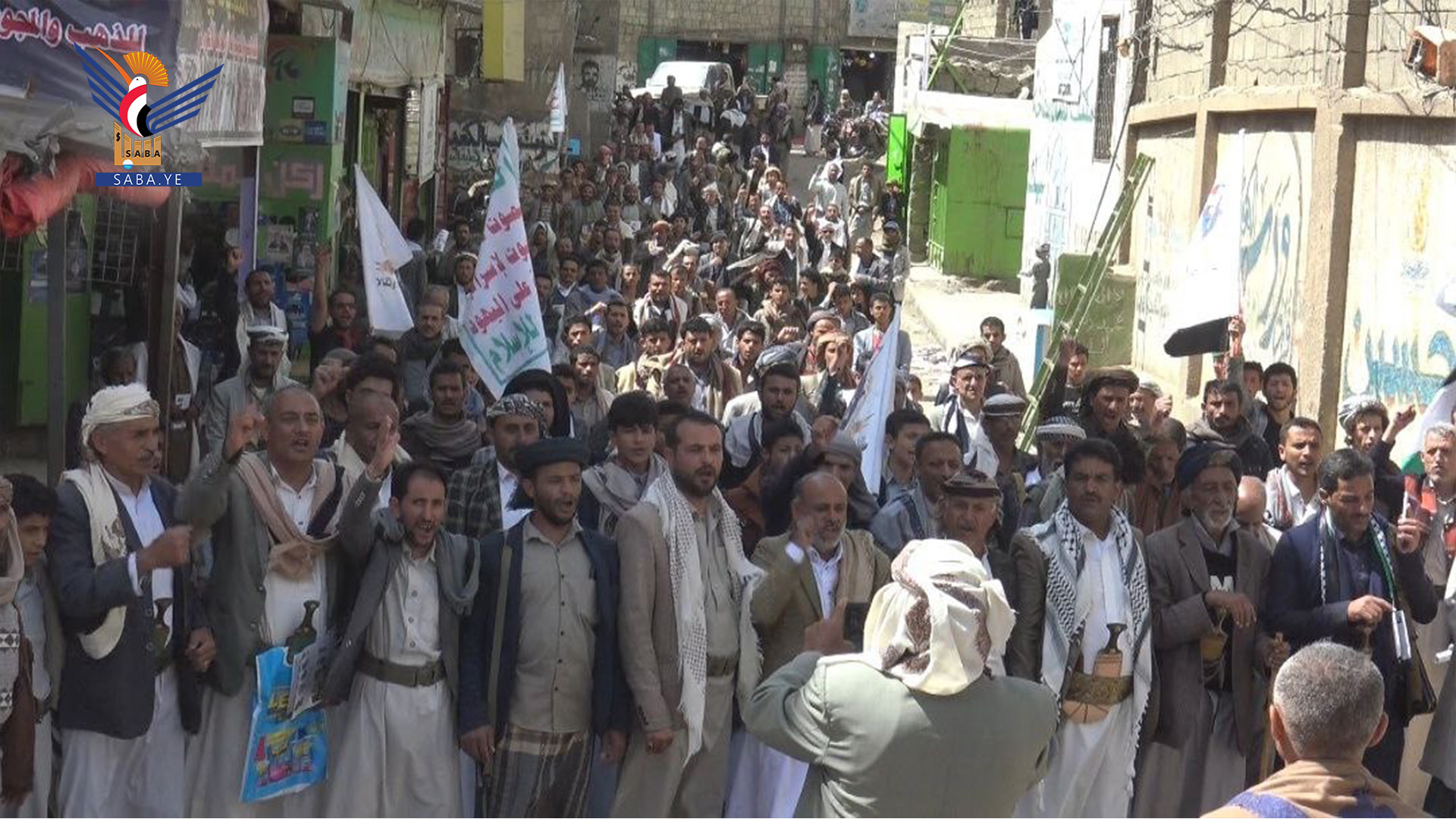 أبناء محافظة صنعاء يحتشدون في 32 مسيرة ووقفة تحت شعار "ثابتون مع غزة .. رغم أنف الأمريكي وجرائمه"