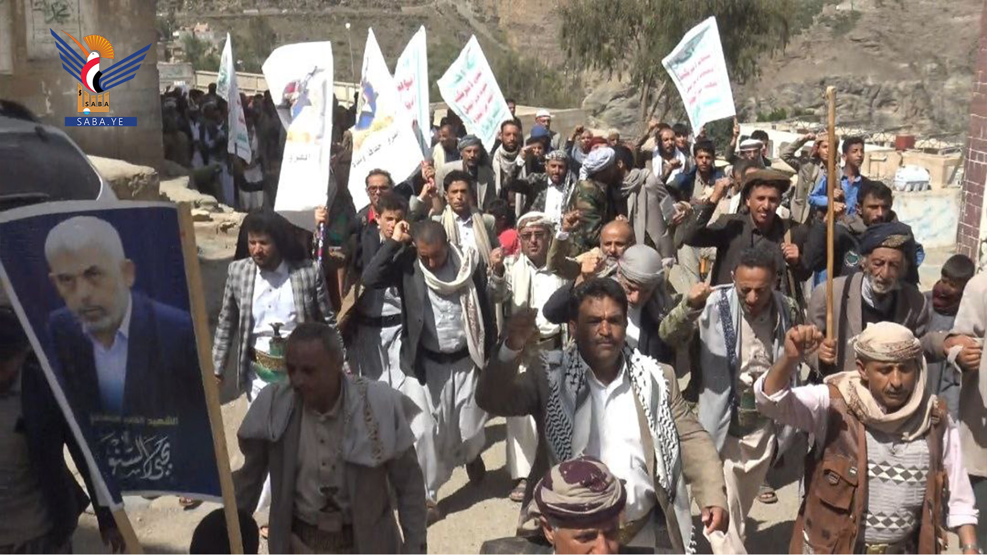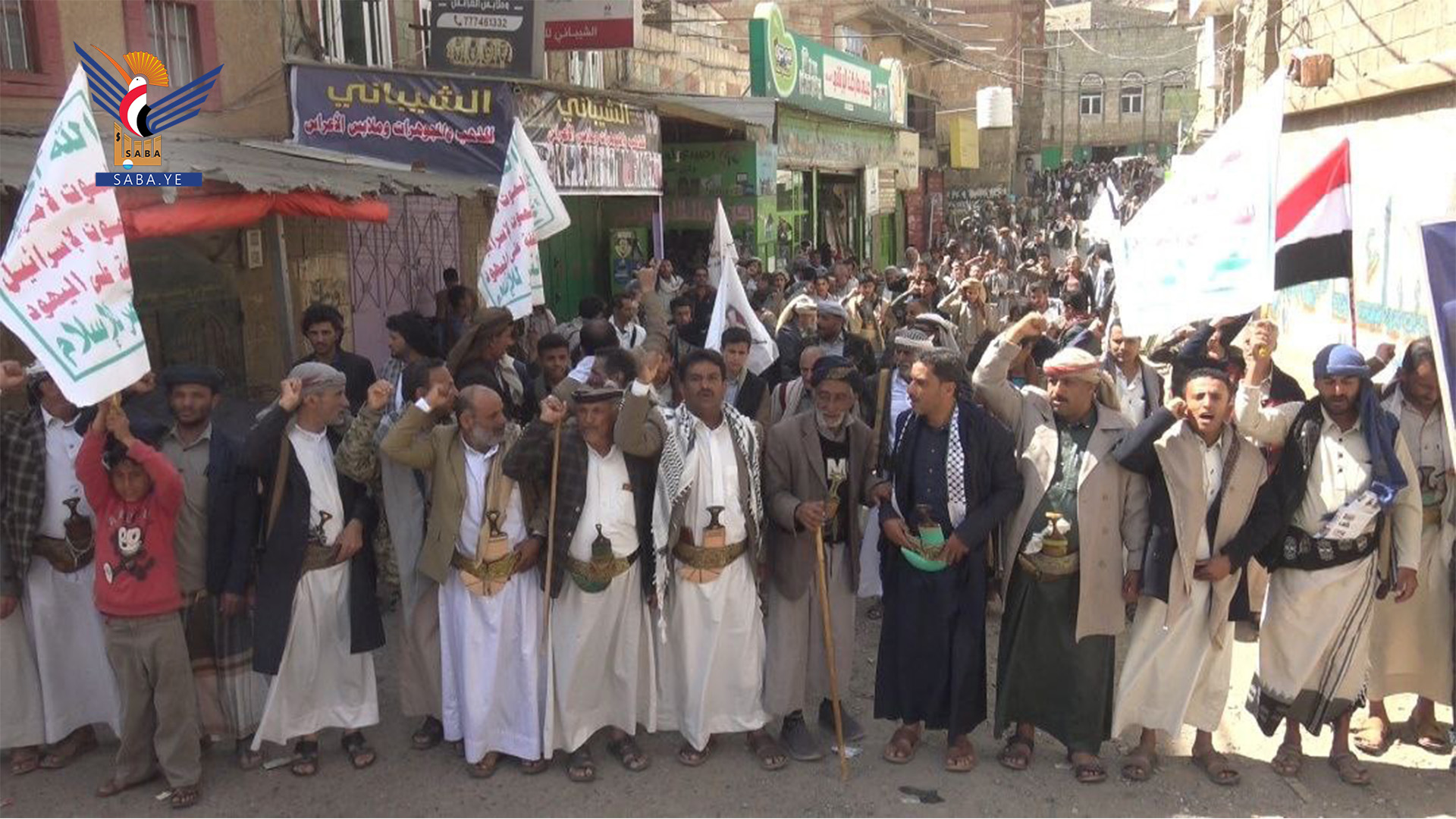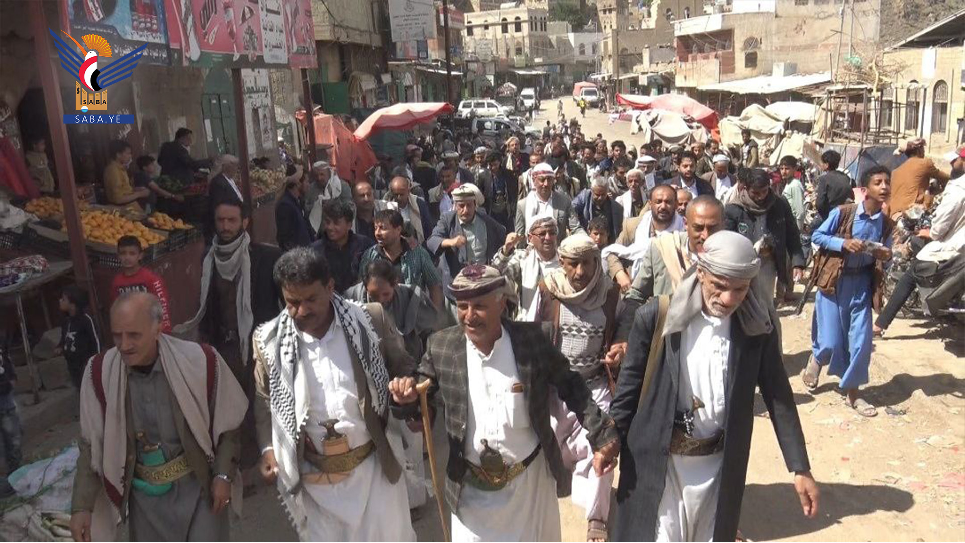 وخرجت المسيرات في ساحات مديريات مناخة وصعفان والحيمة الخارجية والحيمة الداخلية، كما نظمت وقفات جماهيرية في كافة قرى وعزل المديريات، عقب صلاة الجمعة.