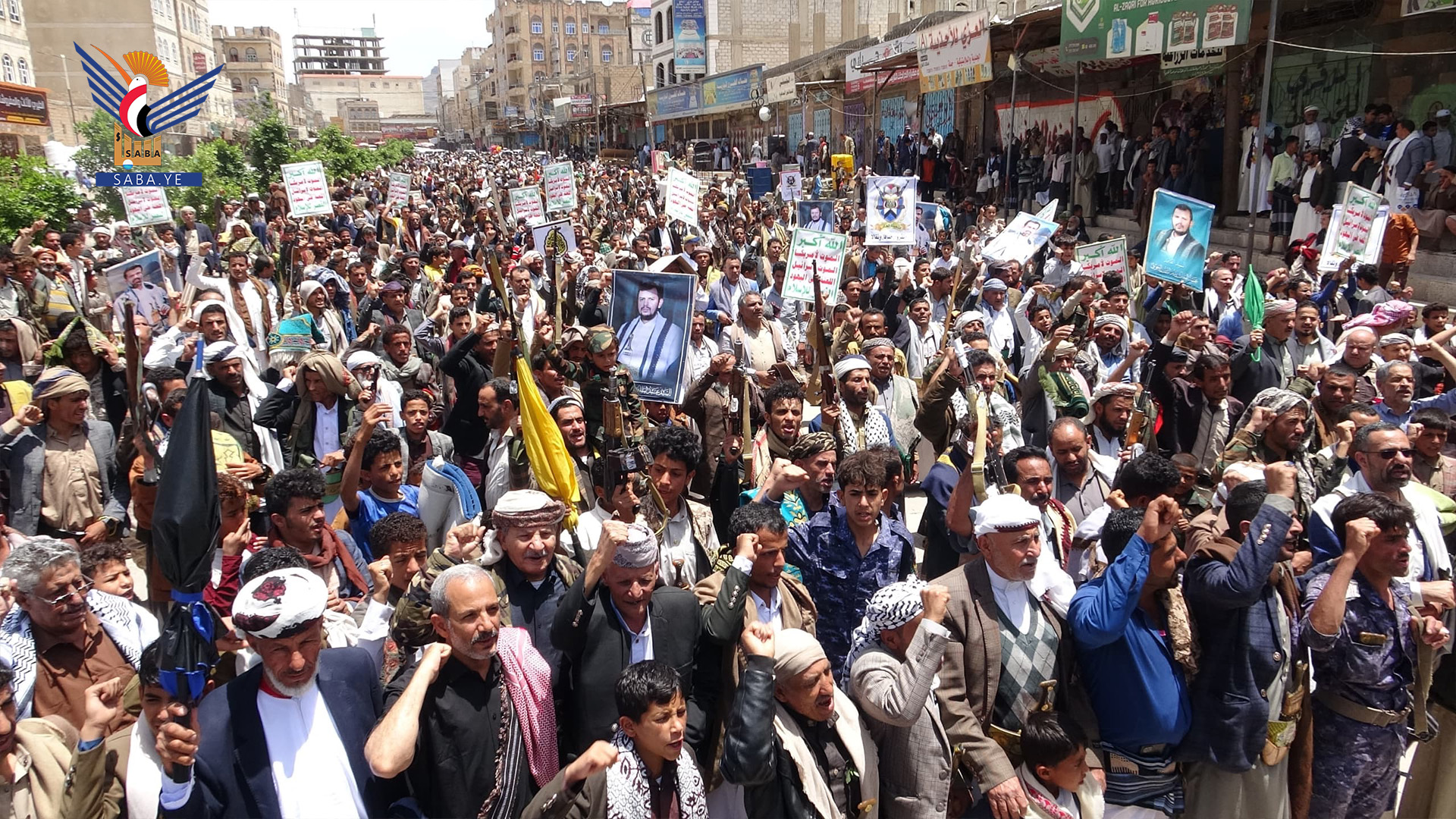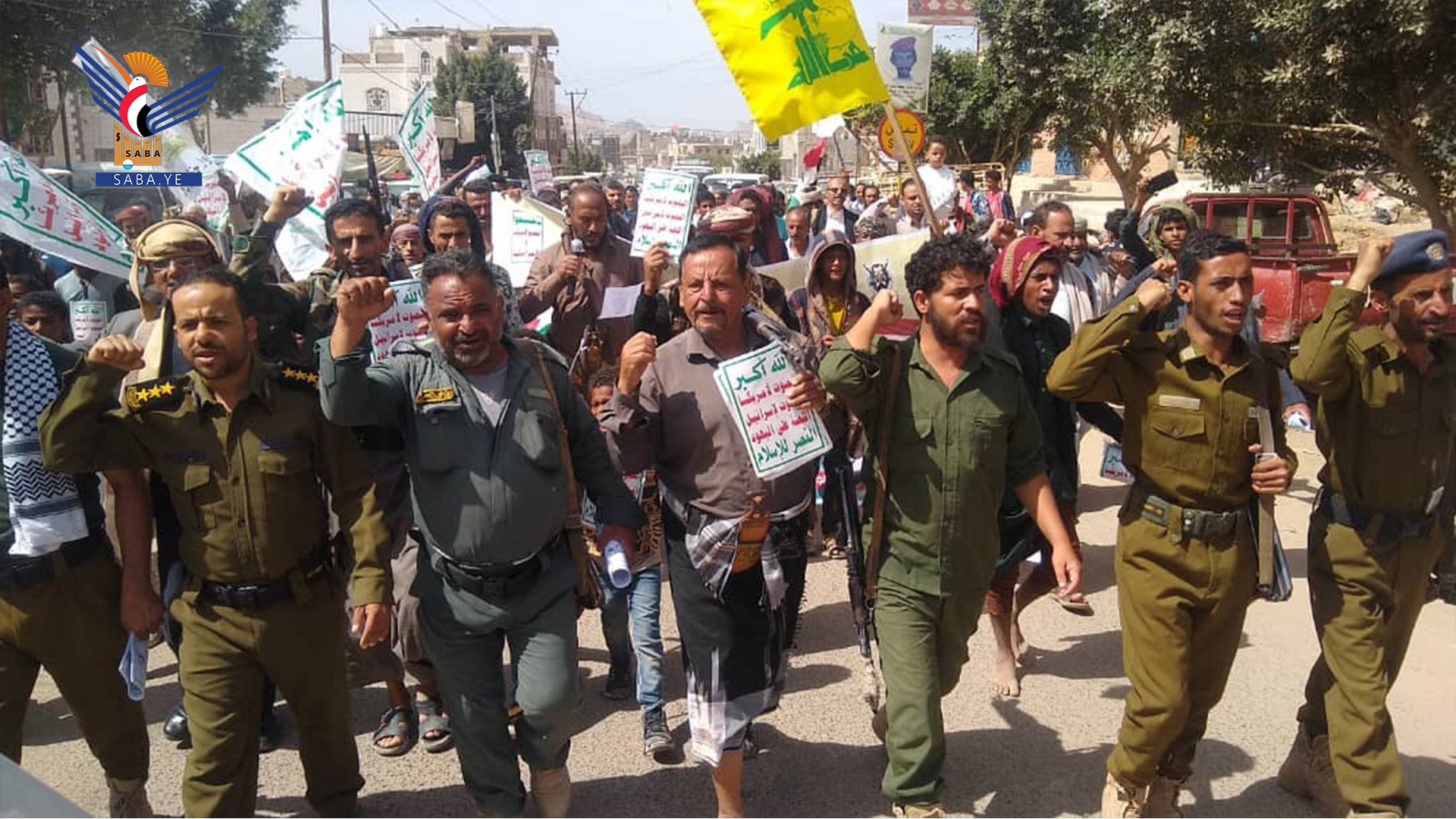 ورفع المشاركون في المسيرات التي تقدمها في مديرية دمت القائم بأعمال المحافظ عبداللطيف الشغدري، ومسؤول التعبئة أحمد المراني، العلمين اليمني والفلسطيني.. مرددين الهتافات والشعارات المستنكرة لجرائم الإبادة الجماعية التي يرتكبها العدو الصهيوني بحق أبناء غزة بدعم أمريكي مباشر.
