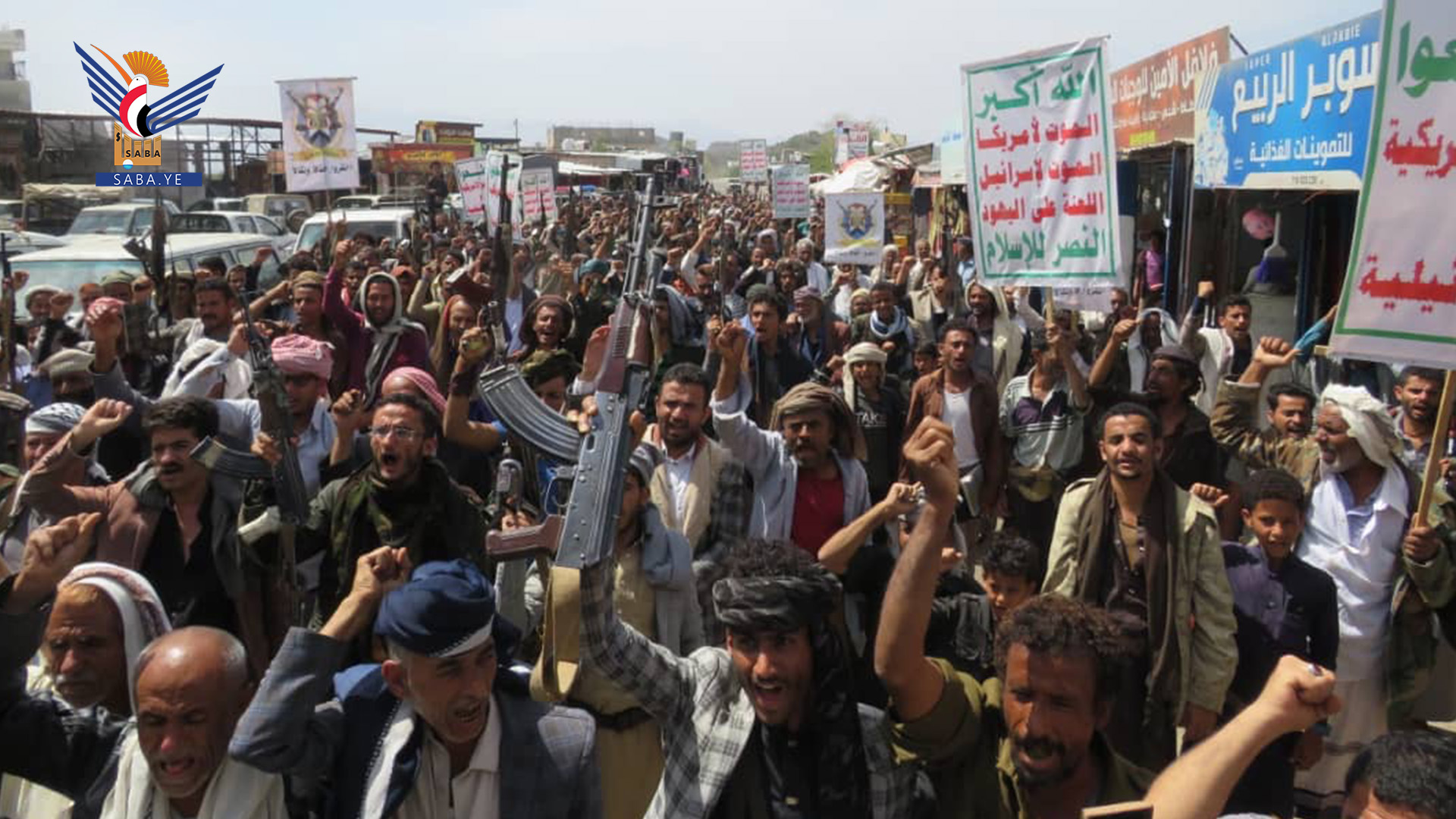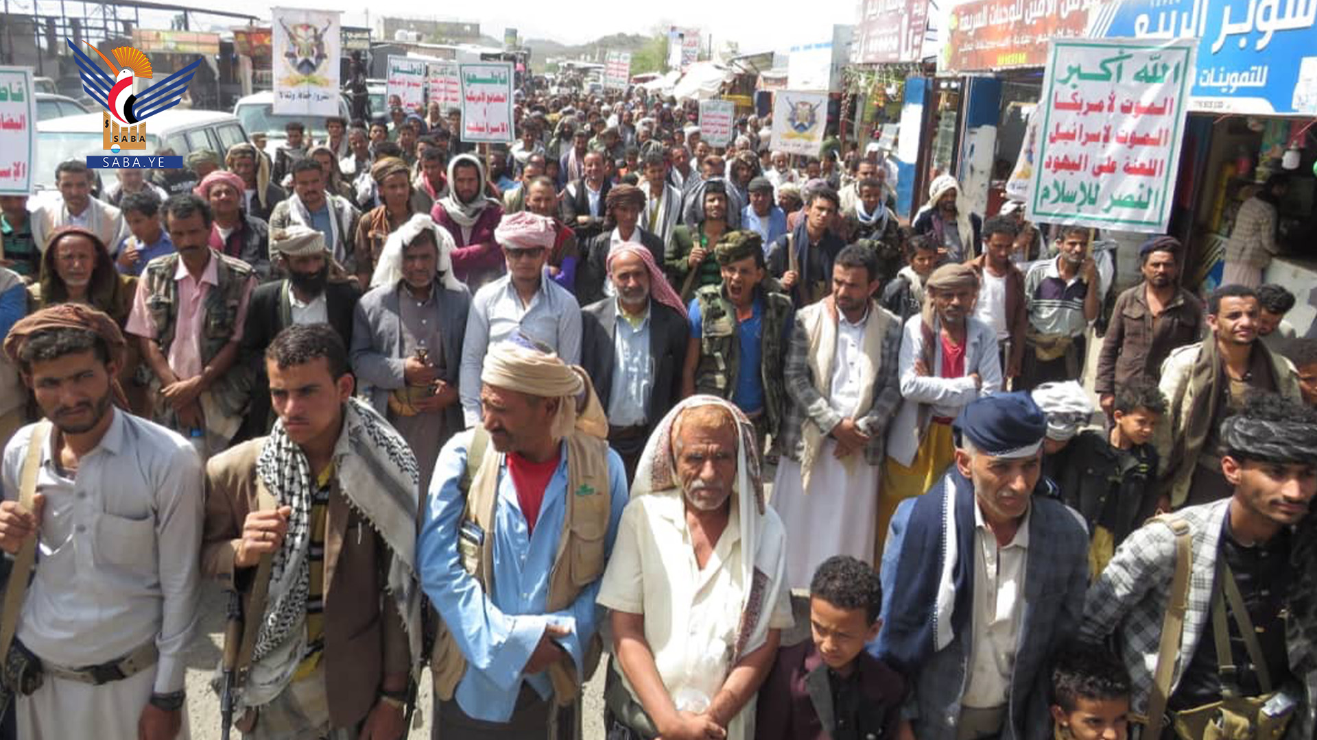 وأكد بيان صادر عن المسيرات الثبات على الموقف الإيماني القرآني الراسخ في نصرة أبناء غزة.. لافتا إلى أن الشعب اليمني لن يسمح للأعداء بالانفراد بالأشقاء الفلسطينيين، ولن يتفرج عليهم كمن تفرج؛ بل سيواصل جهاده المقدس ضد مجرمي الأرض أئمة الكفر أمريكا وإسرائيل بكل جد وعزم حتى يتوقف العدوان عليهم ويرفع الحصار عنهم.
