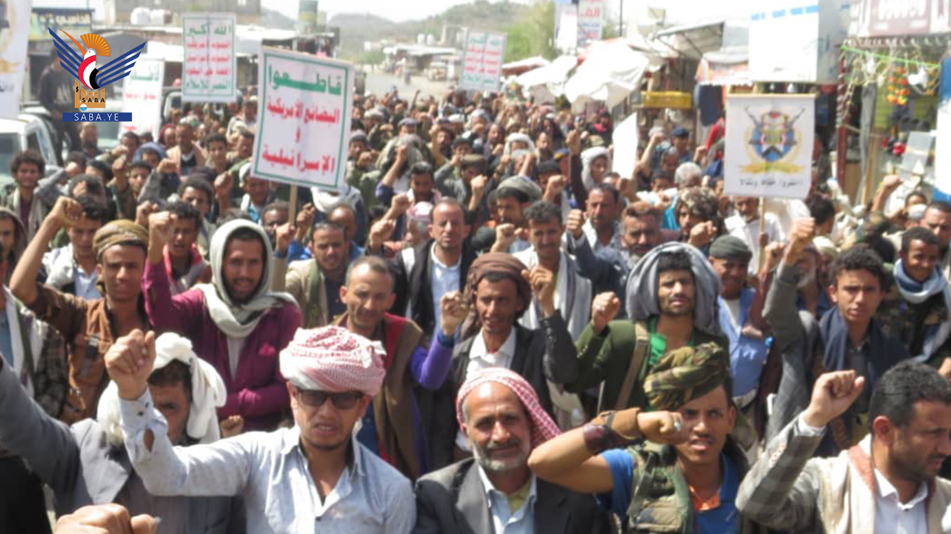 مسيرات حاشدة بالضالع تحت شعار "ثابتون مع غزة.. رغم أنف الأمريكي وجرائمه"