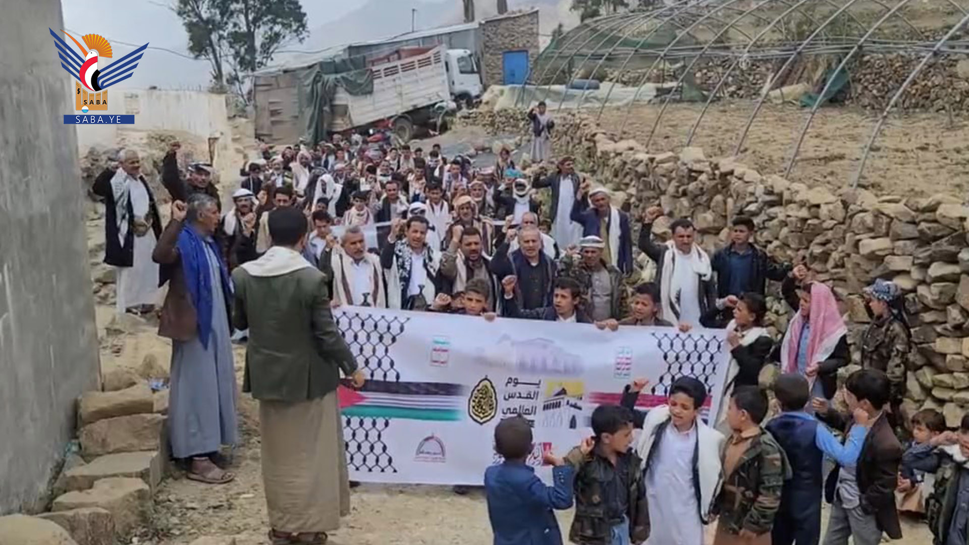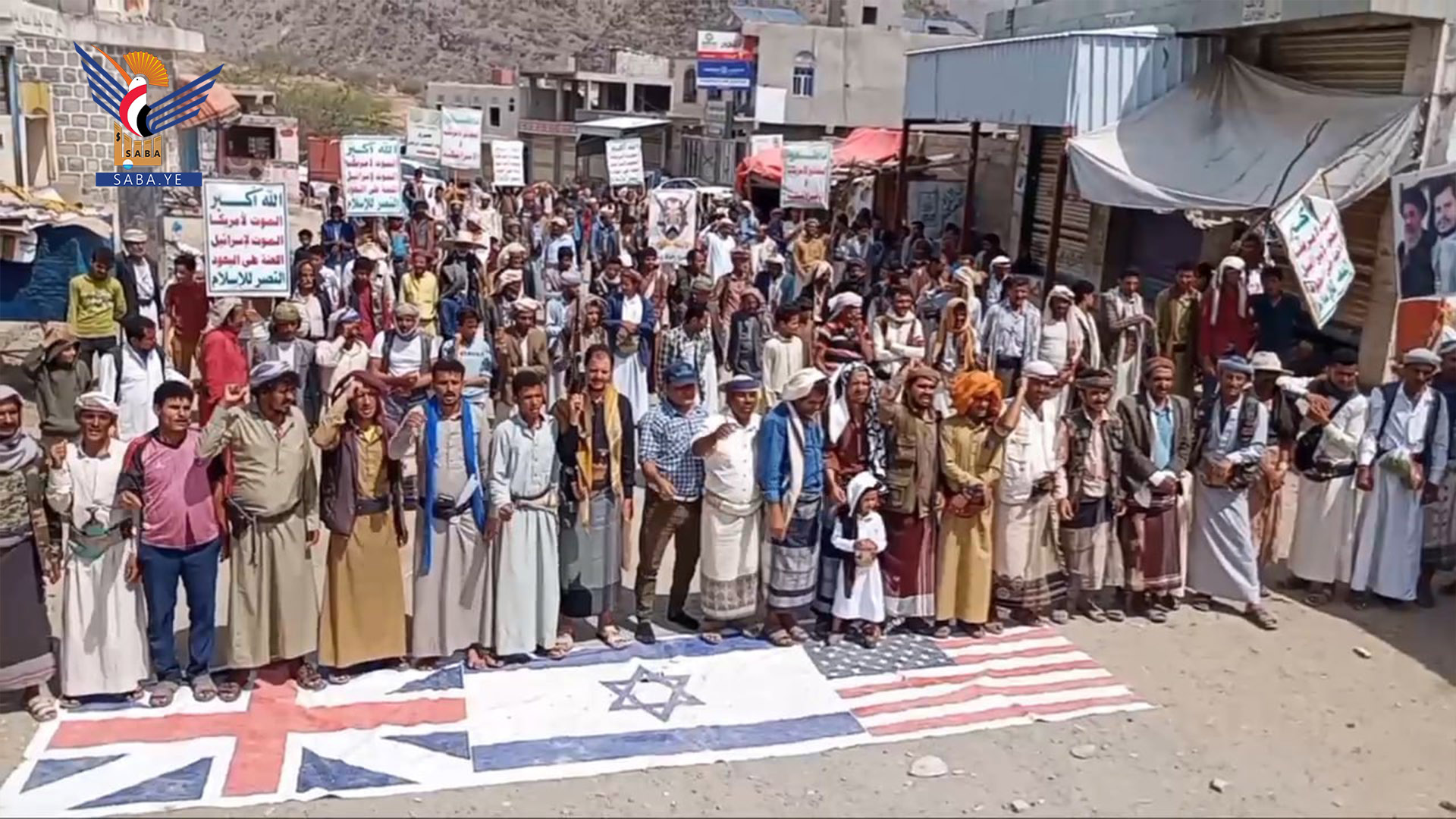 شهدت محافظة ريمة اليوم، 70 مسيرة جماهيرية تحت شعار "ثابتون مع غزة.. رغم أنف الأمريكي وجرائمه".