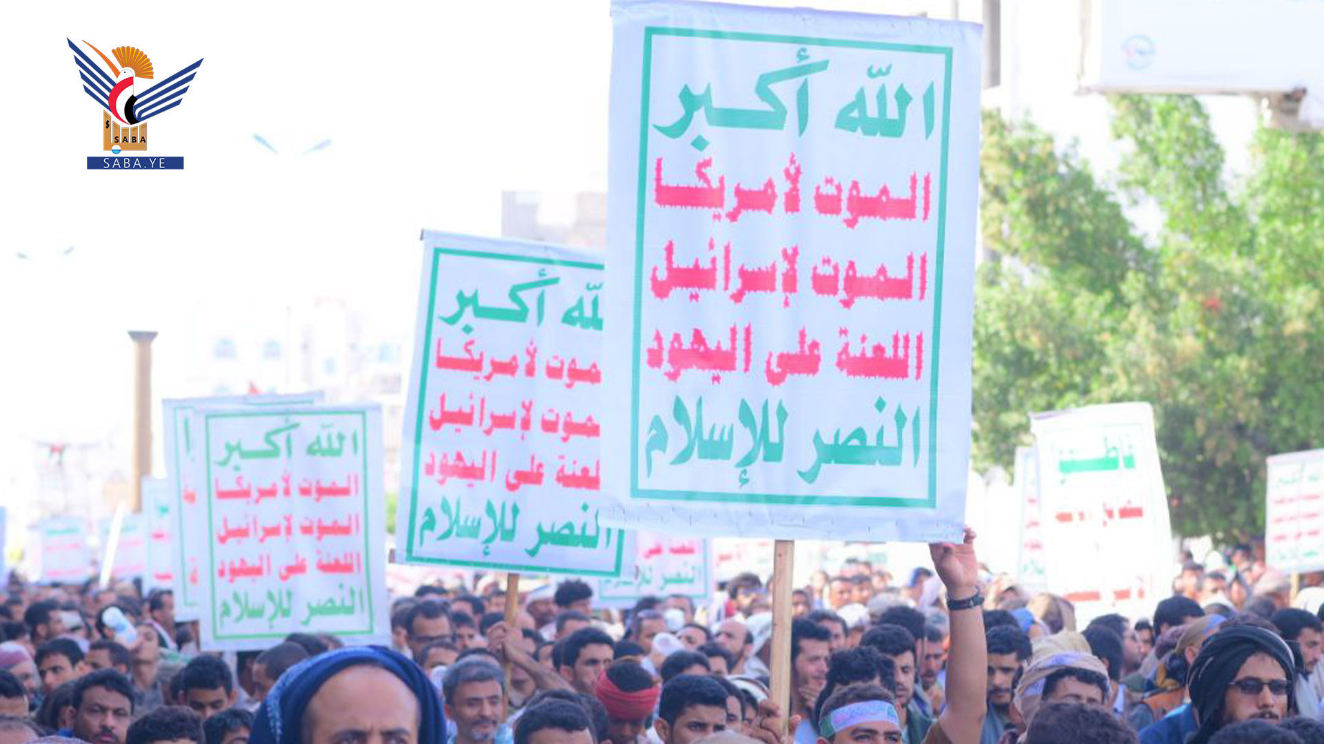 وأدانت الحشود، القصف الأمريكي المتصاعد على العاصمة صنعاء ومختلف المحافظات، وما يرافقه من جرائم مباشرة بحق المدنيين والأطفال والنساء، مؤكدين أن الشعب اليمني لن يقف مكتوف الأيدي أمام هذه الإبادة.
